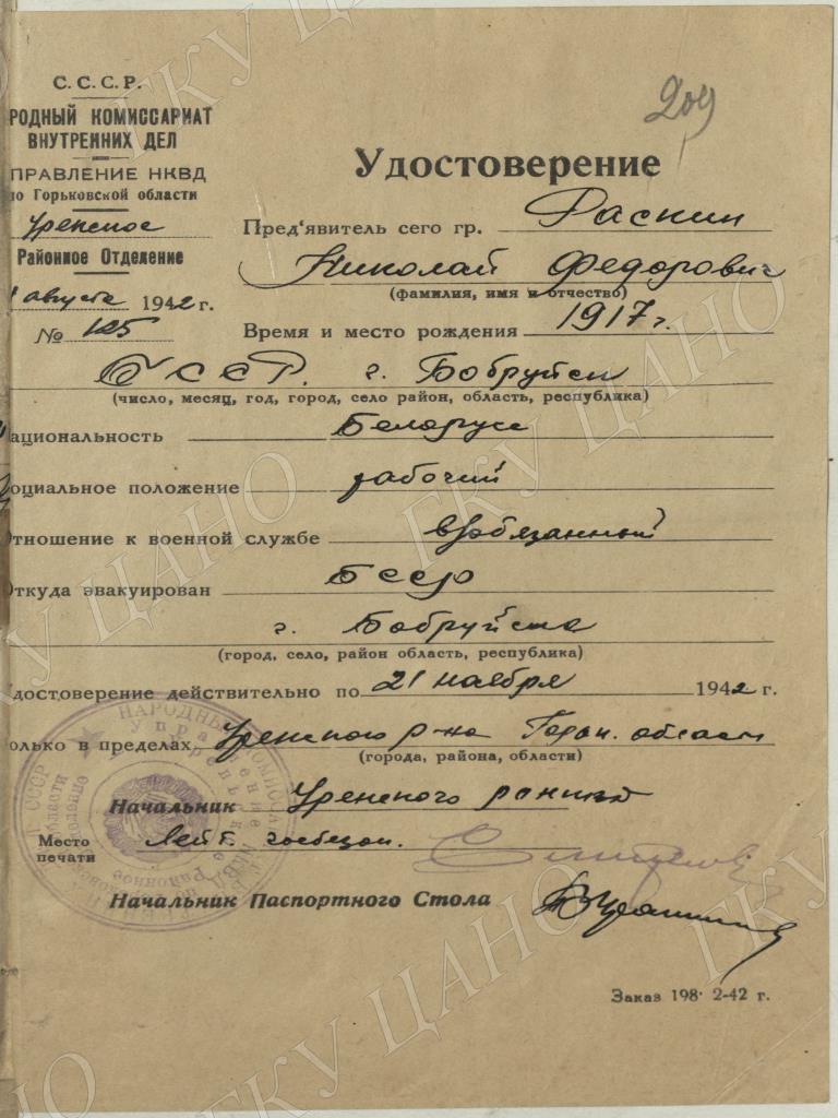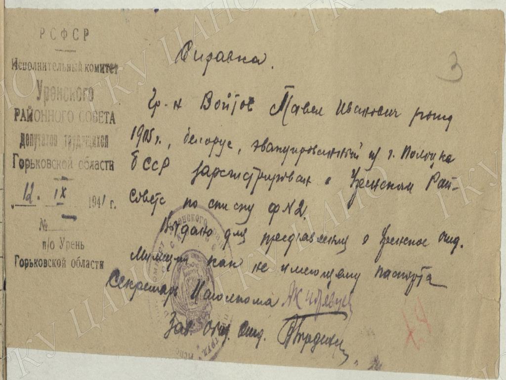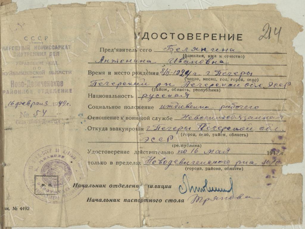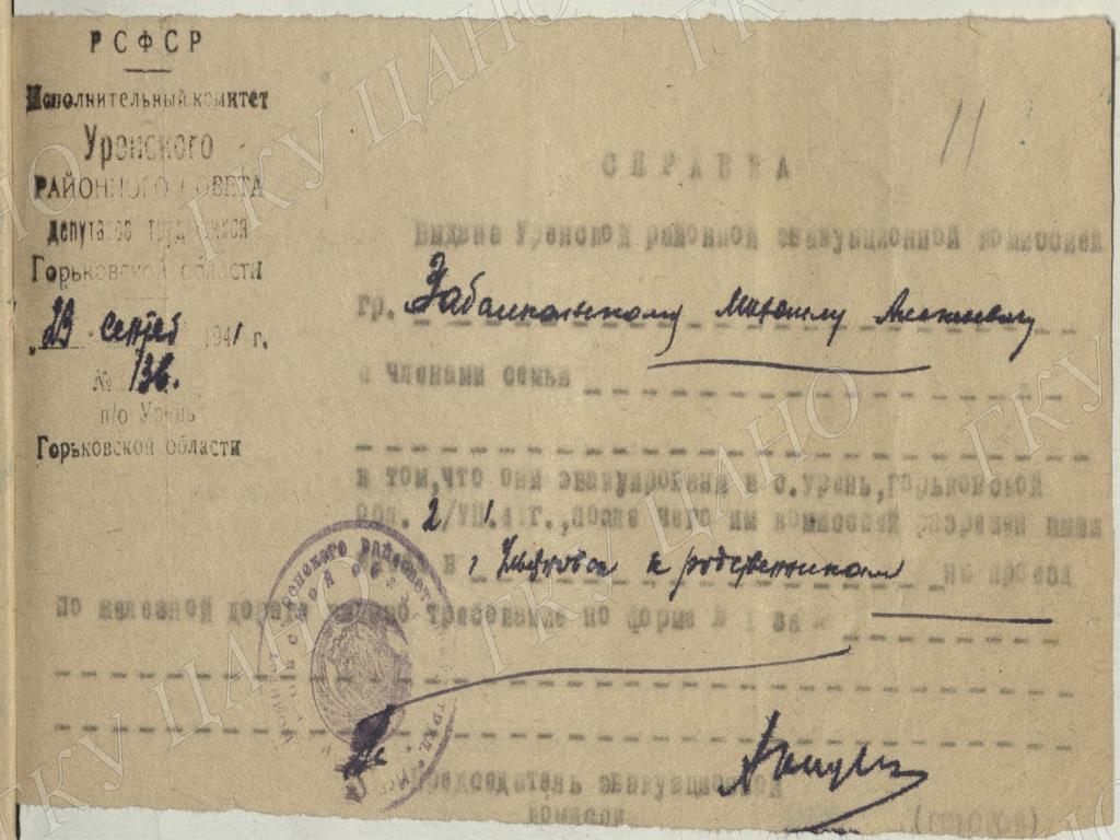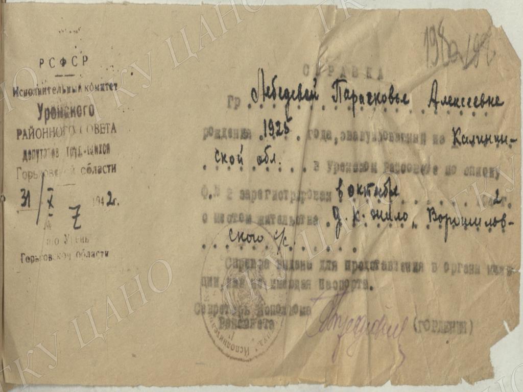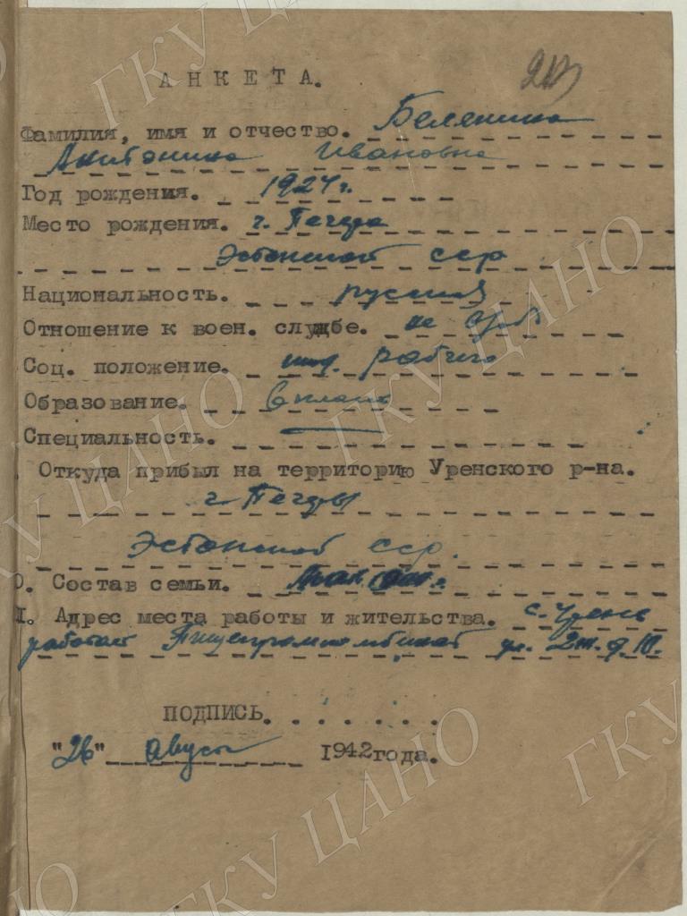 Ф. Р-5344. Оп. 1. Д. 49а. Справки и анкеты на лиц, эвакуированных из разных областей СССР в населенные пункты Уренского района Горьковской области. 25 августа 1941 г. — 18 декабря 1942 г.