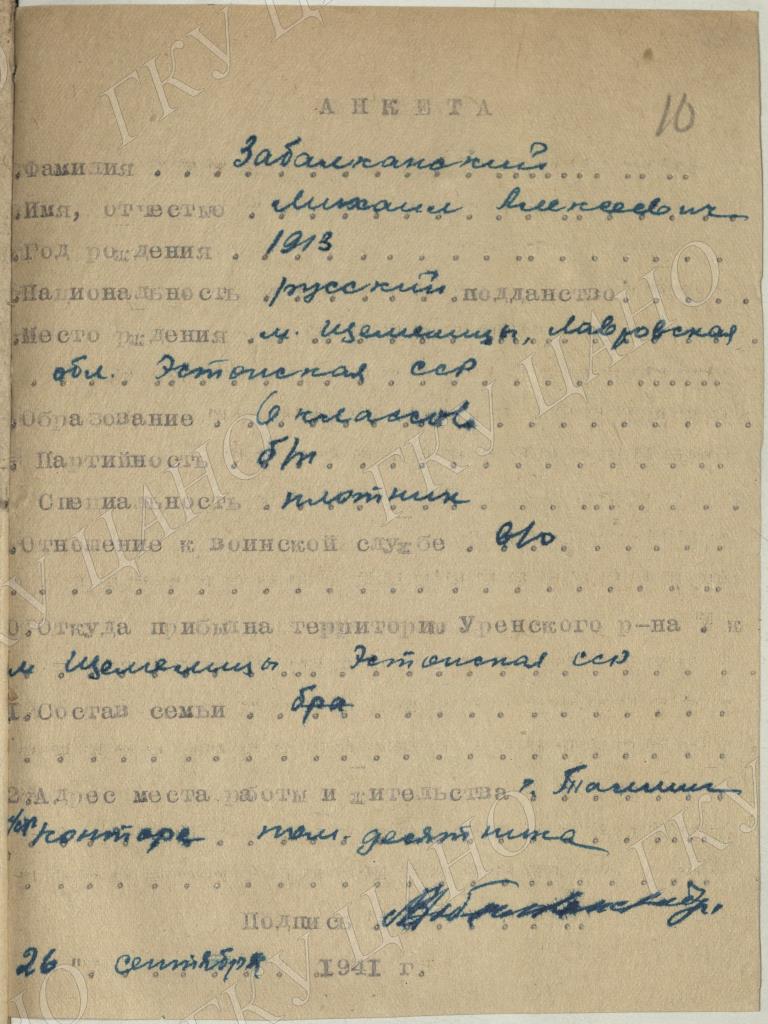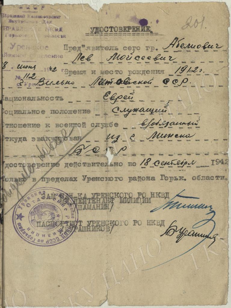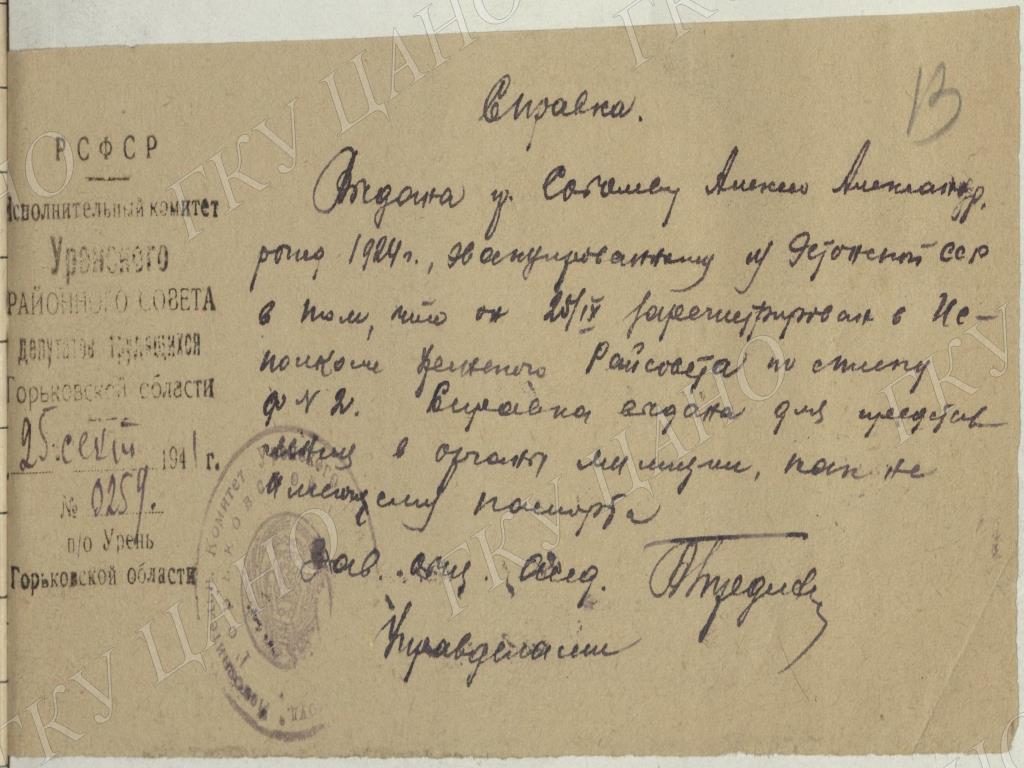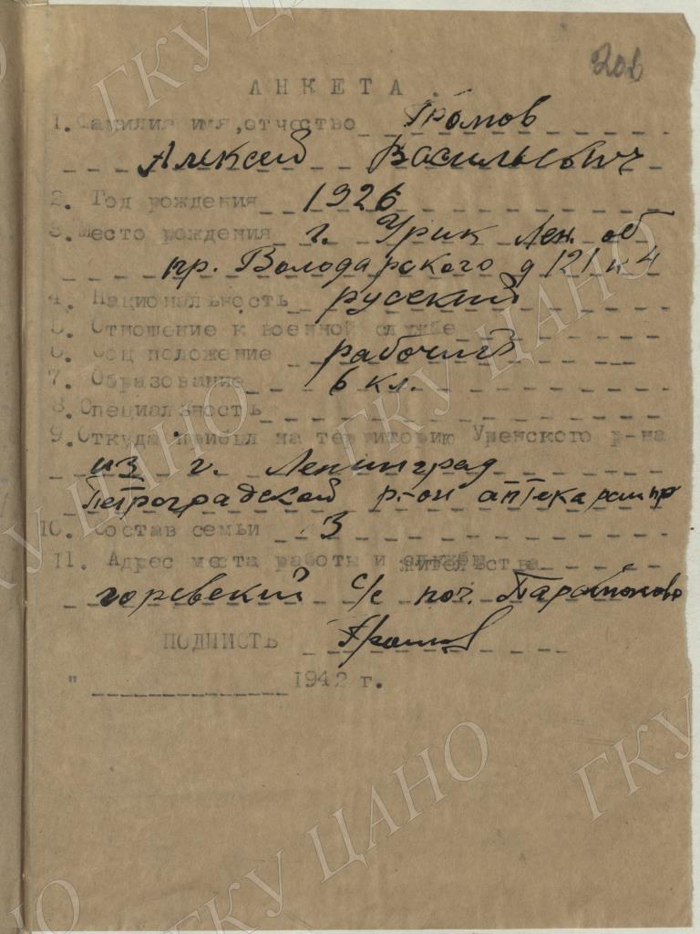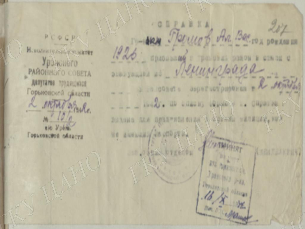 Ф. Р-5344. Оп. 1. Д. 49а. Справки и анкеты на лиц, эвакуированных из разных областей СССР в населенные пункты Уренского района Горьковской области. 25 августа 1941 г. — 18 декабря 1942 г.