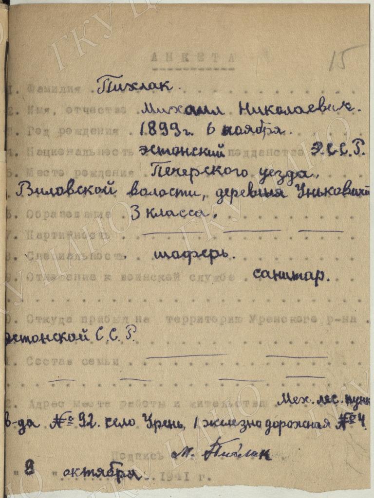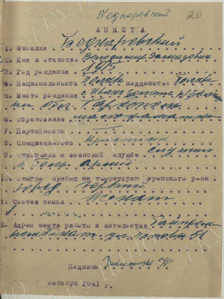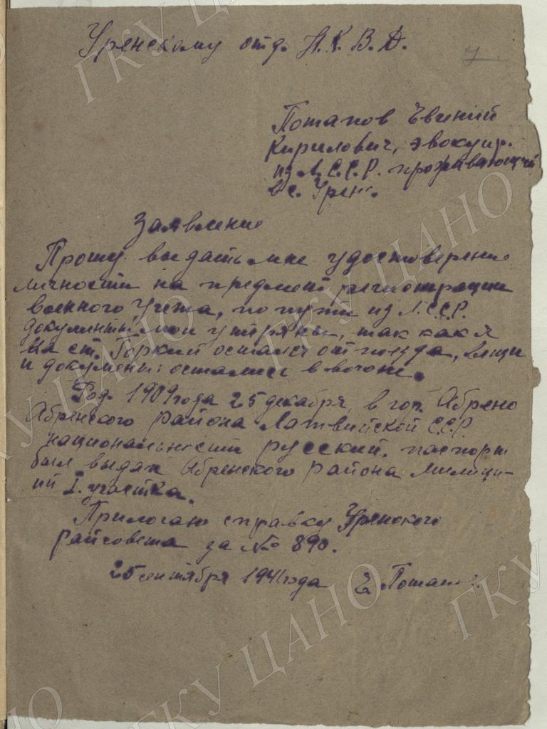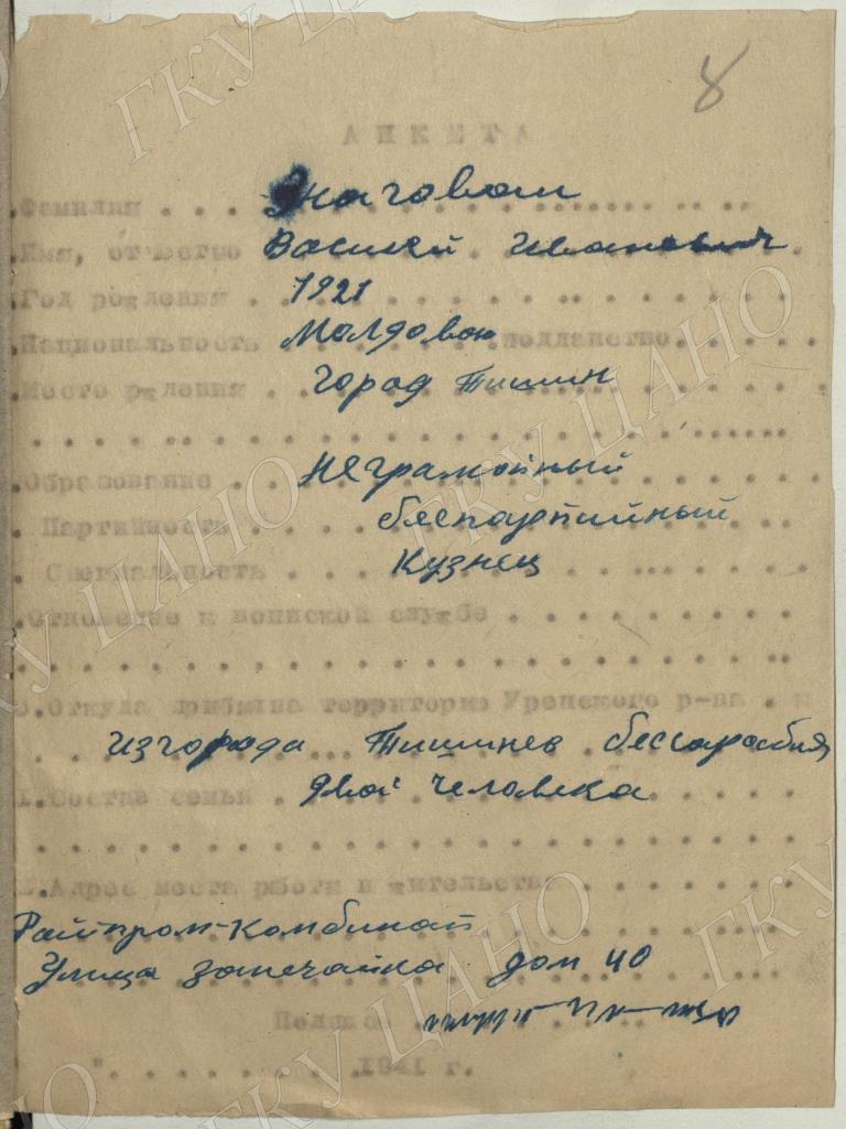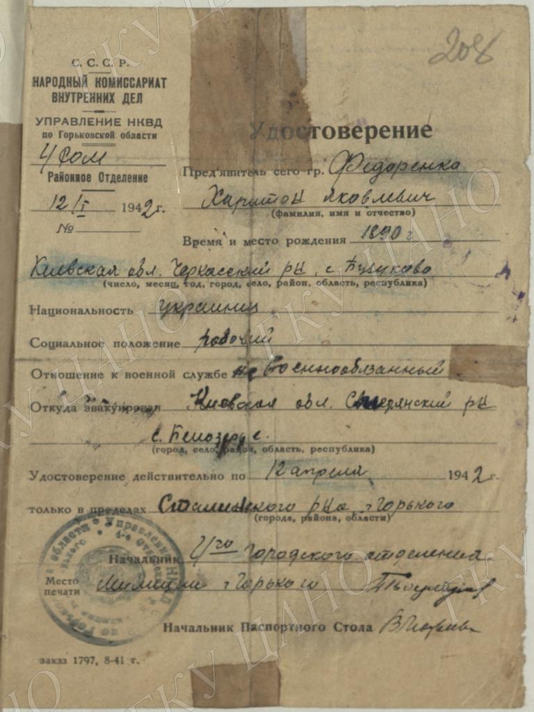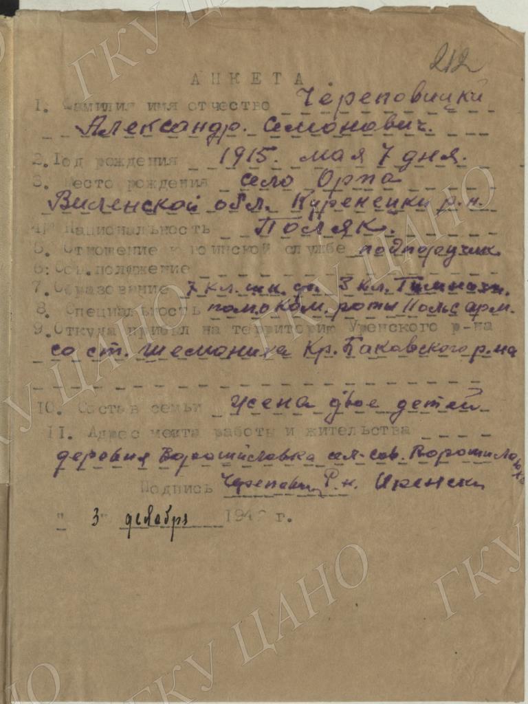 Ф. Р-5344. Оп. 1. Д. 49а. Справки и анкеты на лиц, эвакуированных из разных областей СССР в населенные пункты Уренского района Горьковской области. 25 августа 1941 г. — 18 декабря 1942 г.