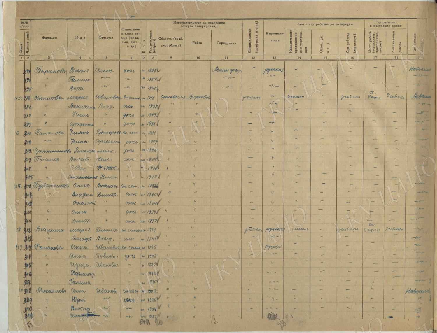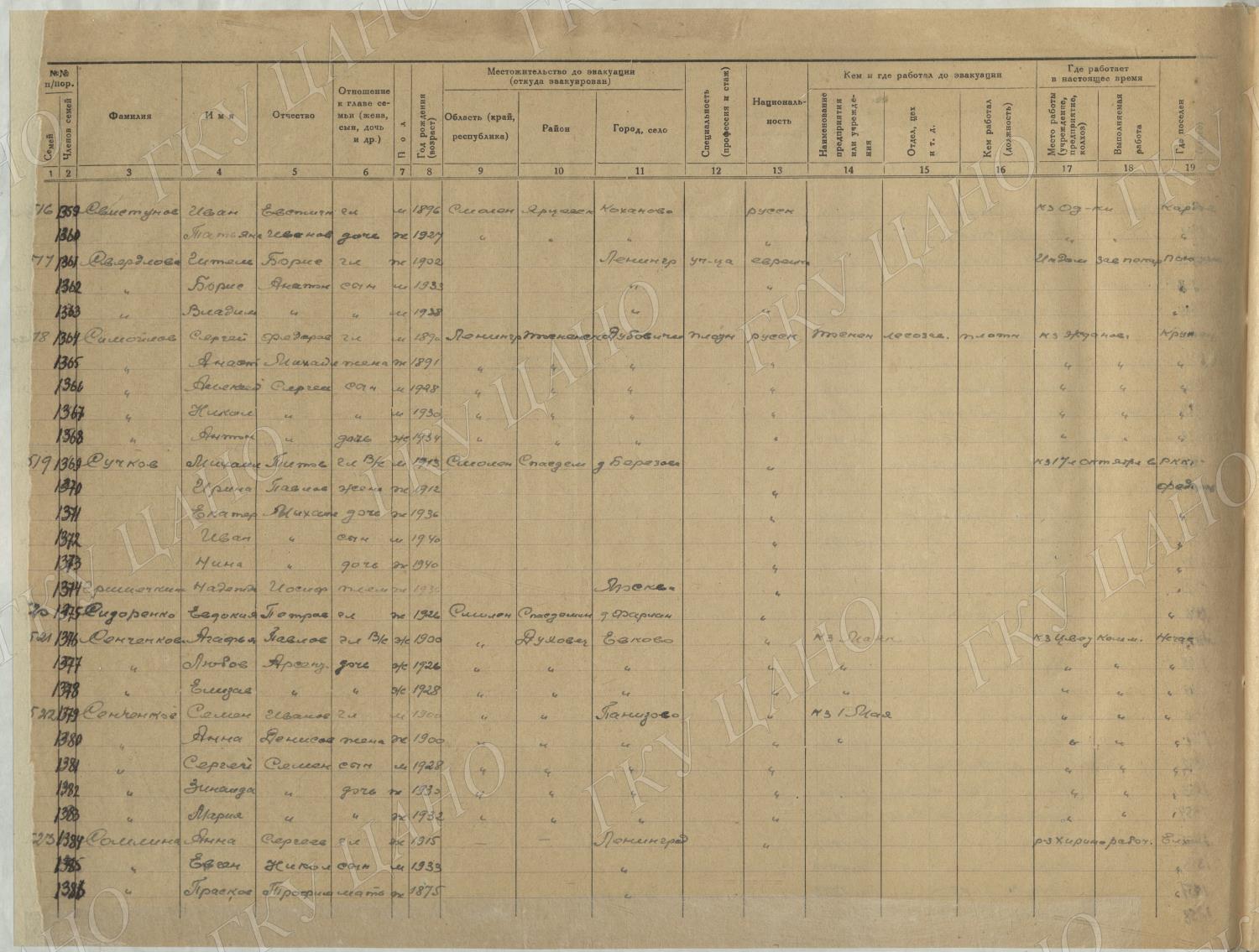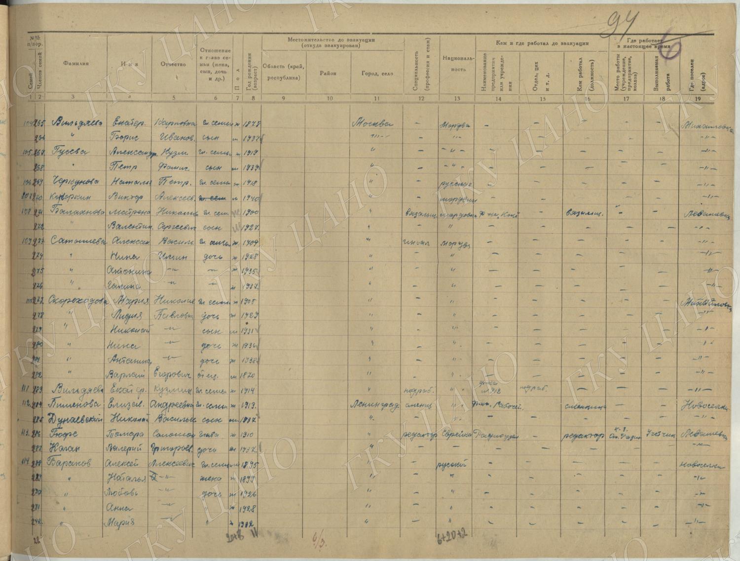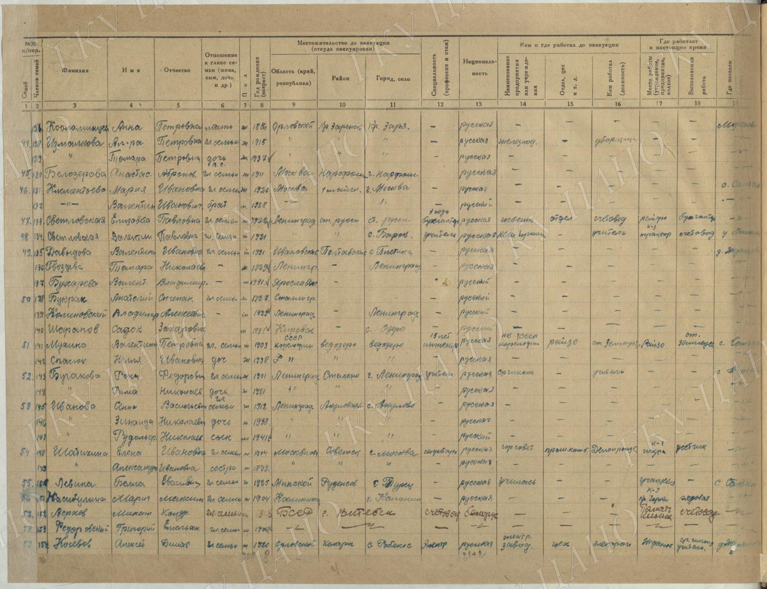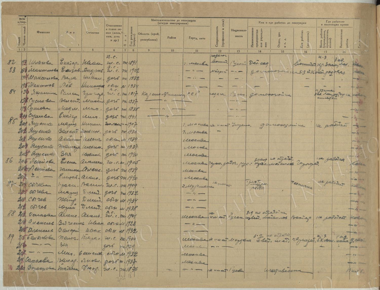 Ф. Р-5344. Оп. 1. Д. 78. Списки эвакуированных граждан, размещенных в городах и районах Горьковской области (Салганский, Сергачский, Сосновский, Теплостанский, Тоншаевский, Чернухинский, Чкаловский, Шахунский, Шарангский районы). 1 июня — 16 октября 1943