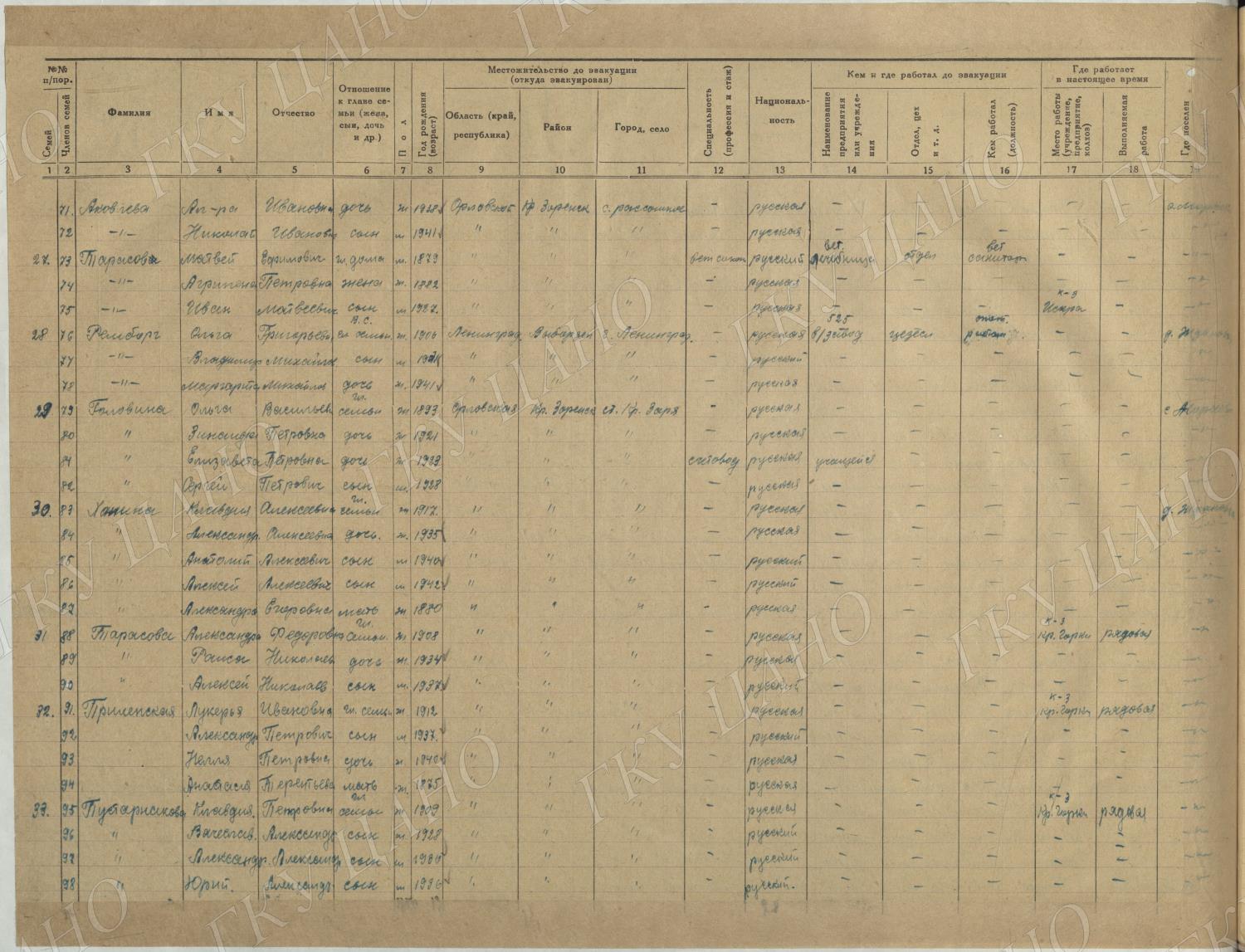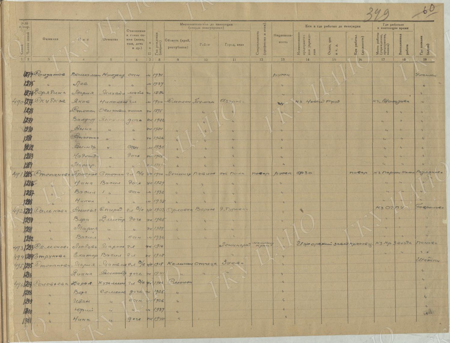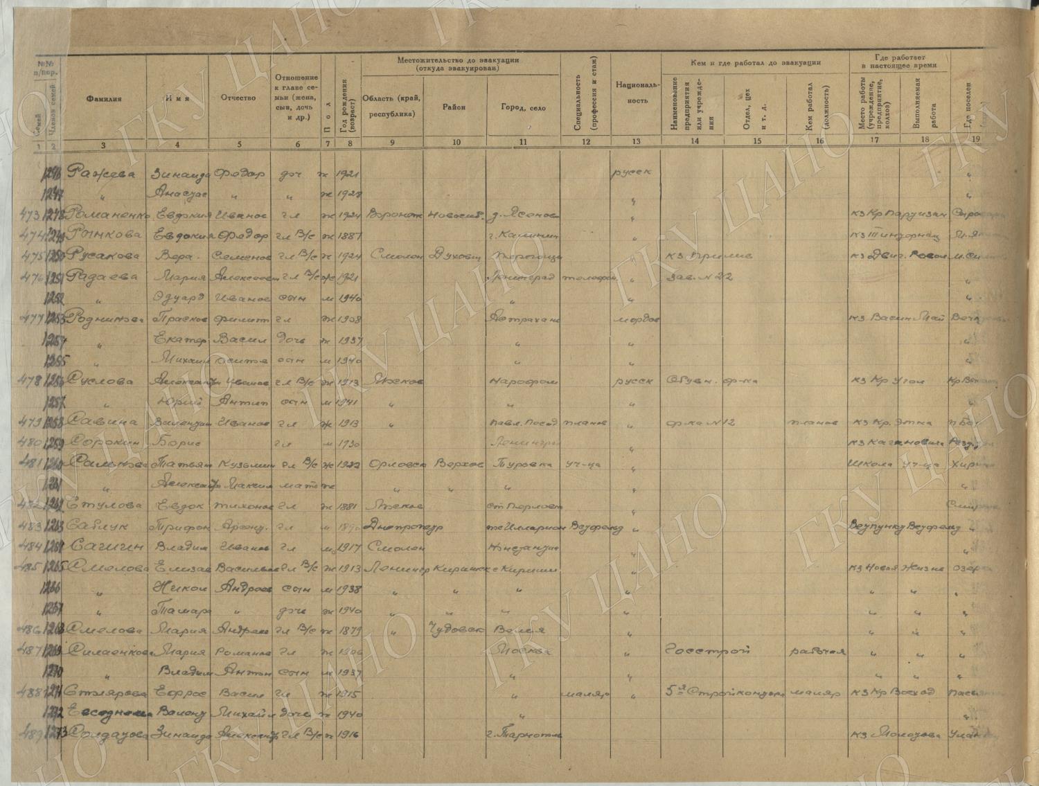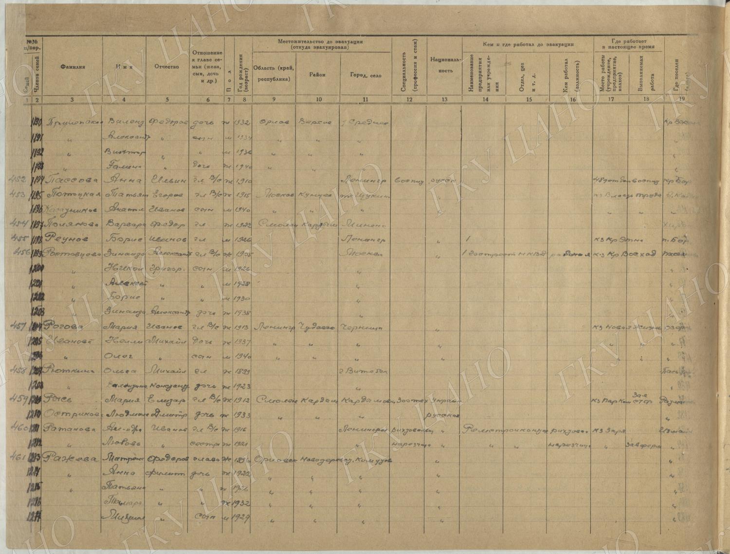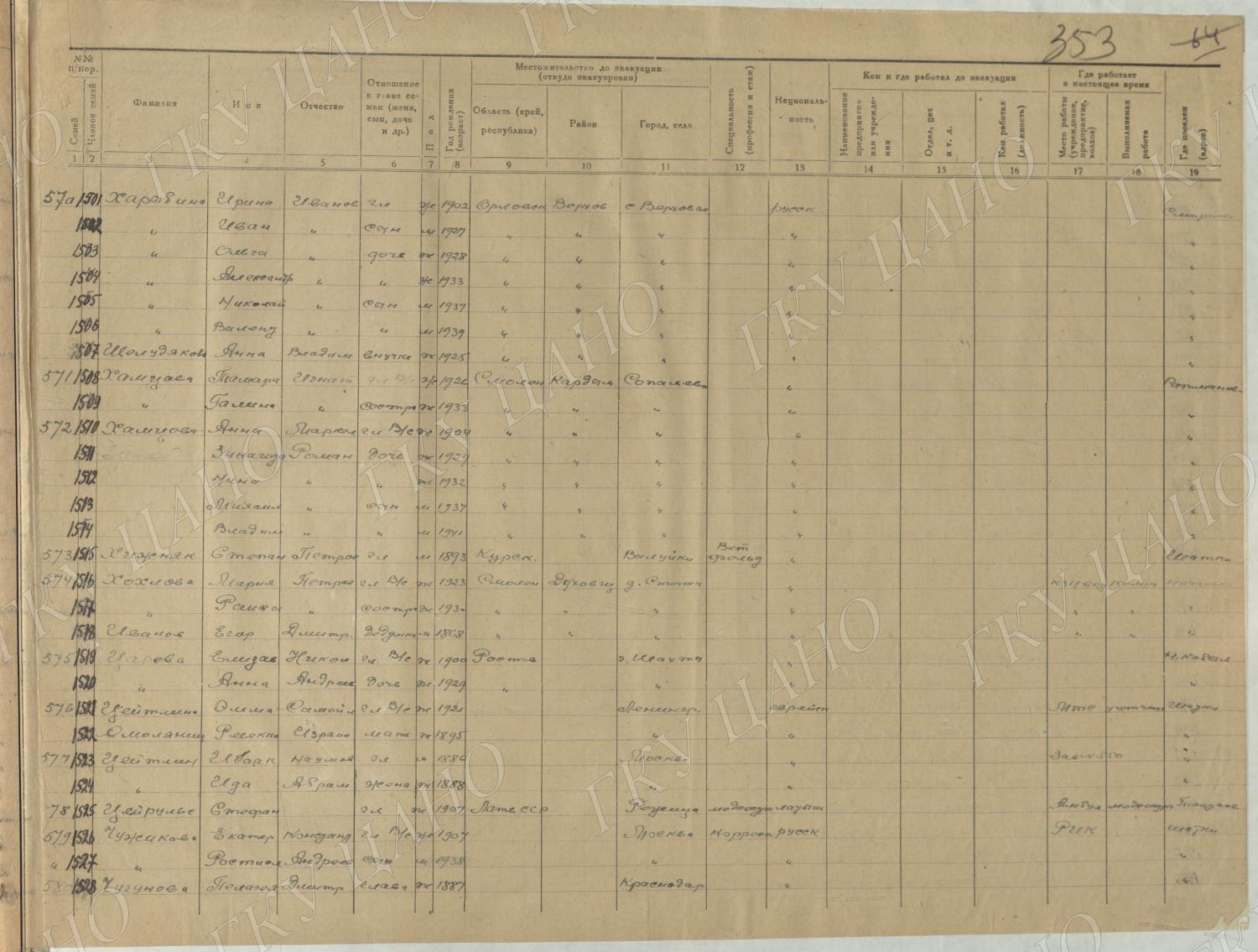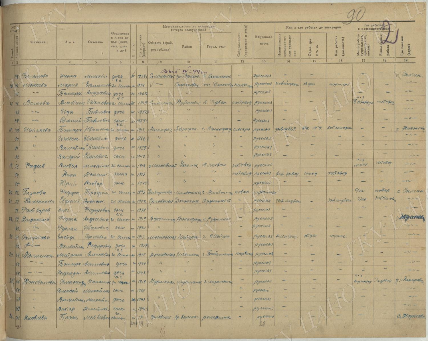 Ф. Р-5344. Оп. 1. Д. 78. Списки эвакуированных граждан, размещенных в городах и районах Горьковской области (Салганский, Сергачский, Сосновский, Теплостанский, Тоншаевский, Чернухинский, Чкаловский, Шахунский, Шарангский районы). 1 июня — 16 октября 1943