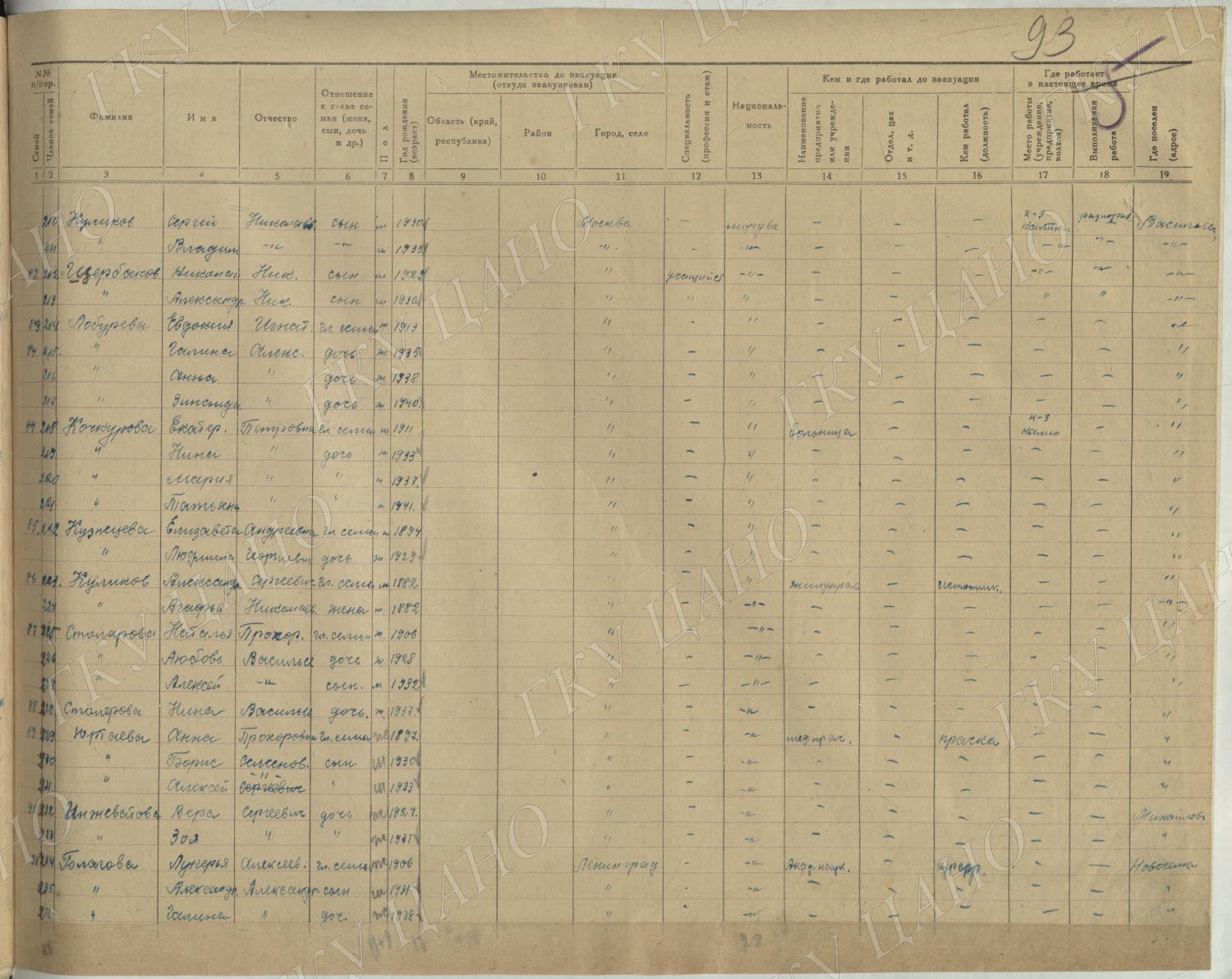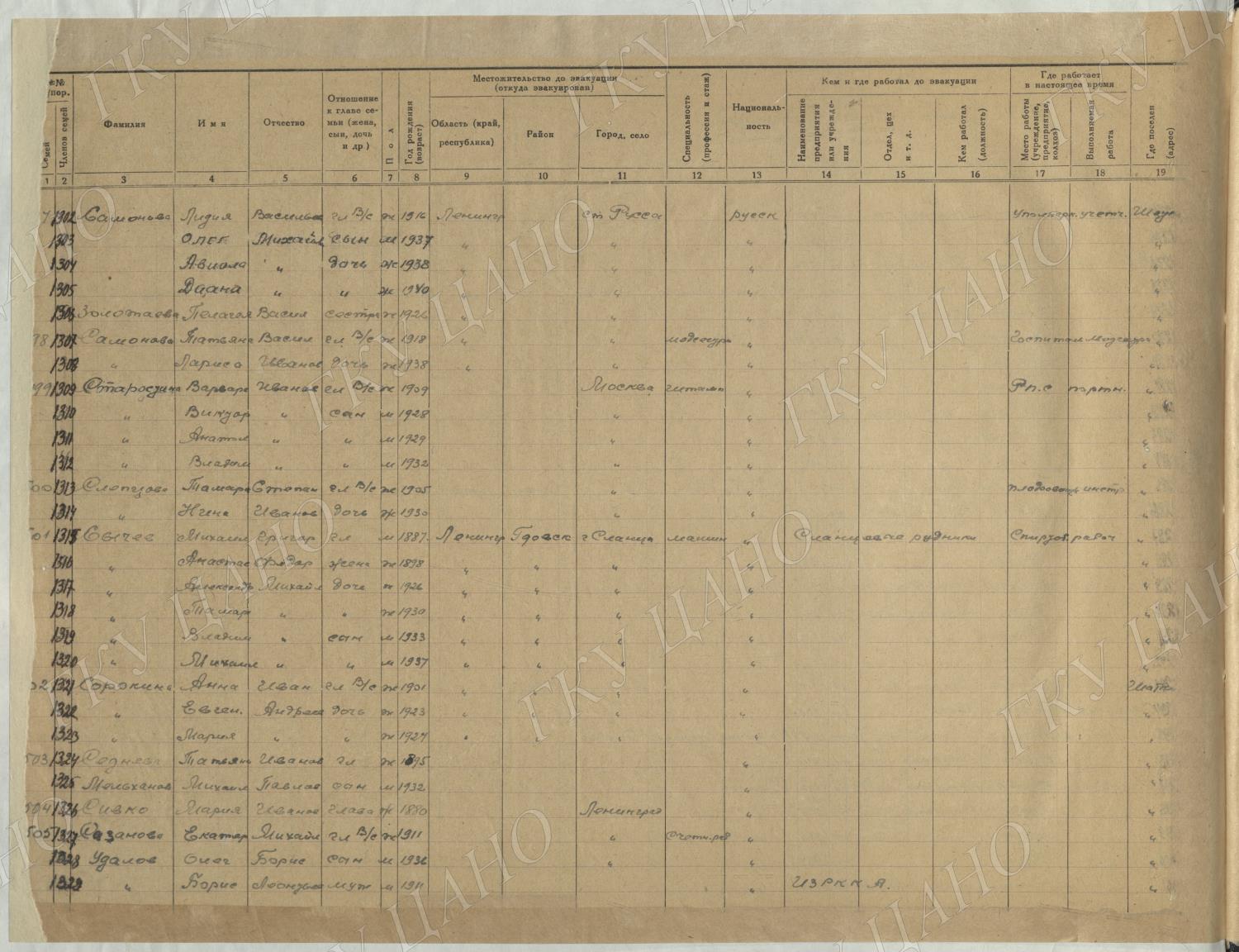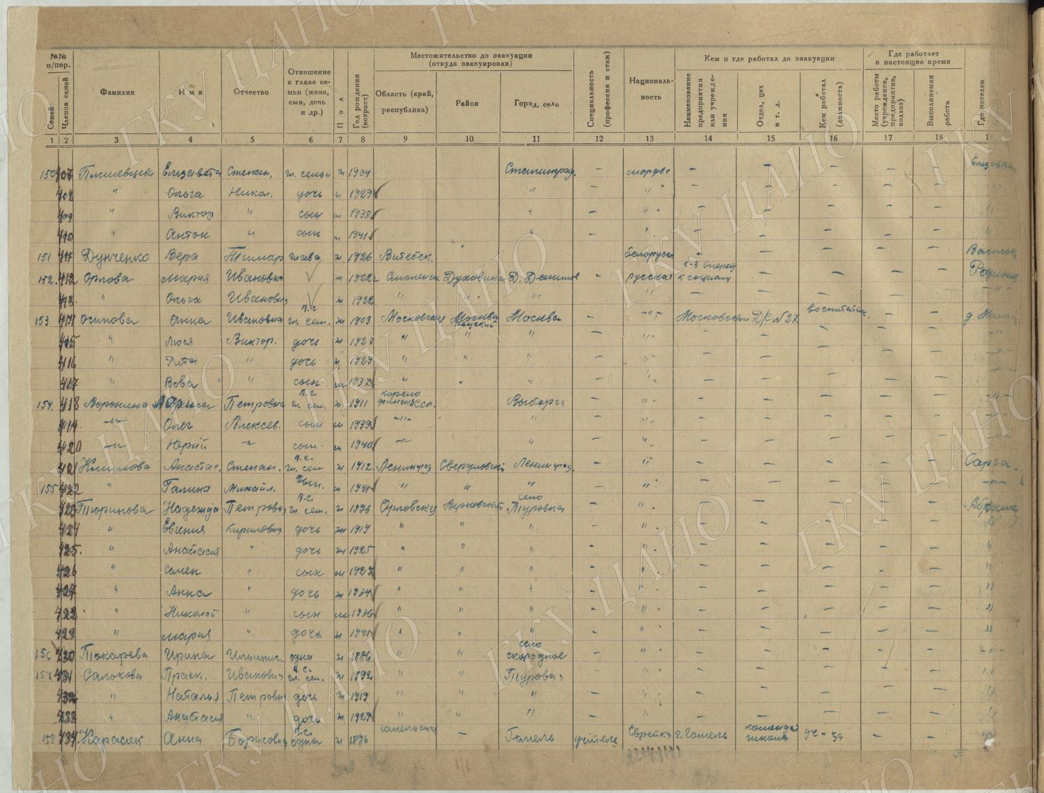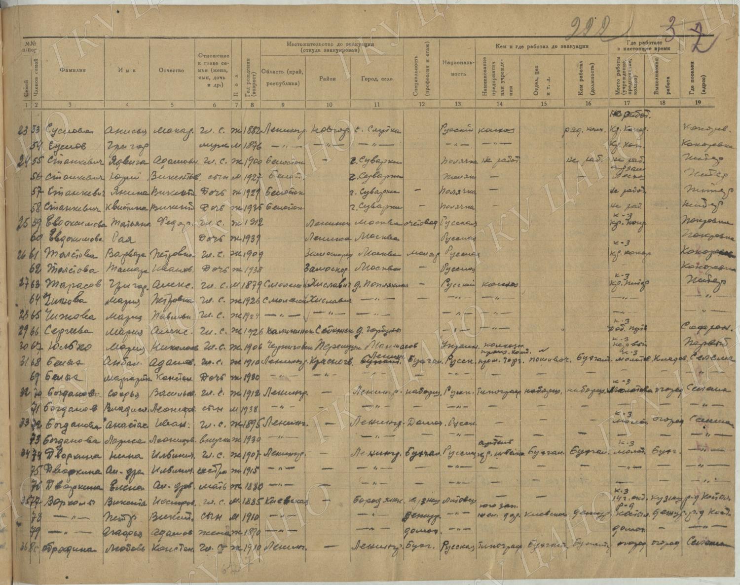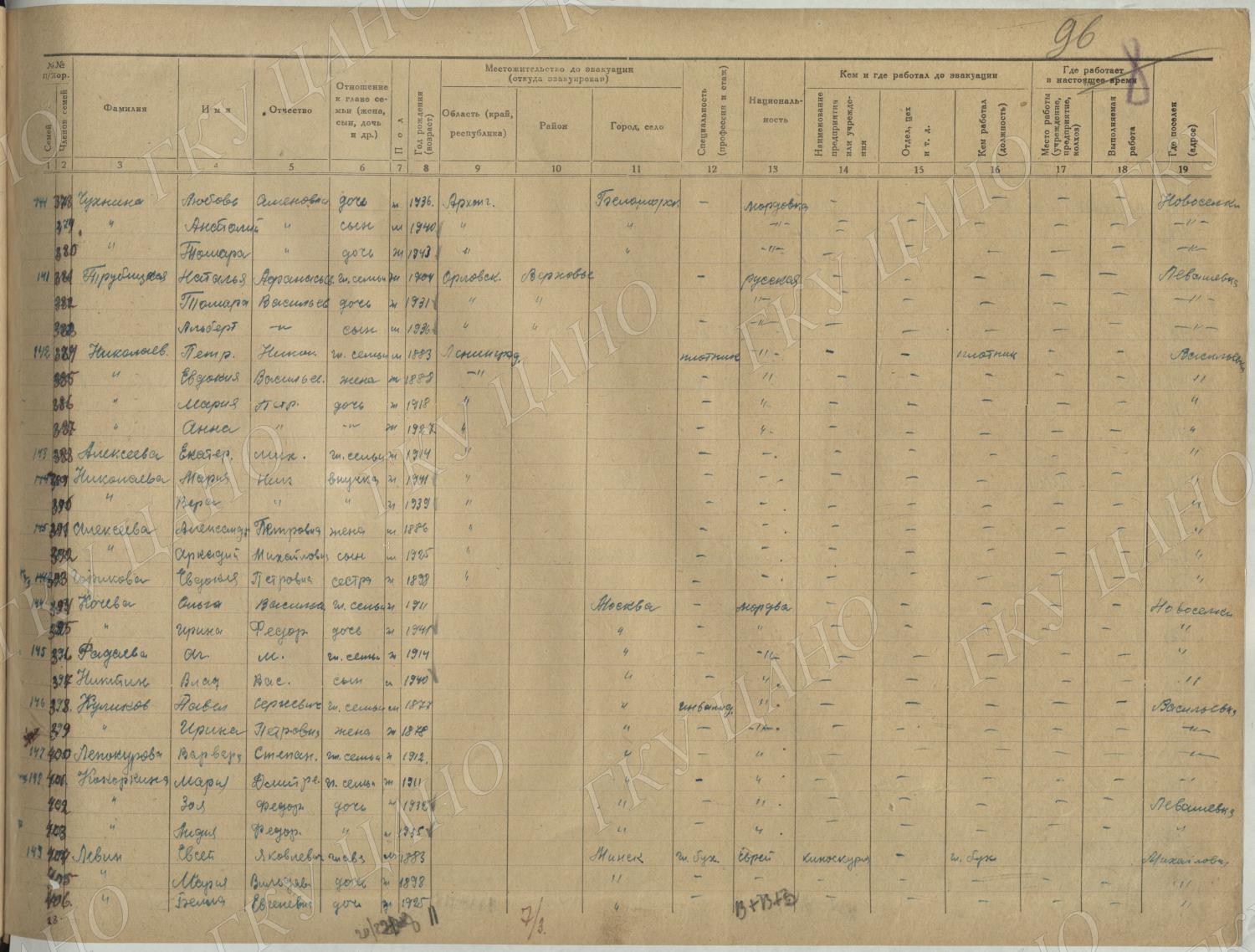 Ф. Р-5344. Оп. 1. Д. 78. Списки эвакуированных граждан, размещенных в городах и районах Горьковской области (Салганский, Сергачский, Сосновский, Теплостанский, Тоншаевский, Чернухинский, Чкаловский, Шахунский, Шарангский районы). 1 июня — 16 октября 1943