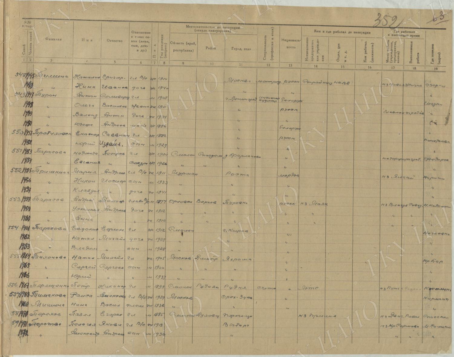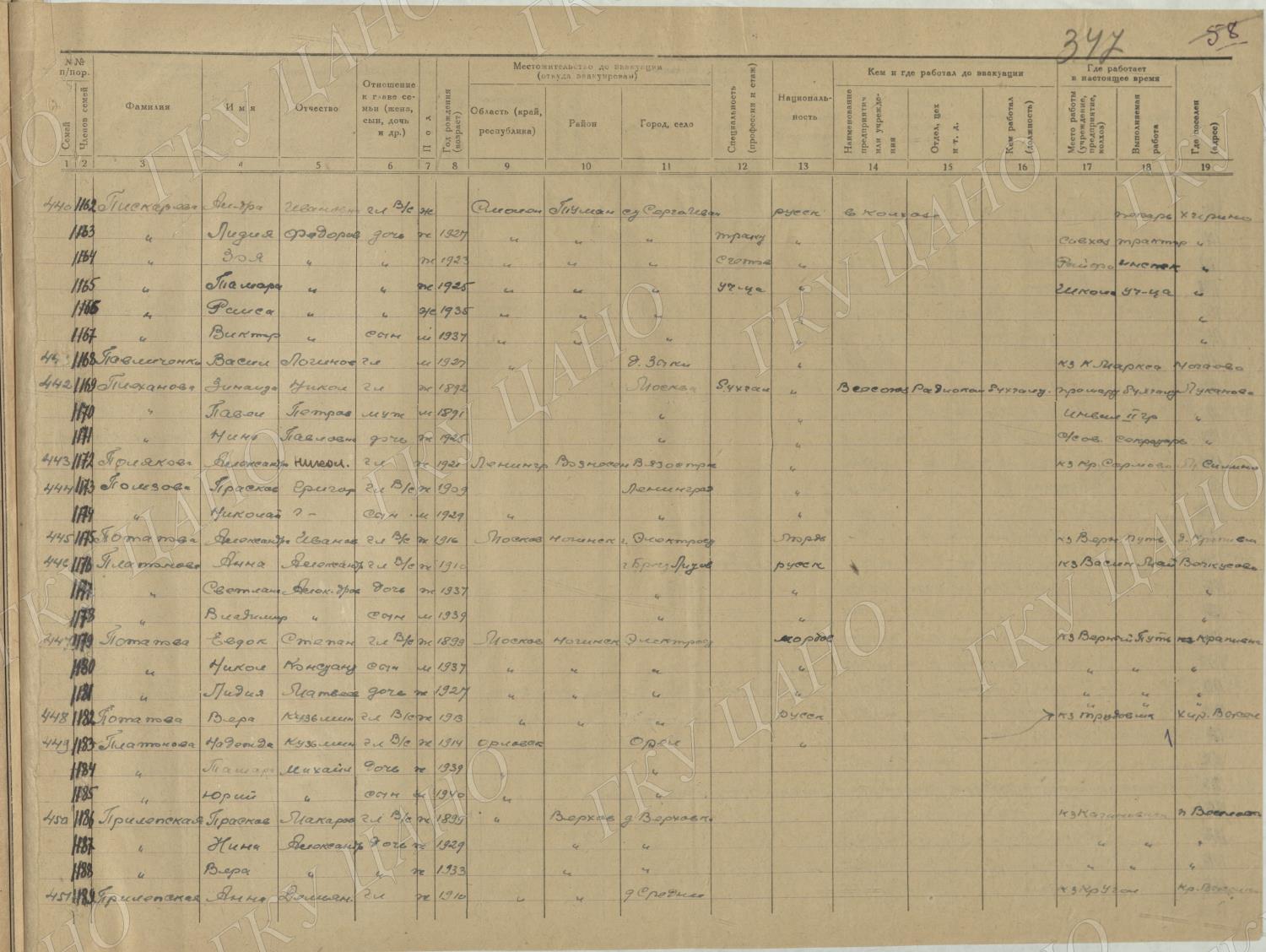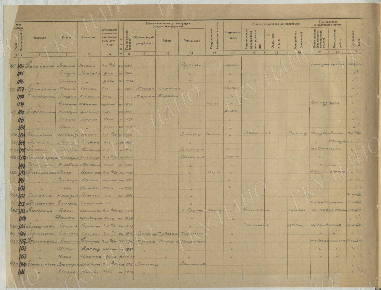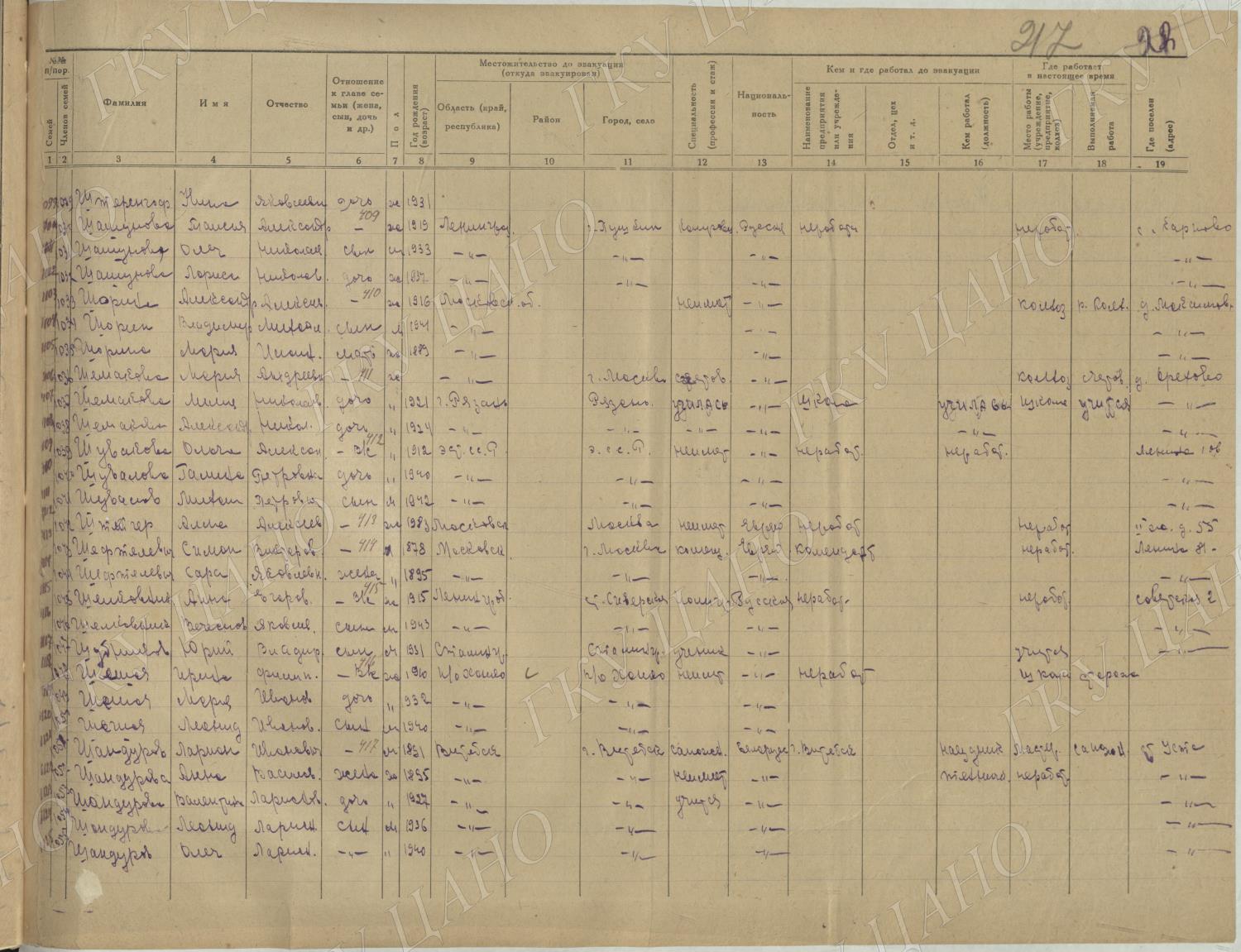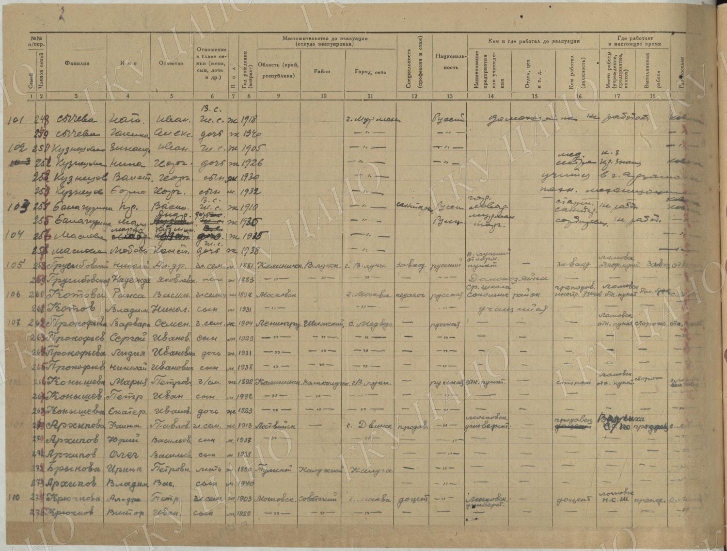 Ф. Р-5344. Оп. 1. Д. 78. Списки эвакуированных граждан, размещенных в городах и районах Горьковской области (Салганский, Сергачский, Сосновский, Теплостанский, Тоншаевский, Чернухинский, Чкаловский, Шахунский, Шарангский районы). 1 июня — 16 октября 1943