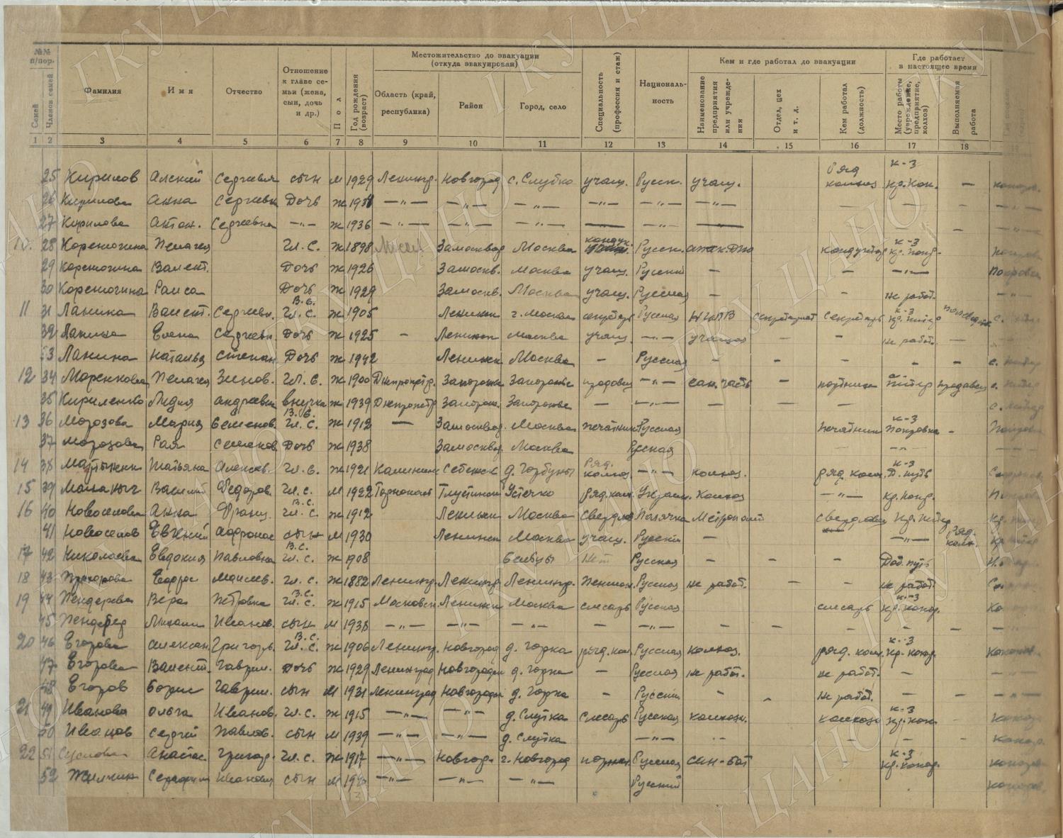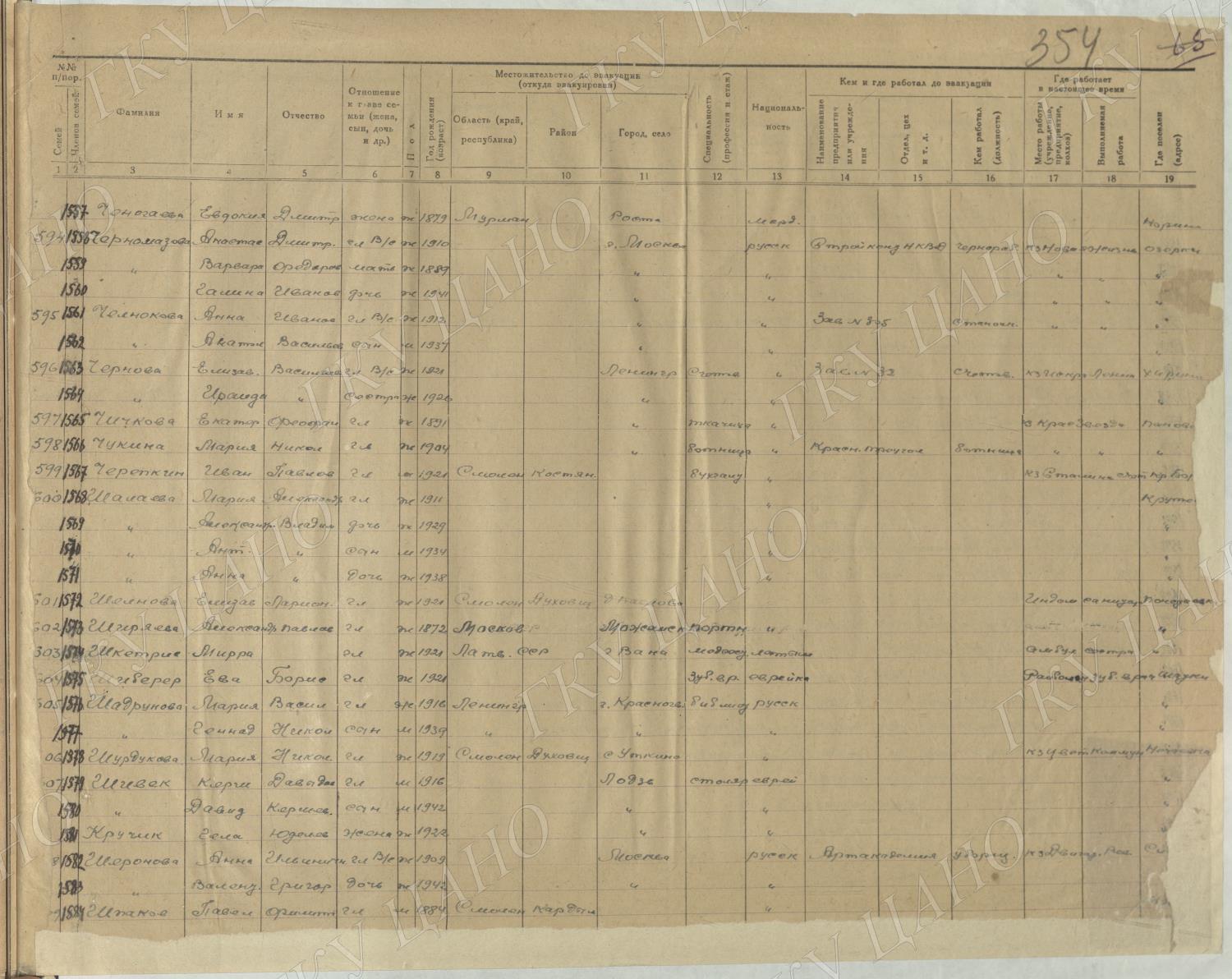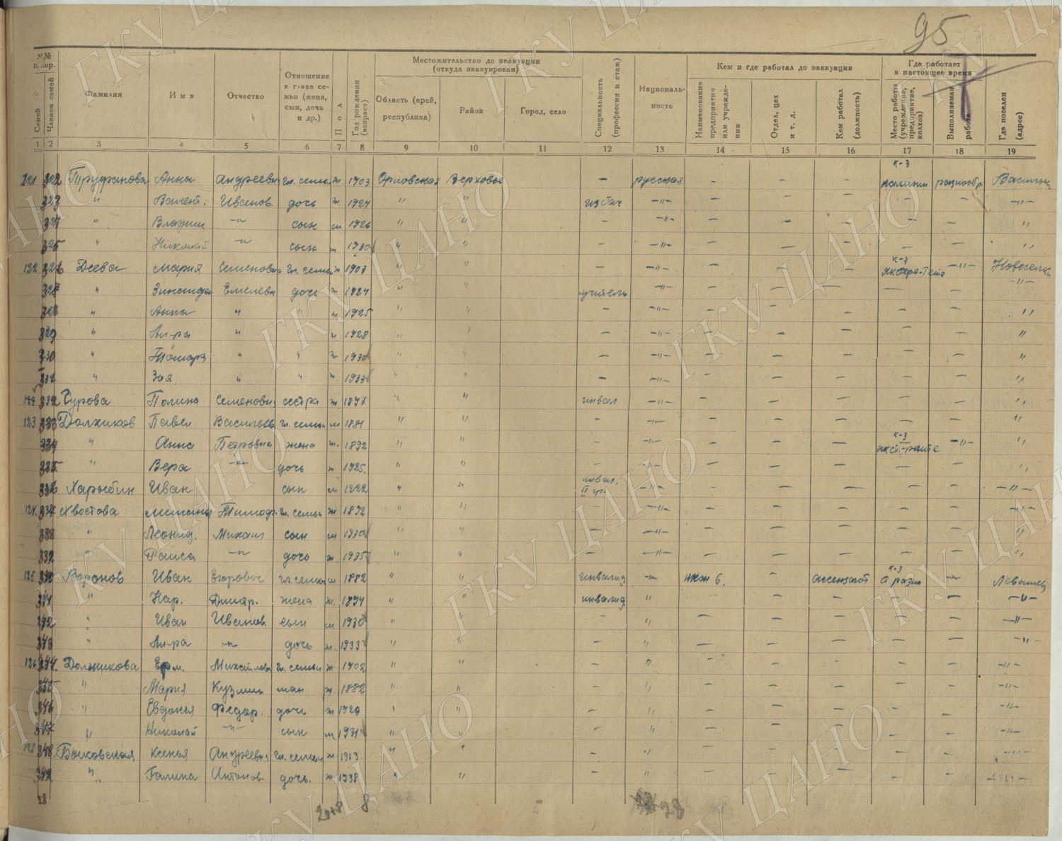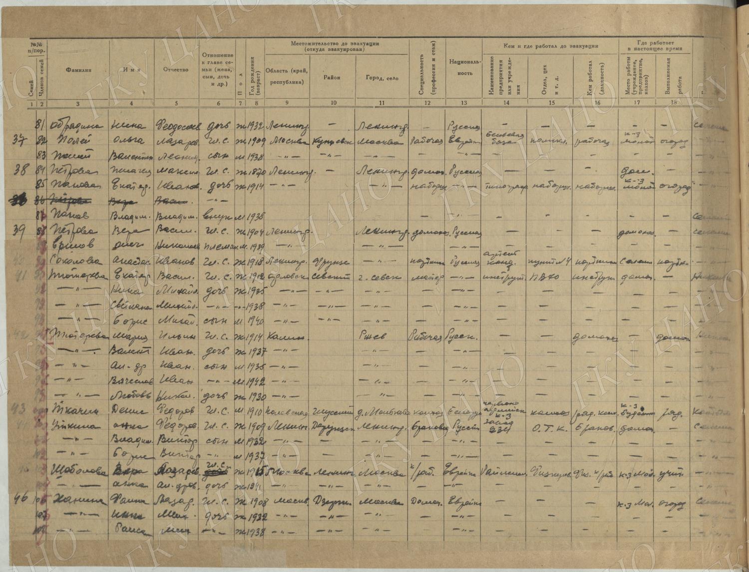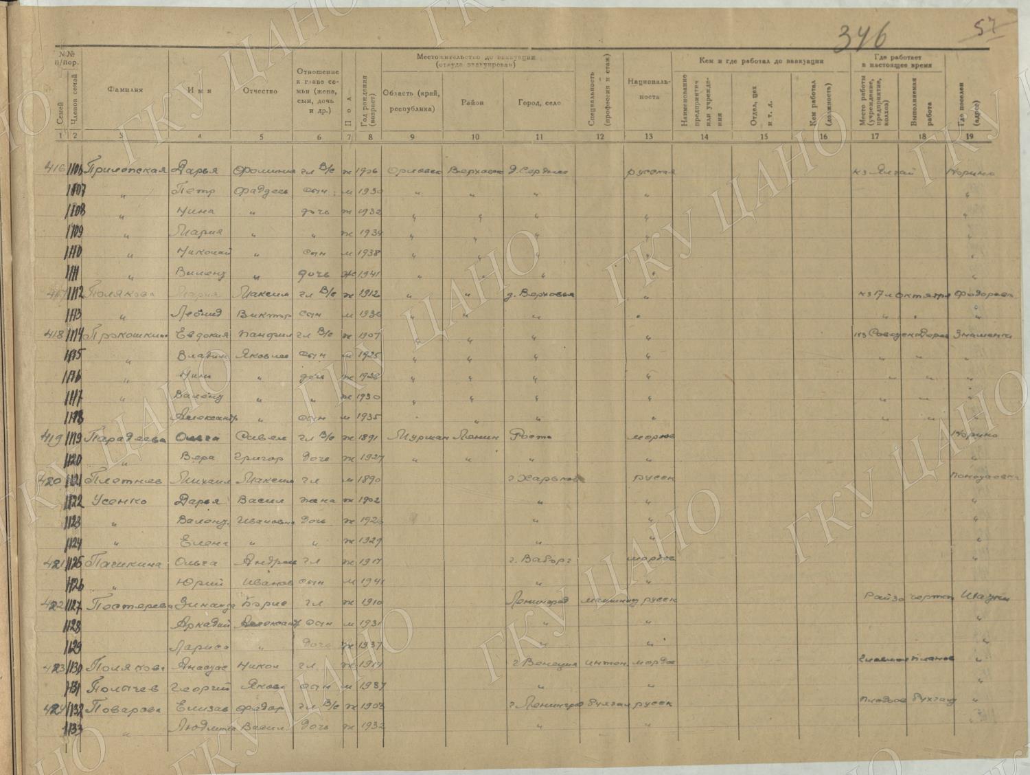 Ф. Р-5344. Оп. 1. Д. 78. Списки эвакуированных граждан, размещенных в городах и районах Горьковской области (Салганский, Сергачский, Сосновский, Теплостанский, Тоншаевский, Чернухинский, Чкаловский, Шахунский, Шарангский районы). 1 июня — 16 октября 1943