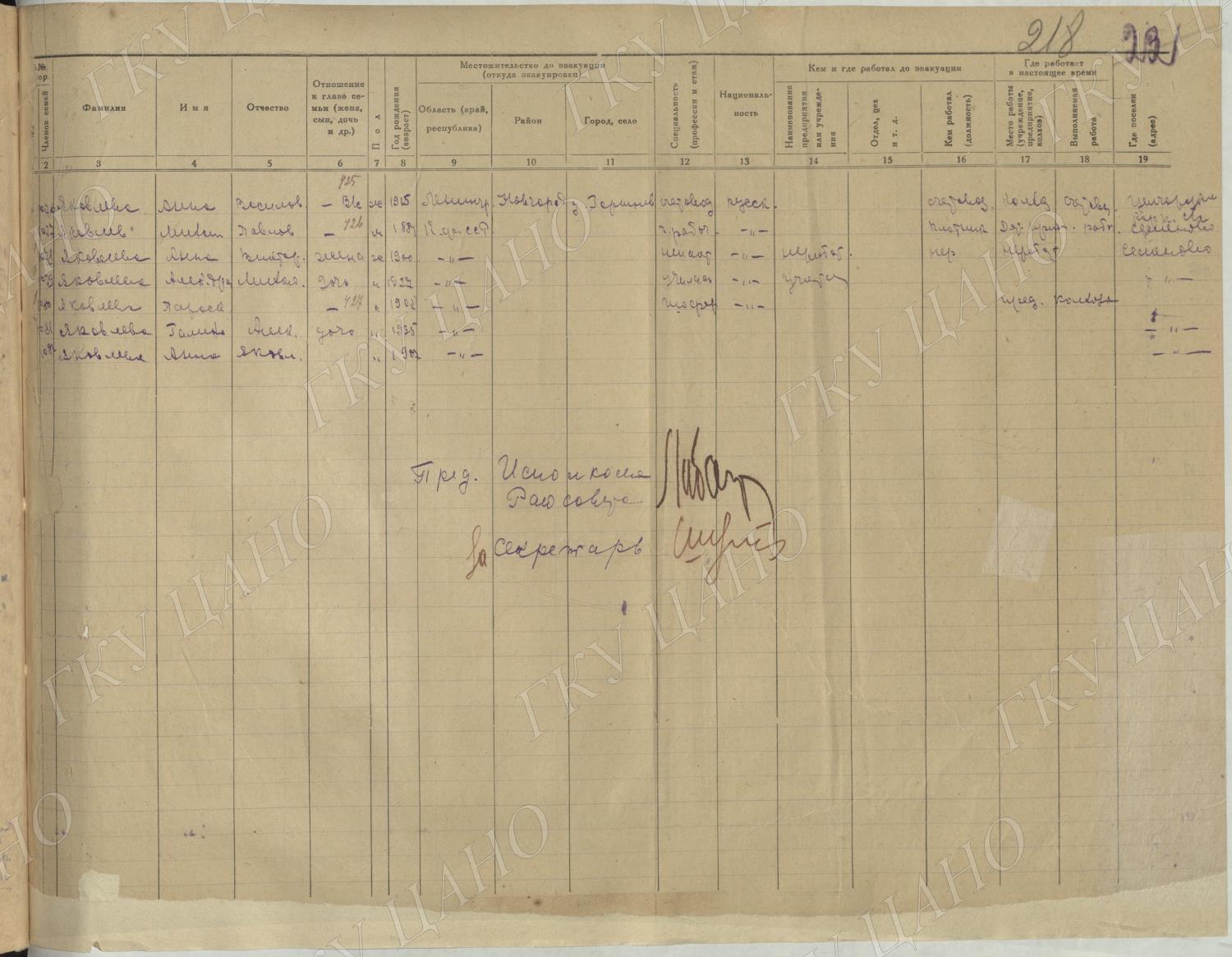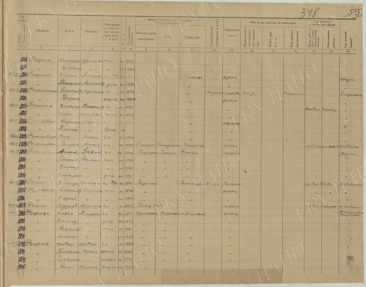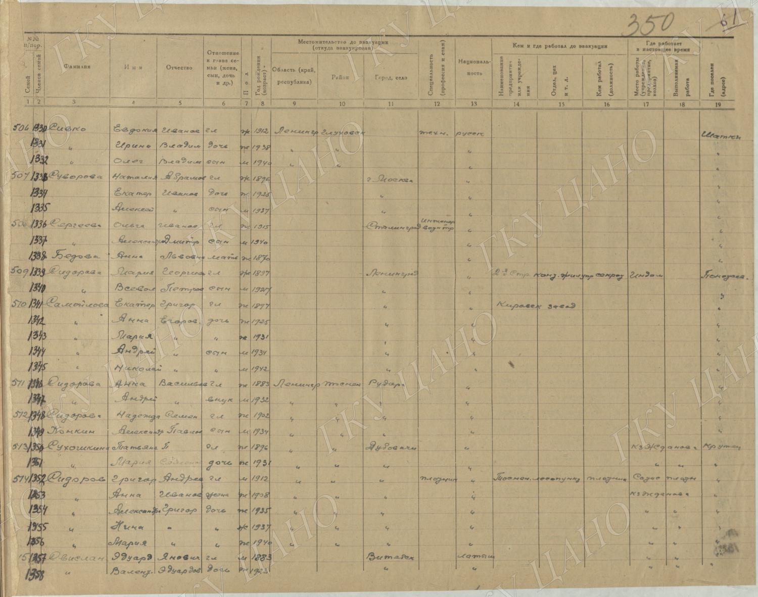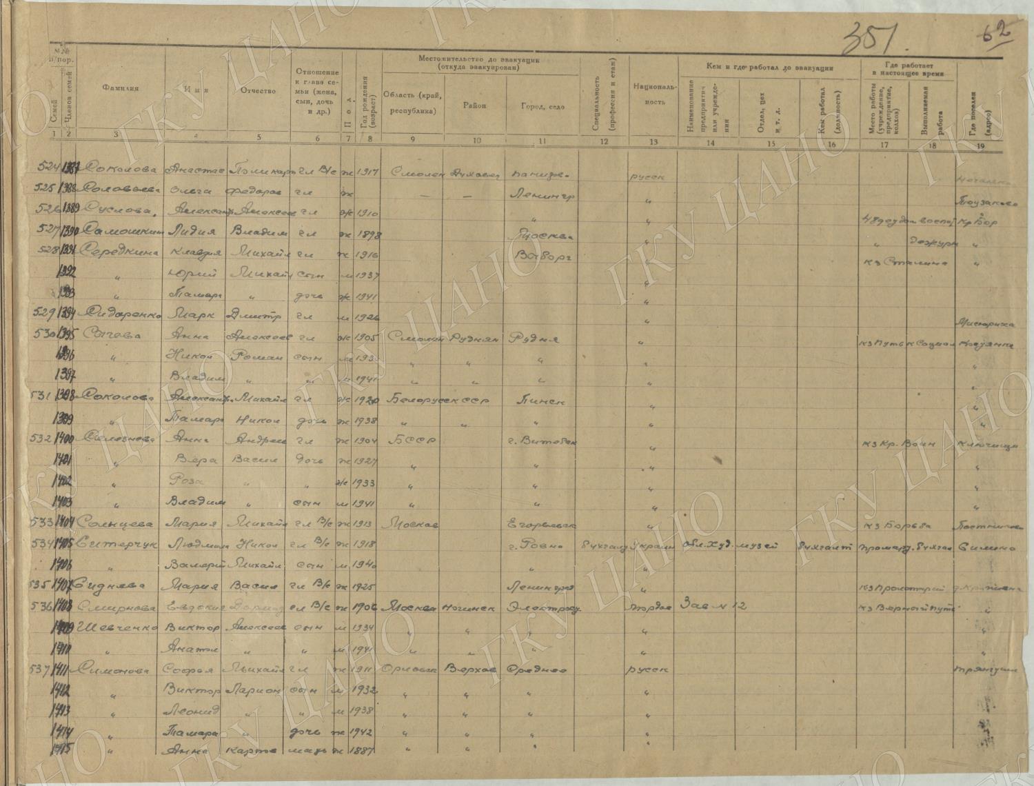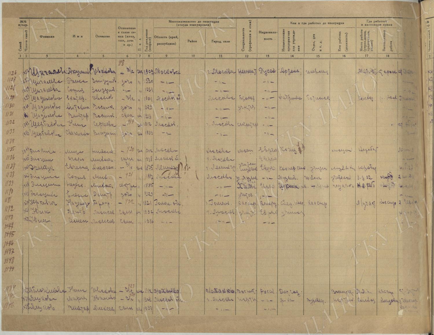 Ф. Р-5344. Оп. 1. Д. 78. Списки эвакуированных граждан, размещенных в городах и районах Горьковской области (Салганский, Сергачский, Сосновский, Теплостанский, Тоншаевский, Чернухинский, Чкаловский, Шахунский, Шарангский районы). 1 июня — 16 октября 1943