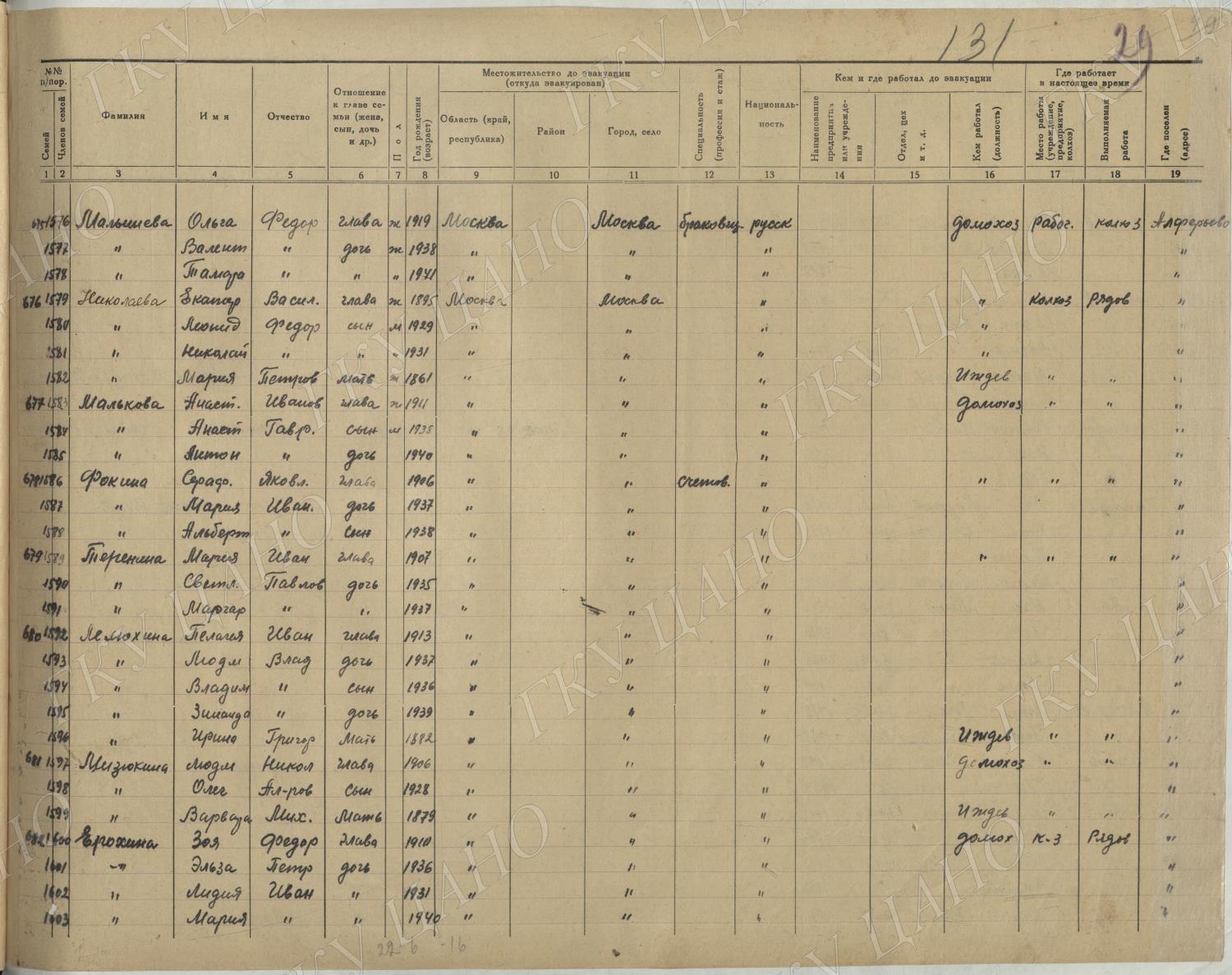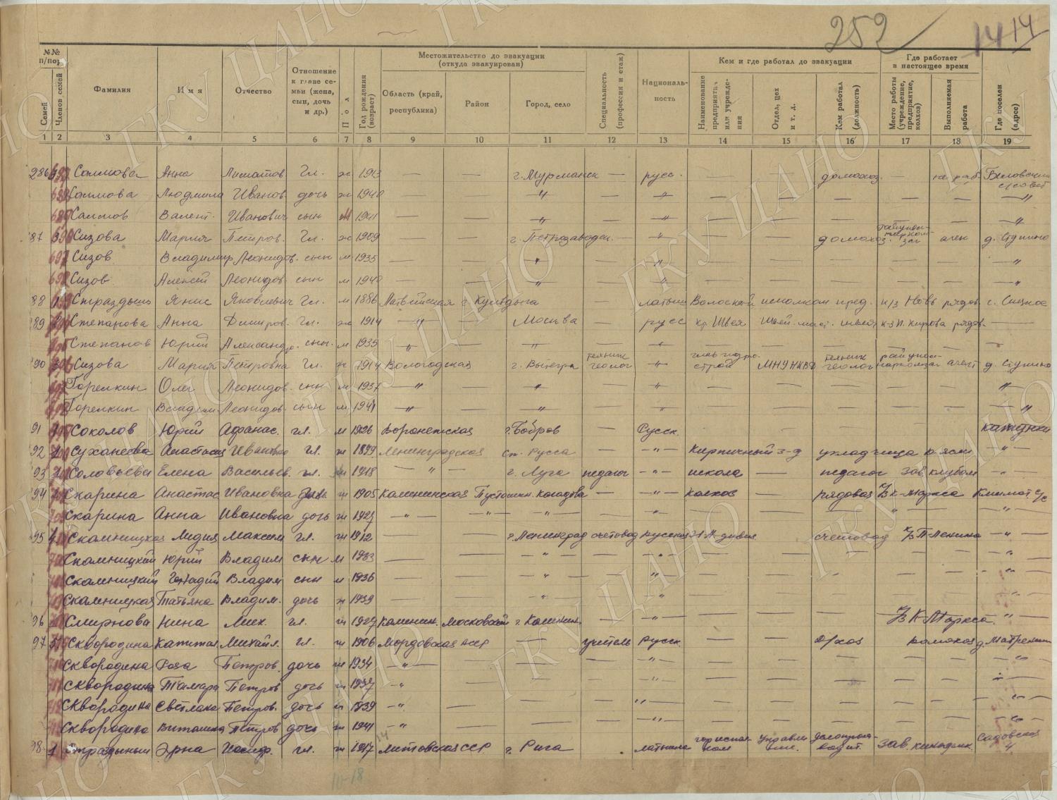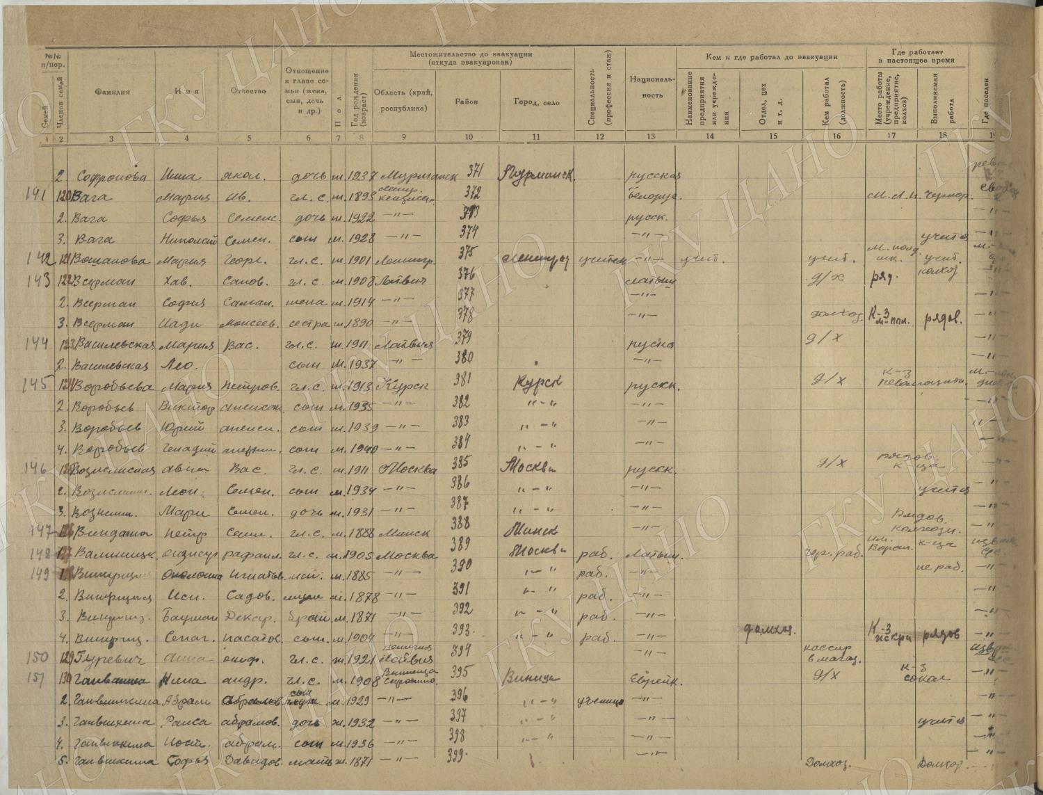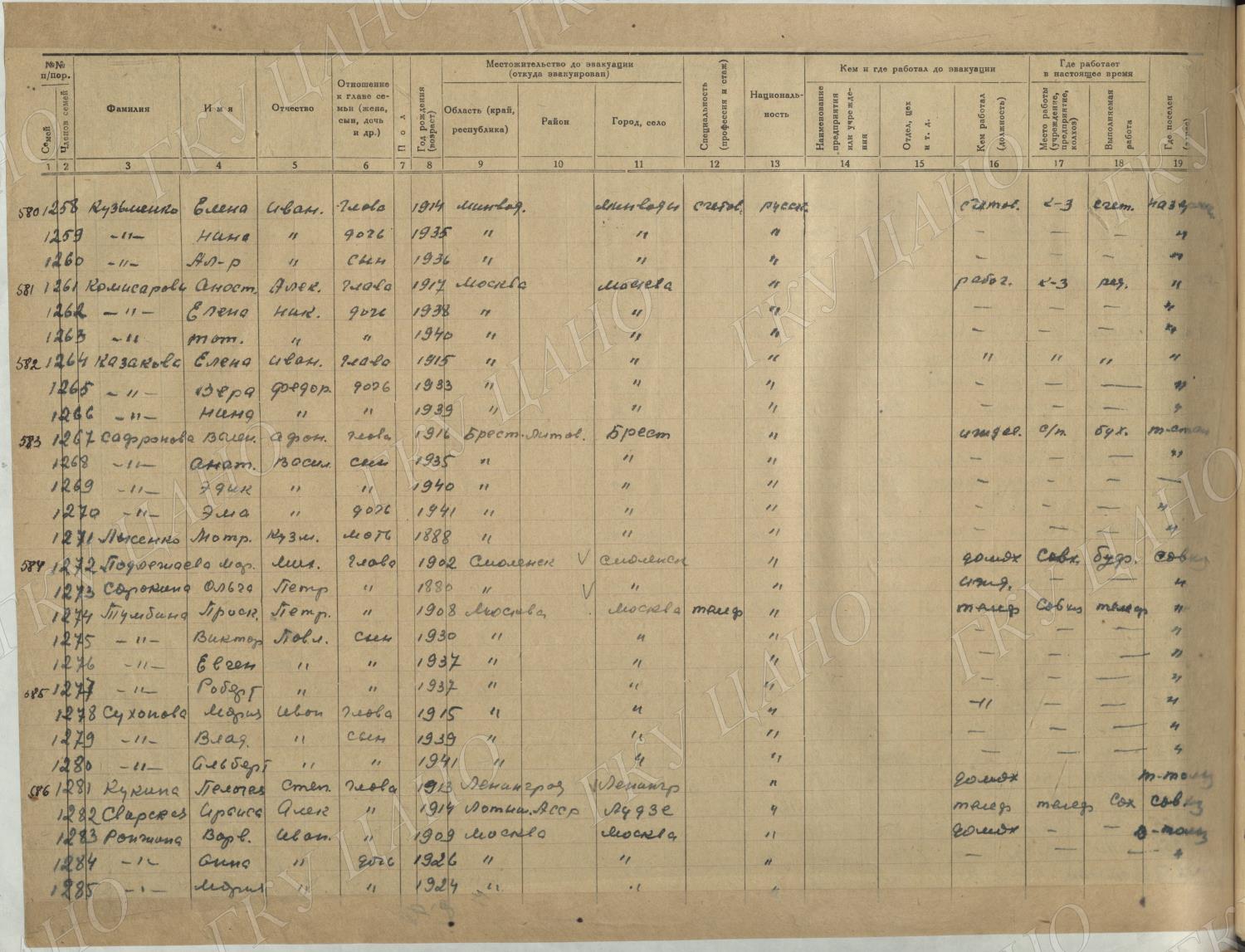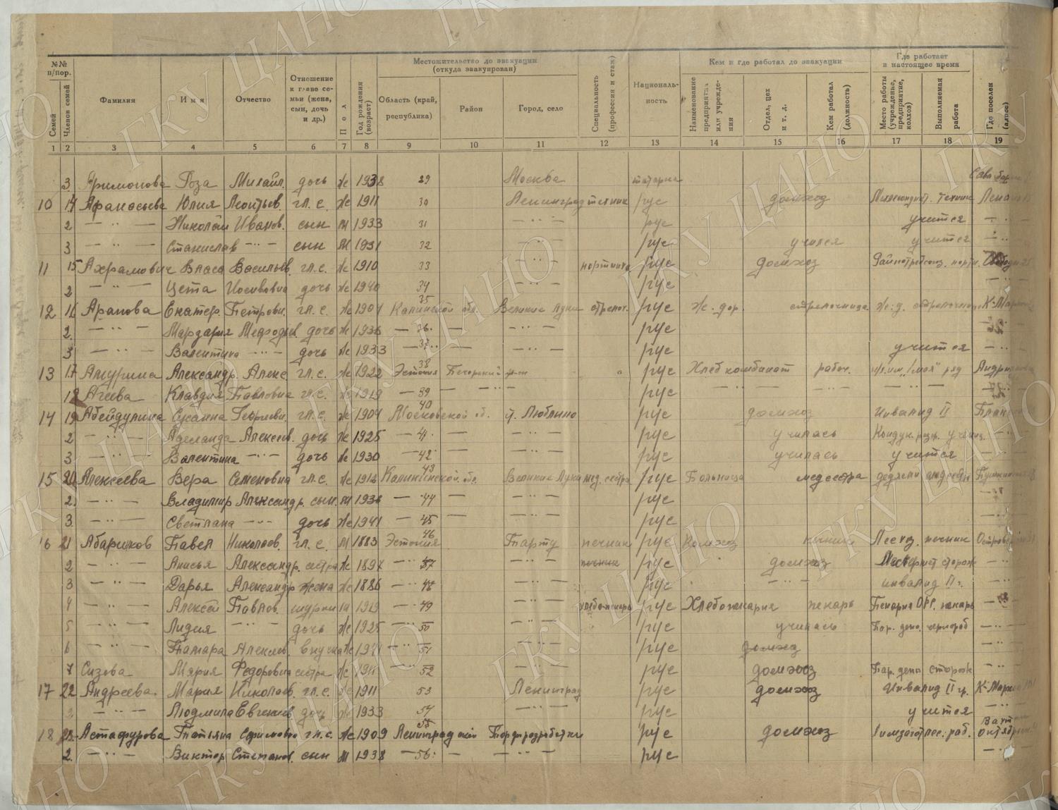 Ф. Р-5344. Оп. 1. Д. 78. Списки эвакуированных граждан, размещенных в городах и районах Горьковской области (Салганский, Сергачский, Сосновский, Теплостанский, Тоншаевский, Чернухинский, Чкаловский, Шахунский, Шарангский районы). 1 июня — 16 октября 1943