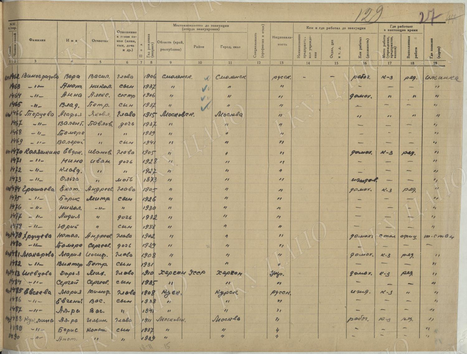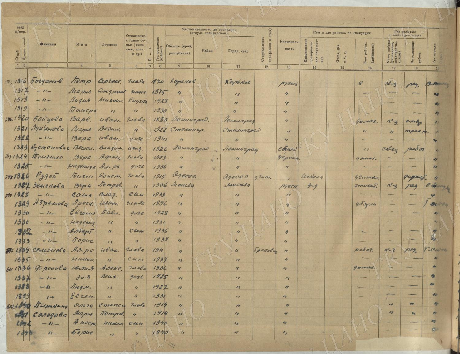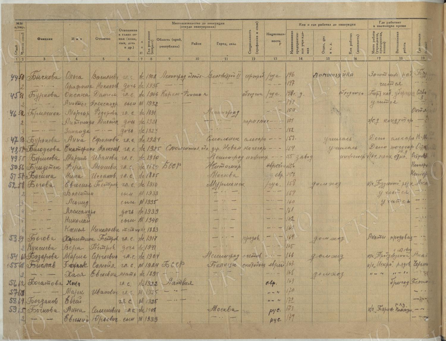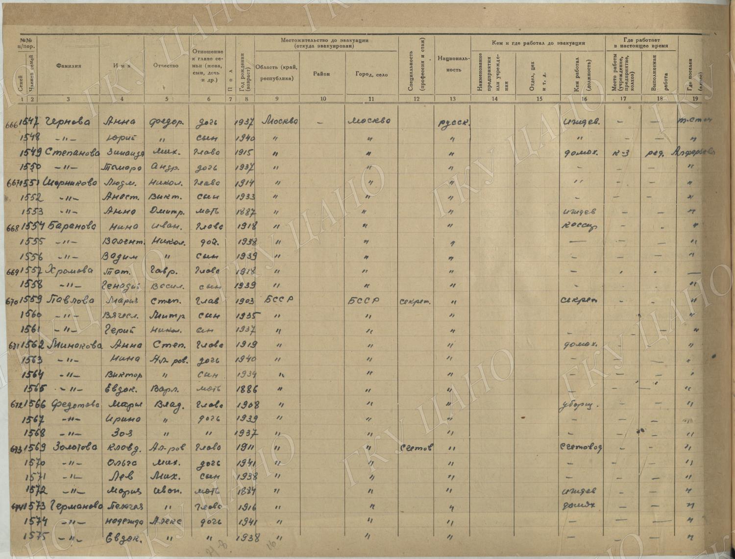Ф. Р-5344. Оп. 1. Д. 78. Списки эвакуированных граждан, размещенных в городах и районах Горьковской области (Салганский, Сергачский, Сосновский, Теплостанский, Тоншаевский, Чернухинский, Чкаловский, Шахунский, Шарангский районы). 1 июня — 16 октября 1943