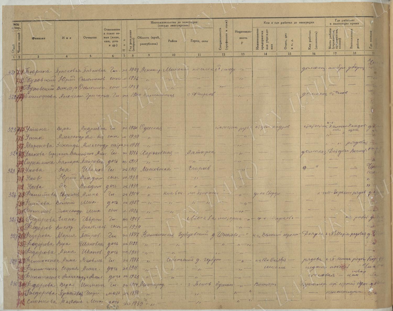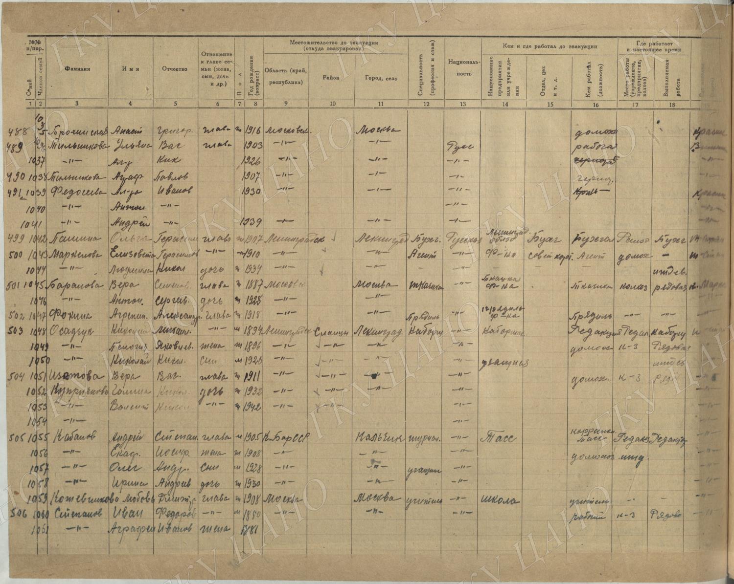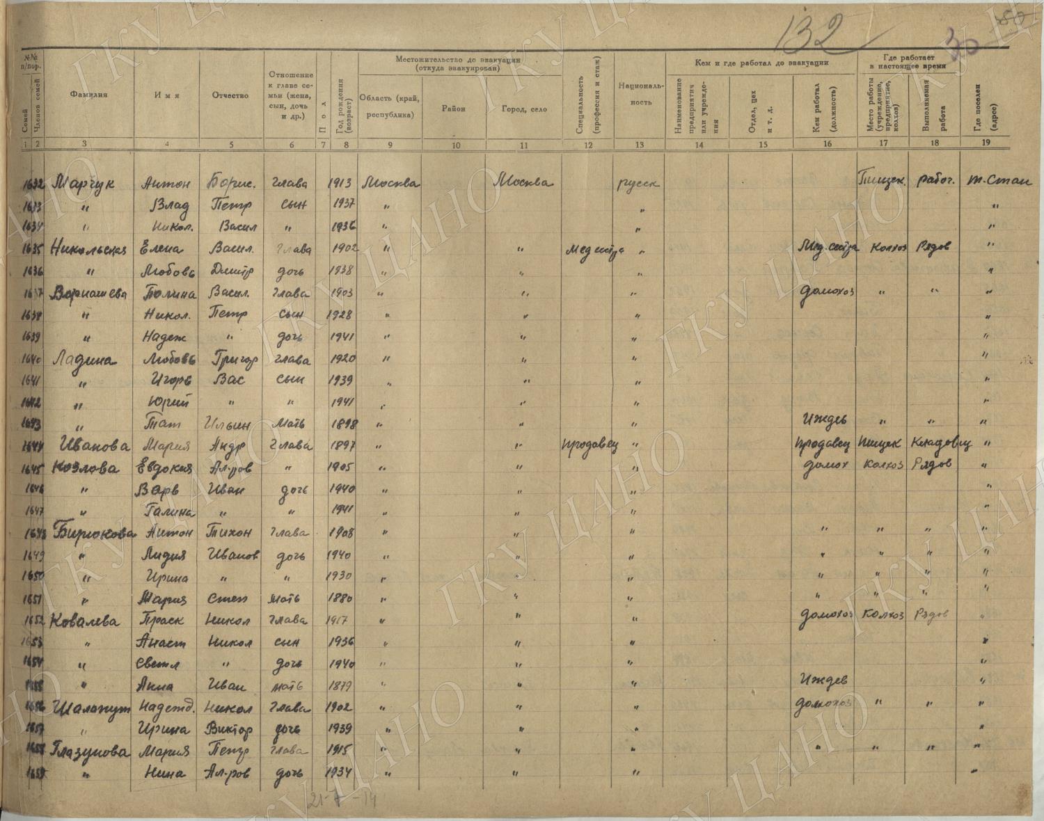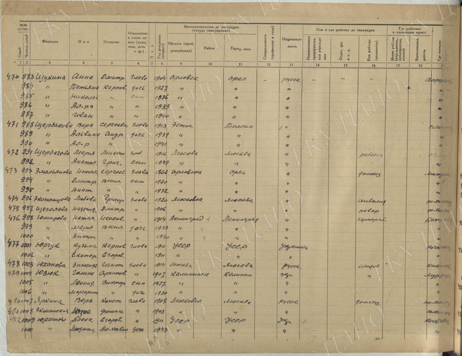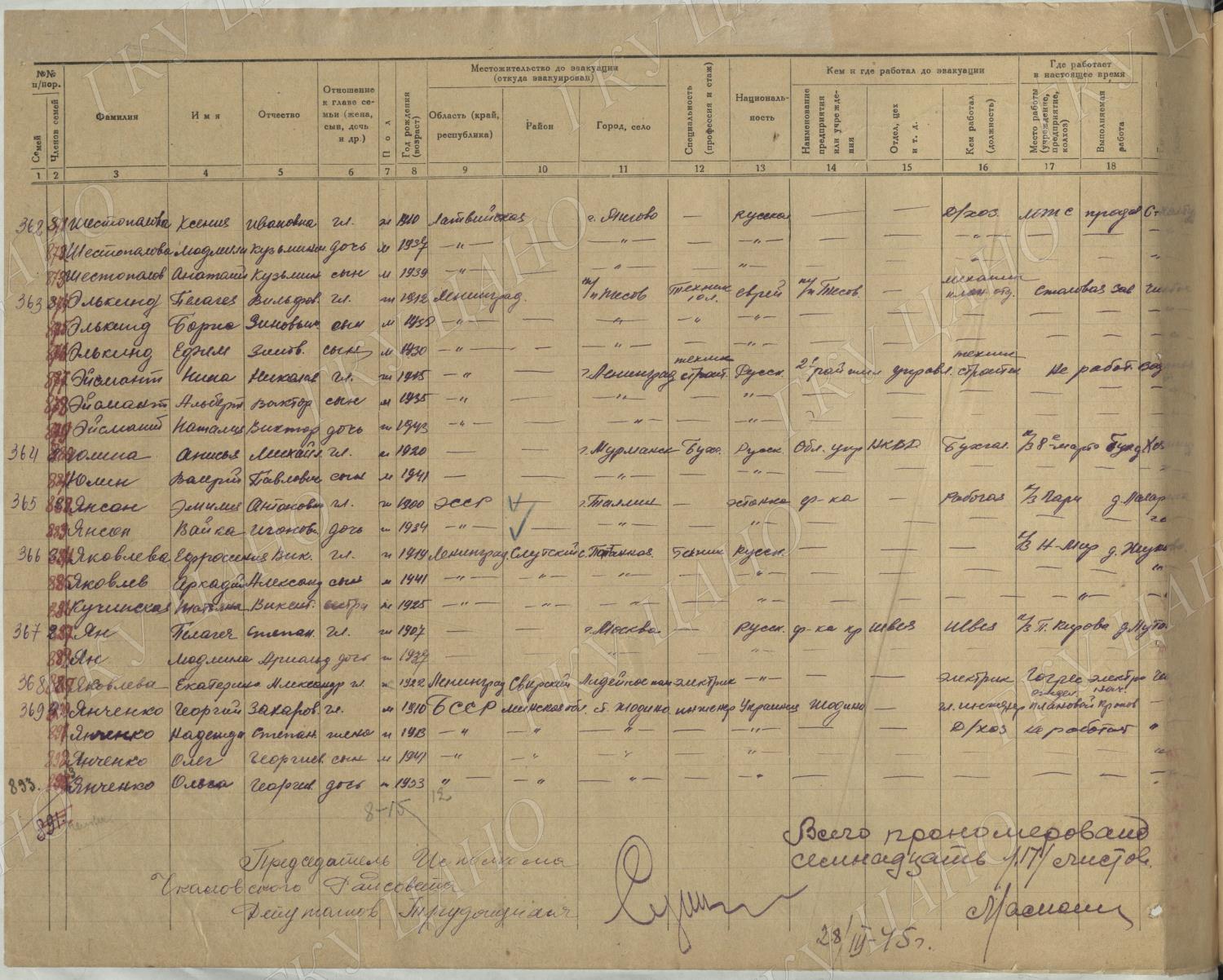 Ф. Р-5344. Оп. 1. Д. 78. Списки эвакуированных граждан, размещенных в городах и районах Горьковской области (Салганский, Сергачский, Сосновский, Теплостанский, Тоншаевский, Чернухинский, Чкаловский, Шахунский, Шарангский районы). 1 июня — 16 октября 1943