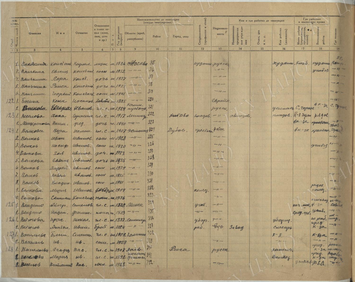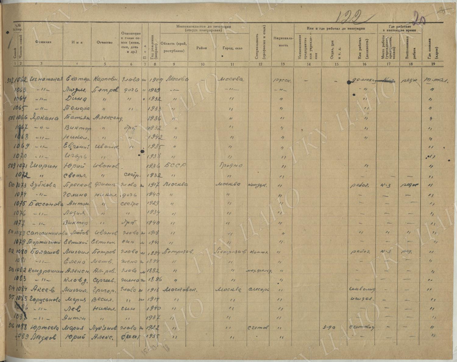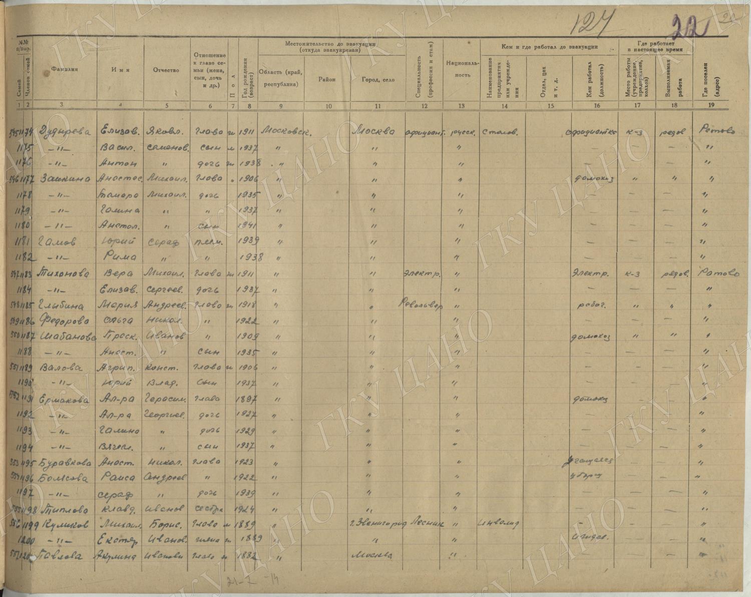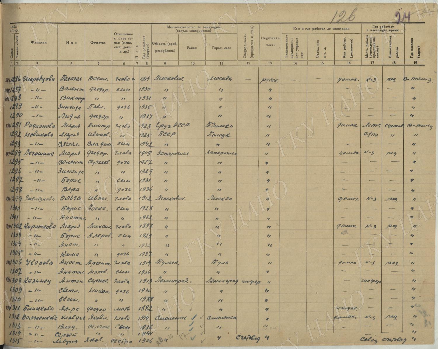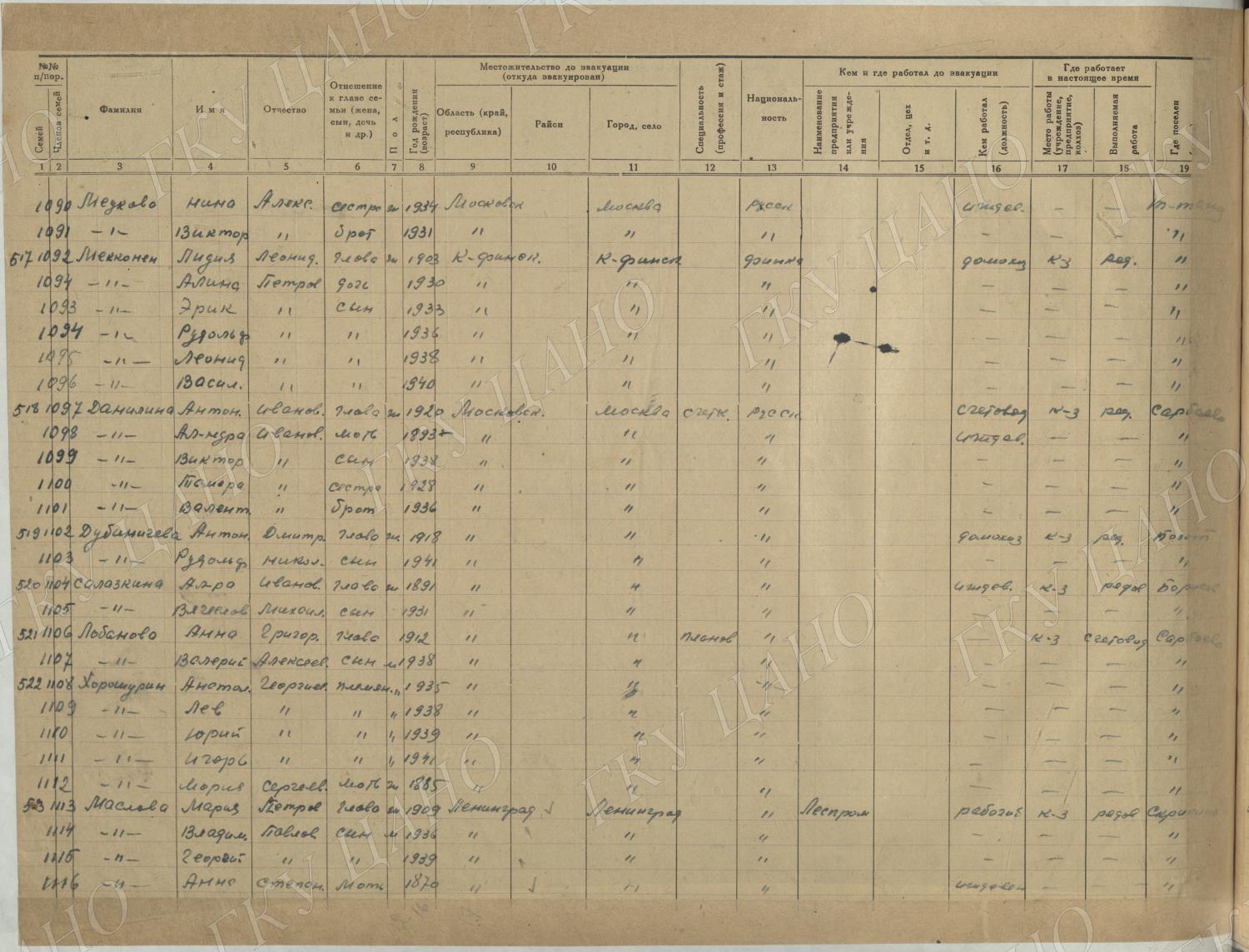 Ф. Р-5344. Оп. 1. Д. 78. Списки эвакуированных граждан, размещенных в городах и районах Горьковской области (Салганский, Сергачский, Сосновский, Теплостанский, Тоншаевский, Чернухинский, Чкаловский, Шахунский, Шарангский районы). 1 июня — 16 октября 1943
