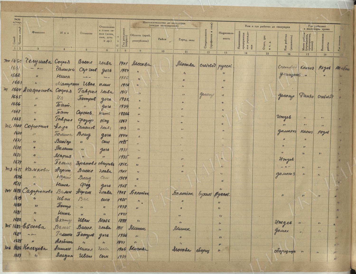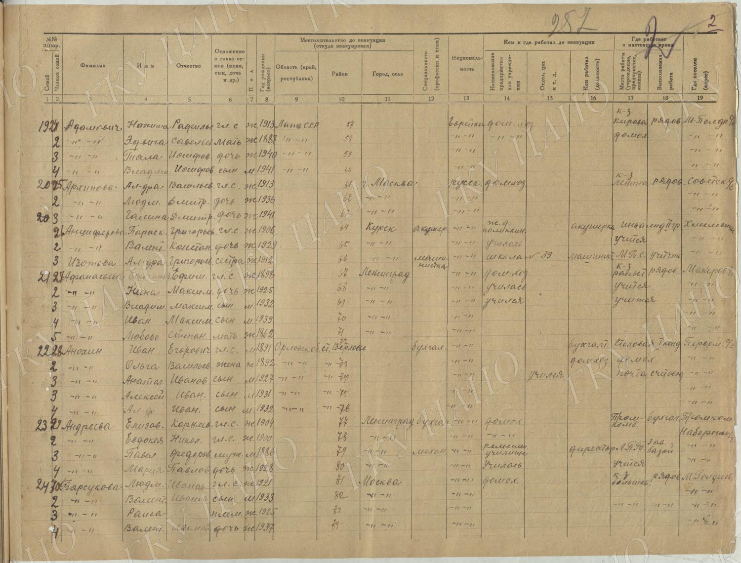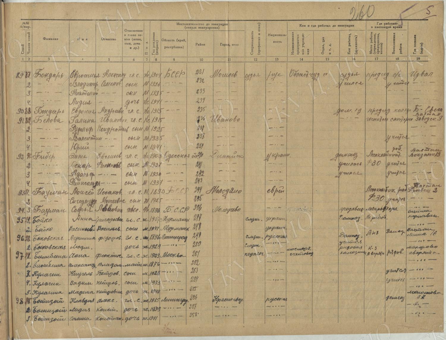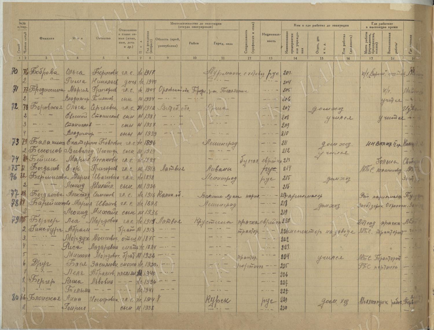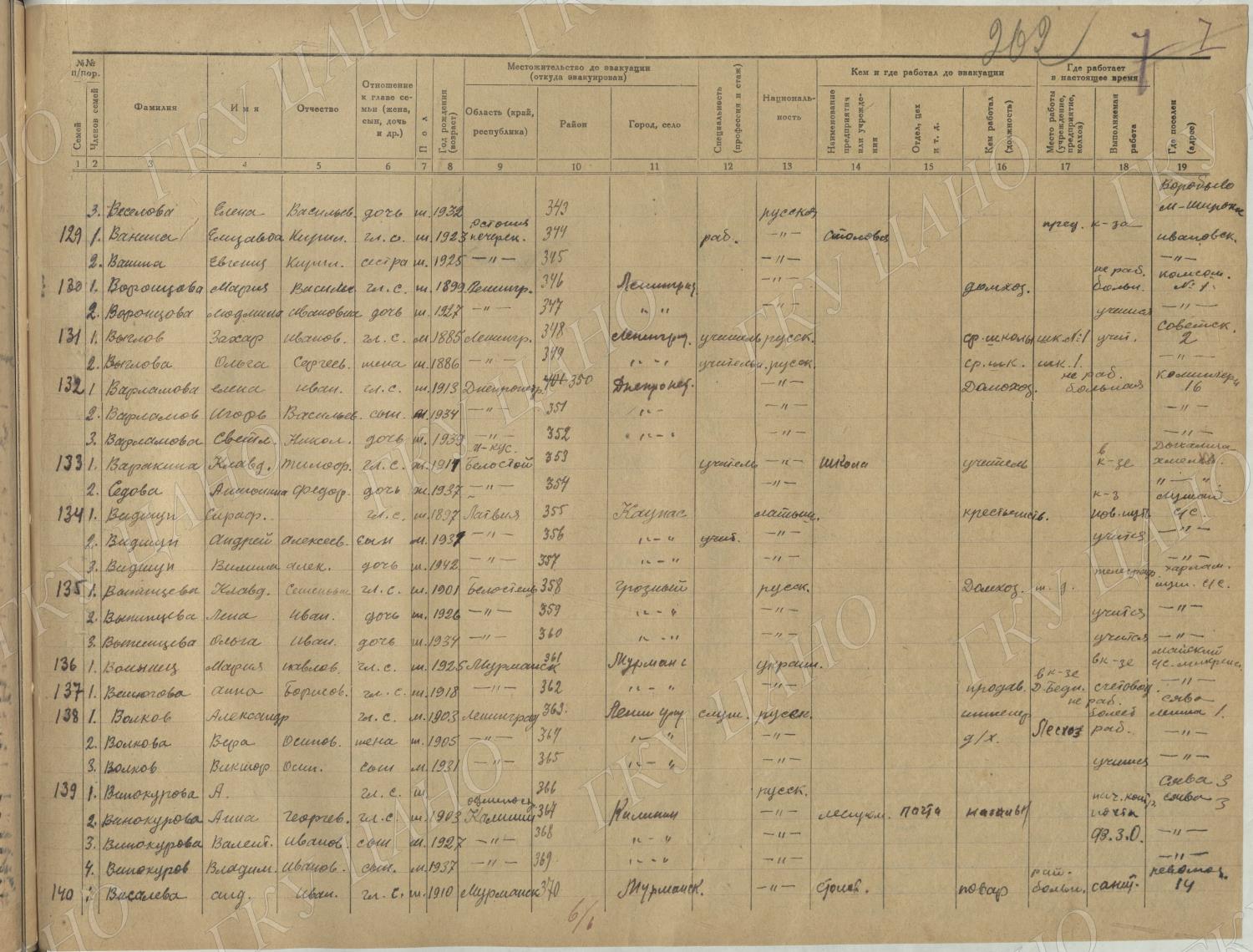 Ф. Р-5344. Оп. 1. Д. 78. Списки эвакуированных граждан, размещенных в городах и районах Горьковской области (Салганский, Сергачский, Сосновский, Теплостанский, Тоншаевский, Чернухинский, Чкаловский, Шахунский, Шарангский районы). 1 июня — 16 октября 1943