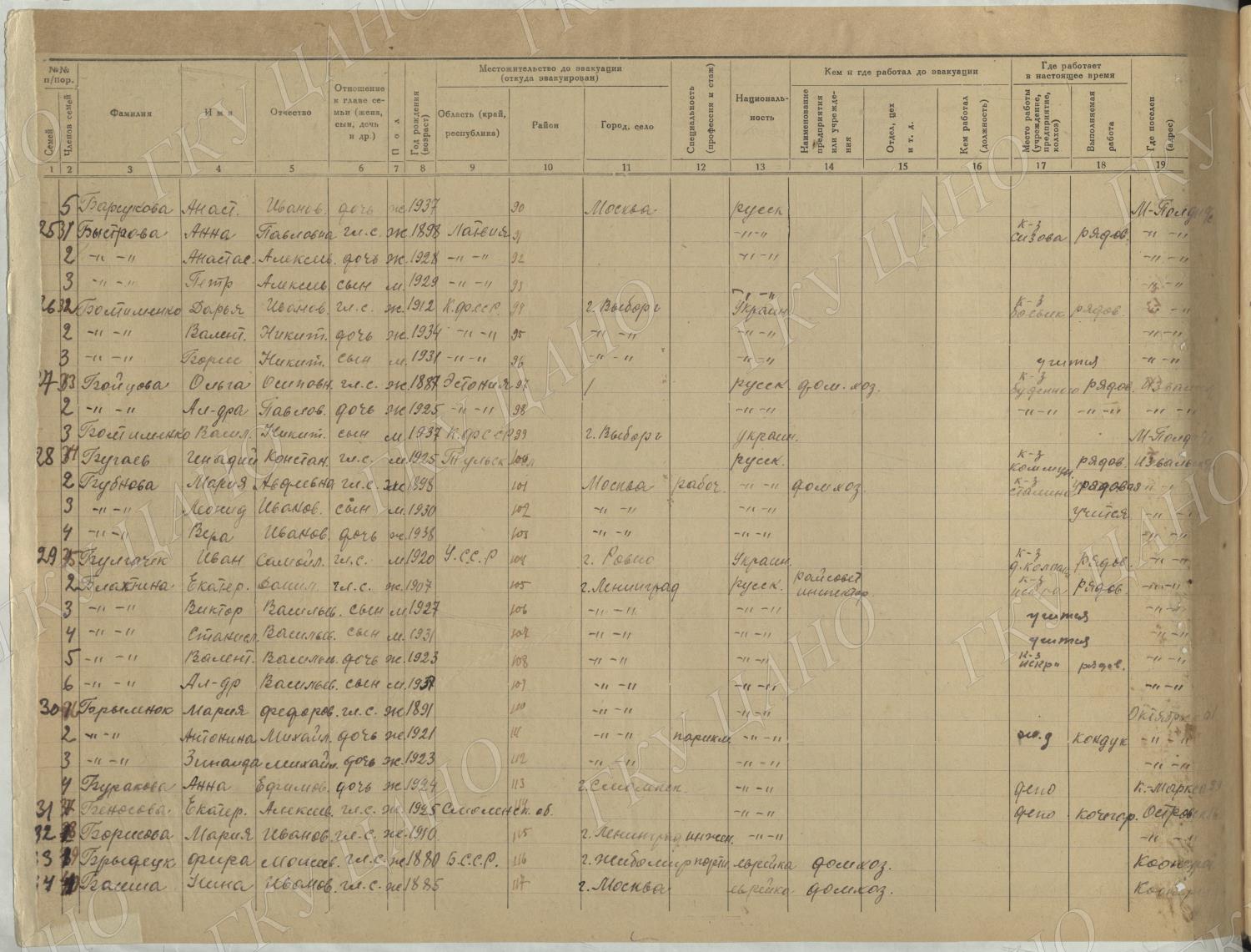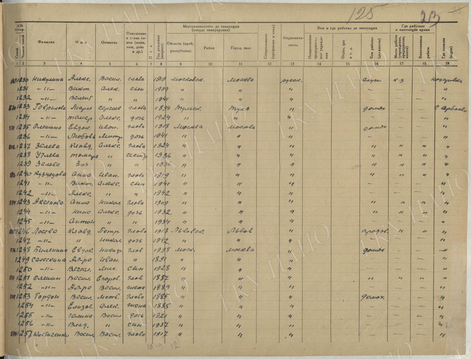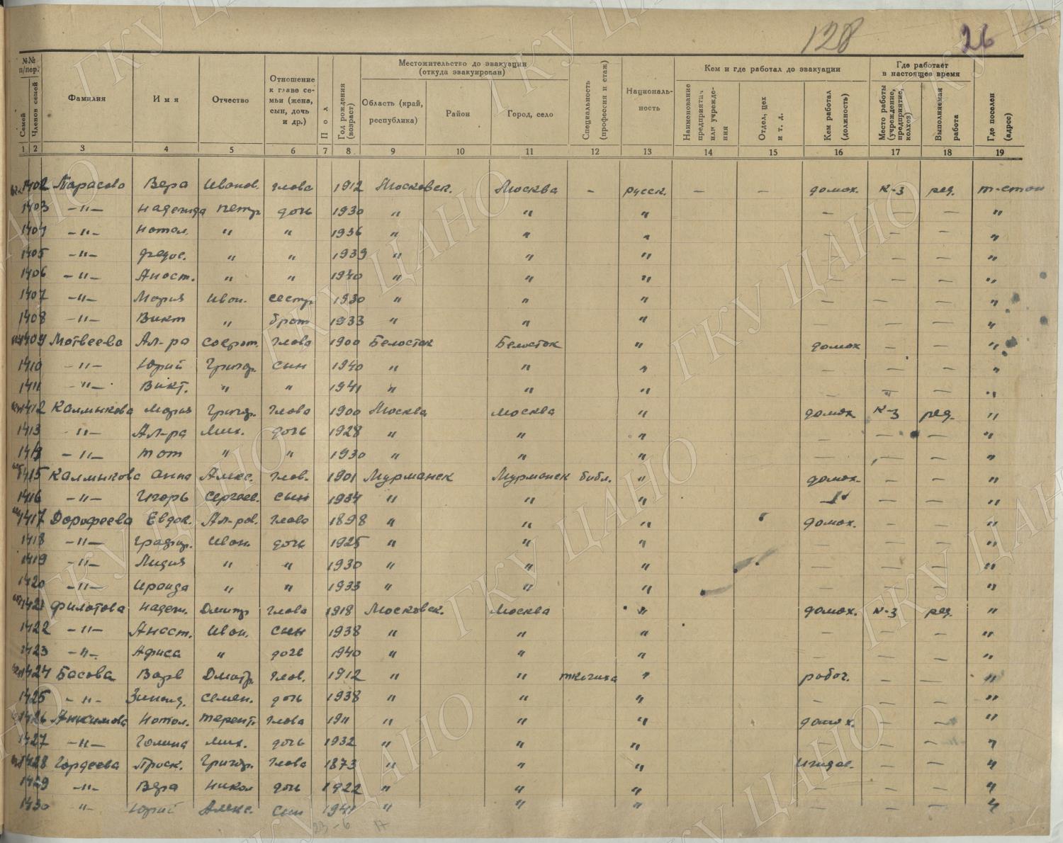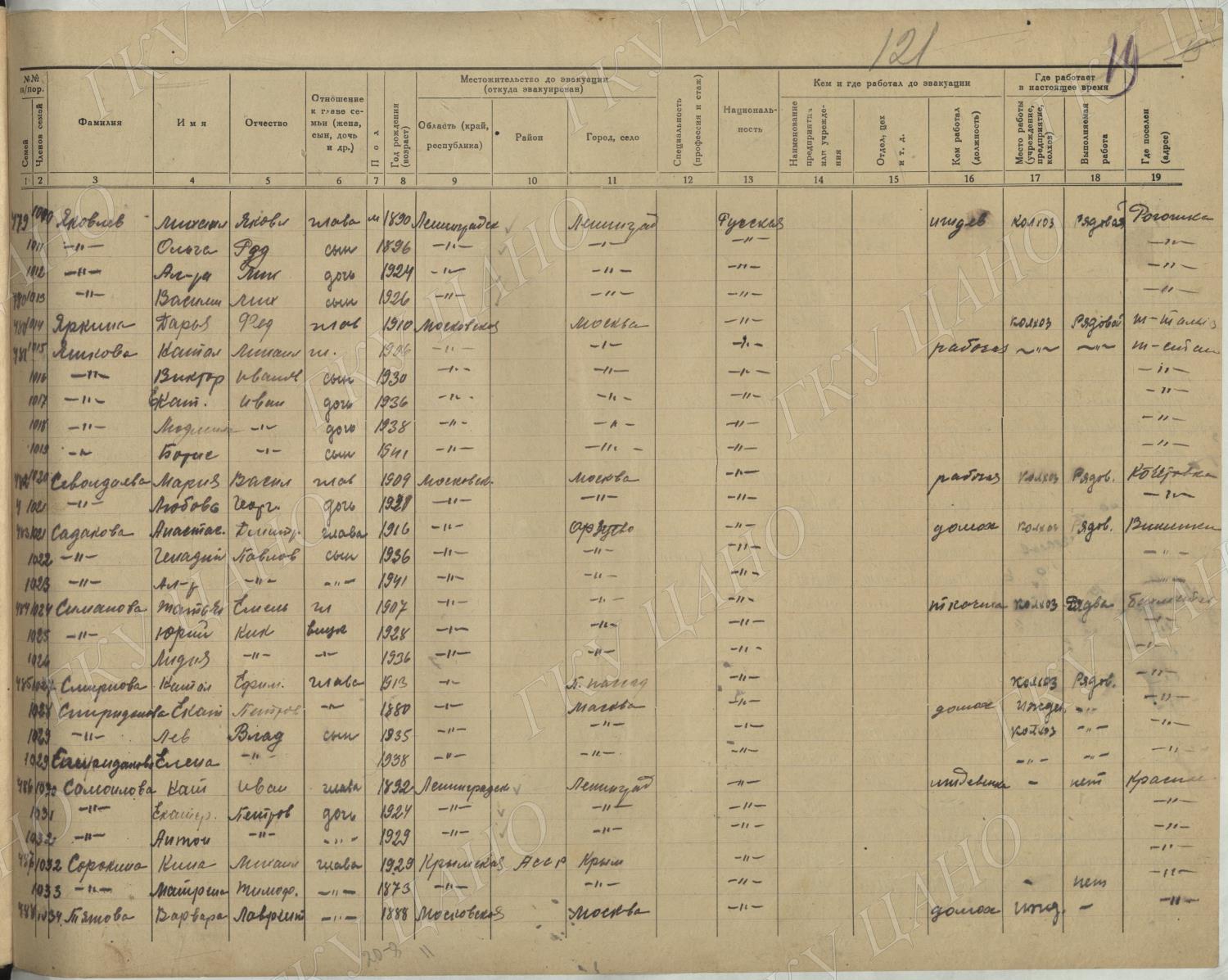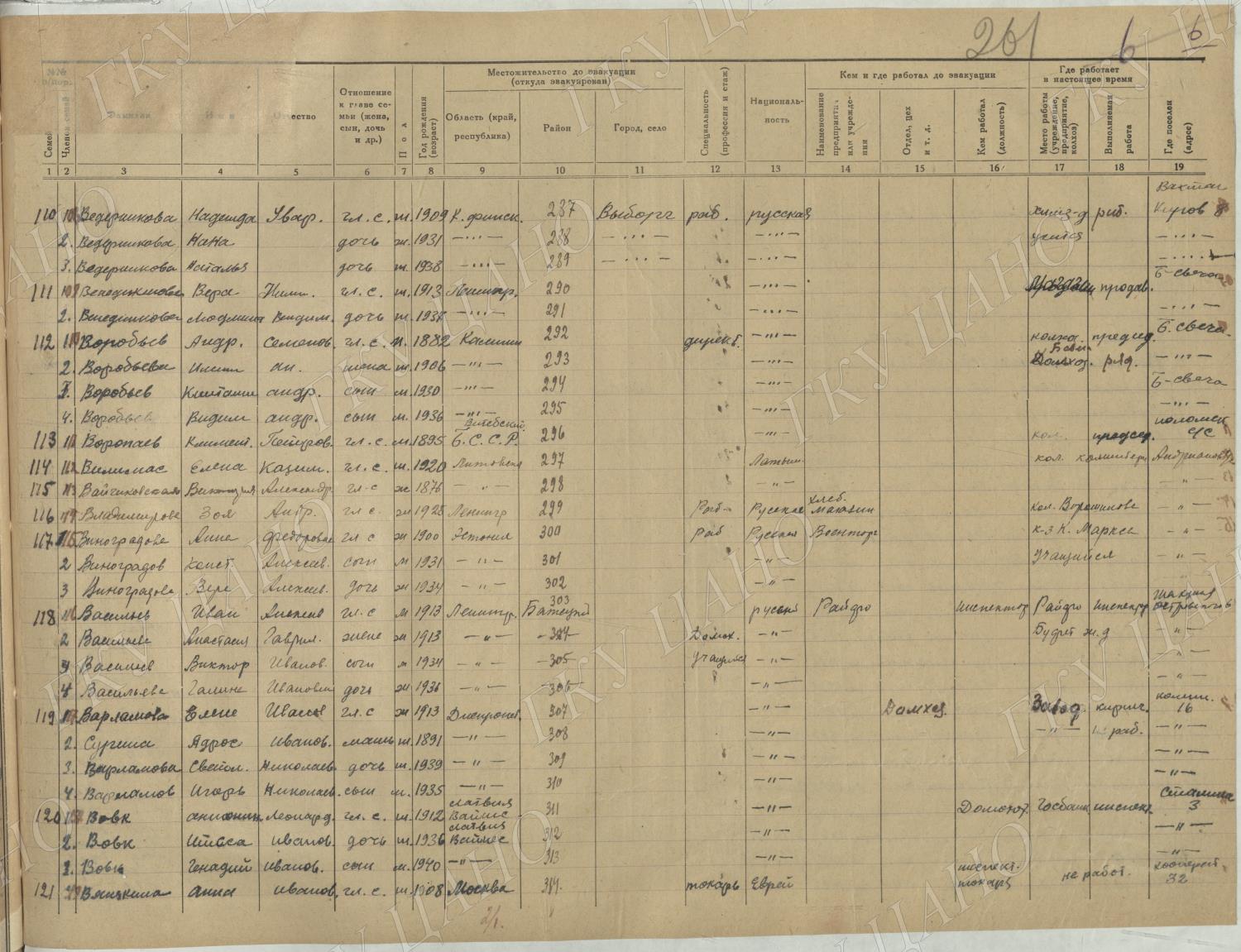 Ф. Р-5344. Оп. 1. Д. 78. Списки эвакуированных граждан, размещенных в городах и районах Горьковской области (Салганский, Сергачский, Сосновский, Теплостанский, Тоншаевский, Чернухинский, Чкаловский, Шахунский, Шарангский районы). 1 июня — 16 октября 1943