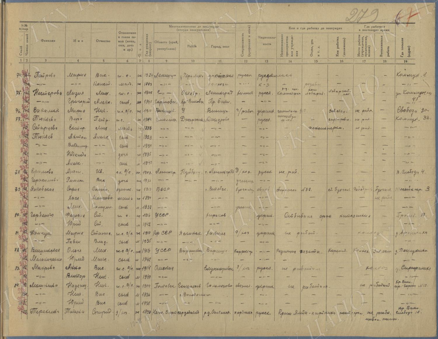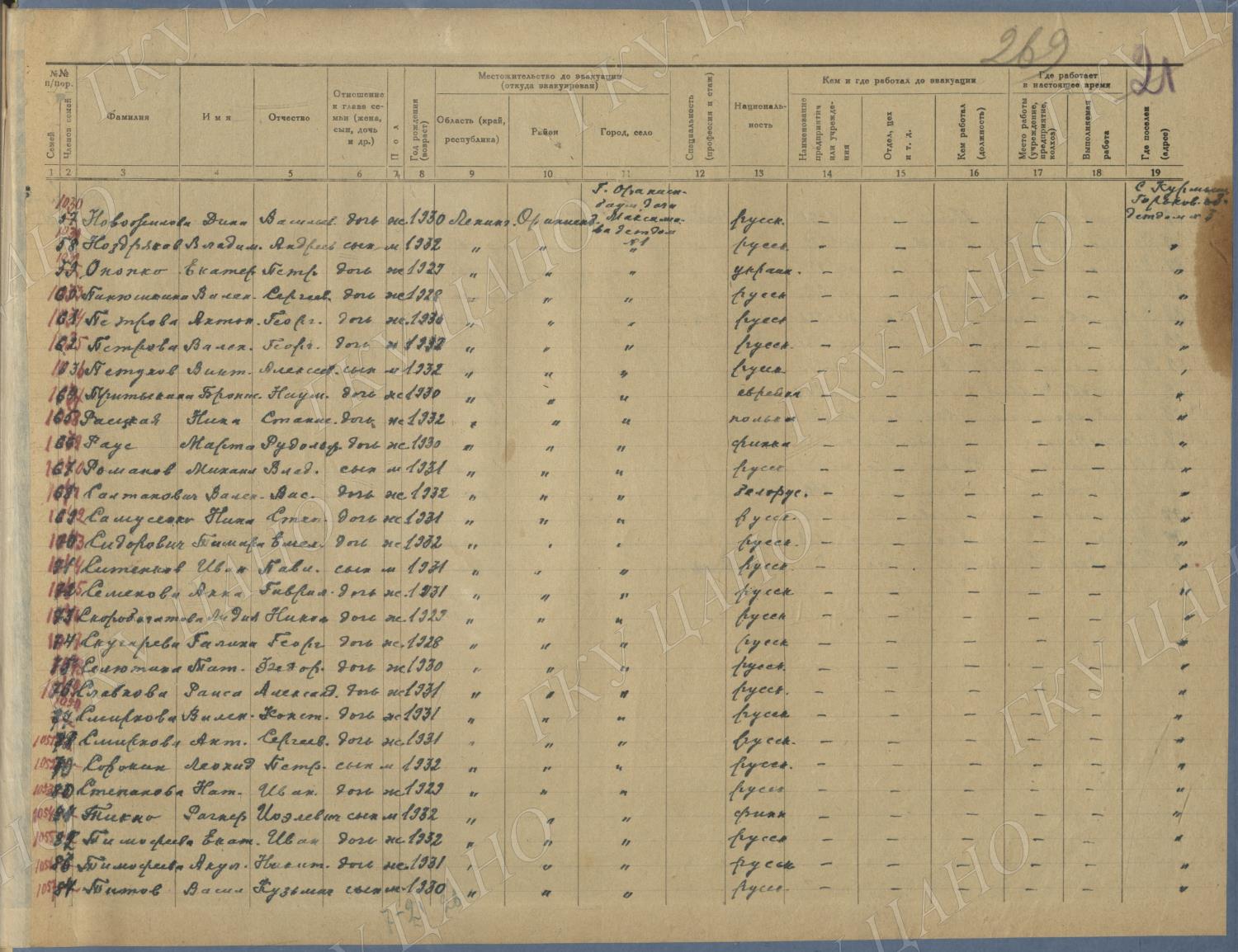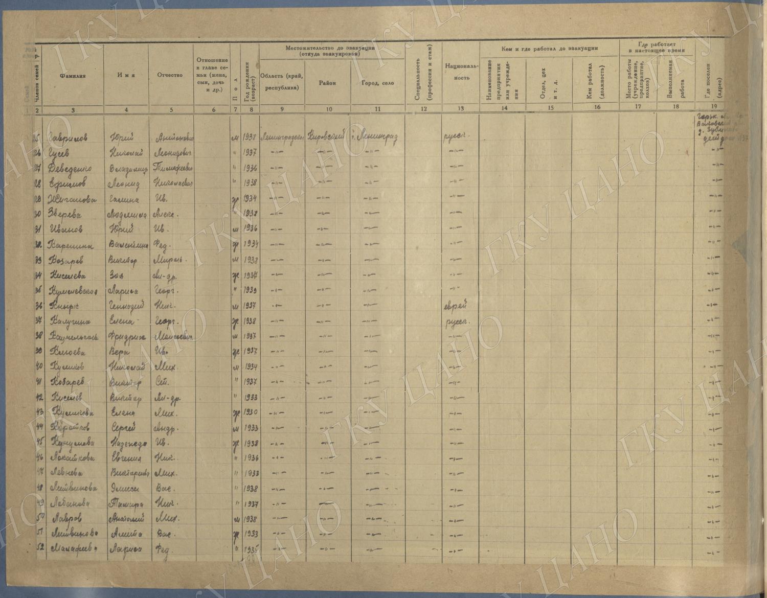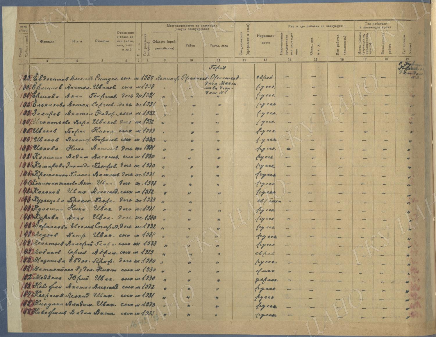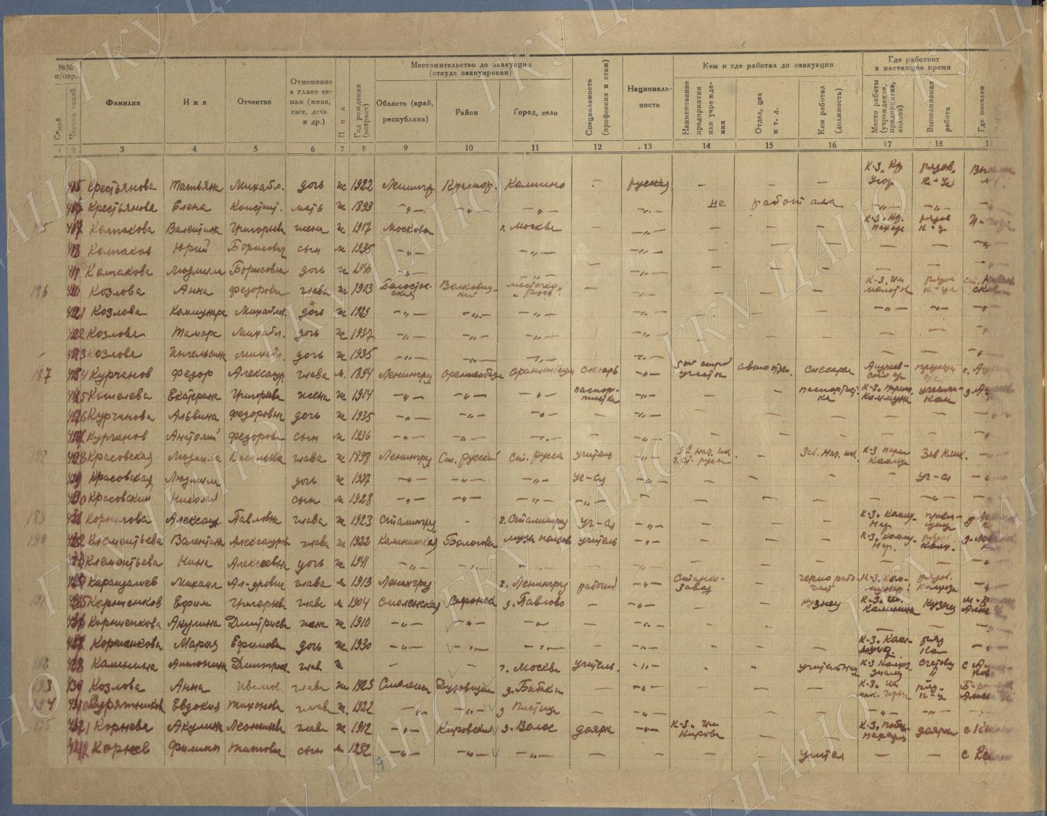 Ф. Р-5344. Оп. 1. Д. 81. Списки эвакуированных граждан, размещенных в городах и районах Горьковской области (районы на буквы «Г» — «К»). 15 июня — 6 августа 1943 г.