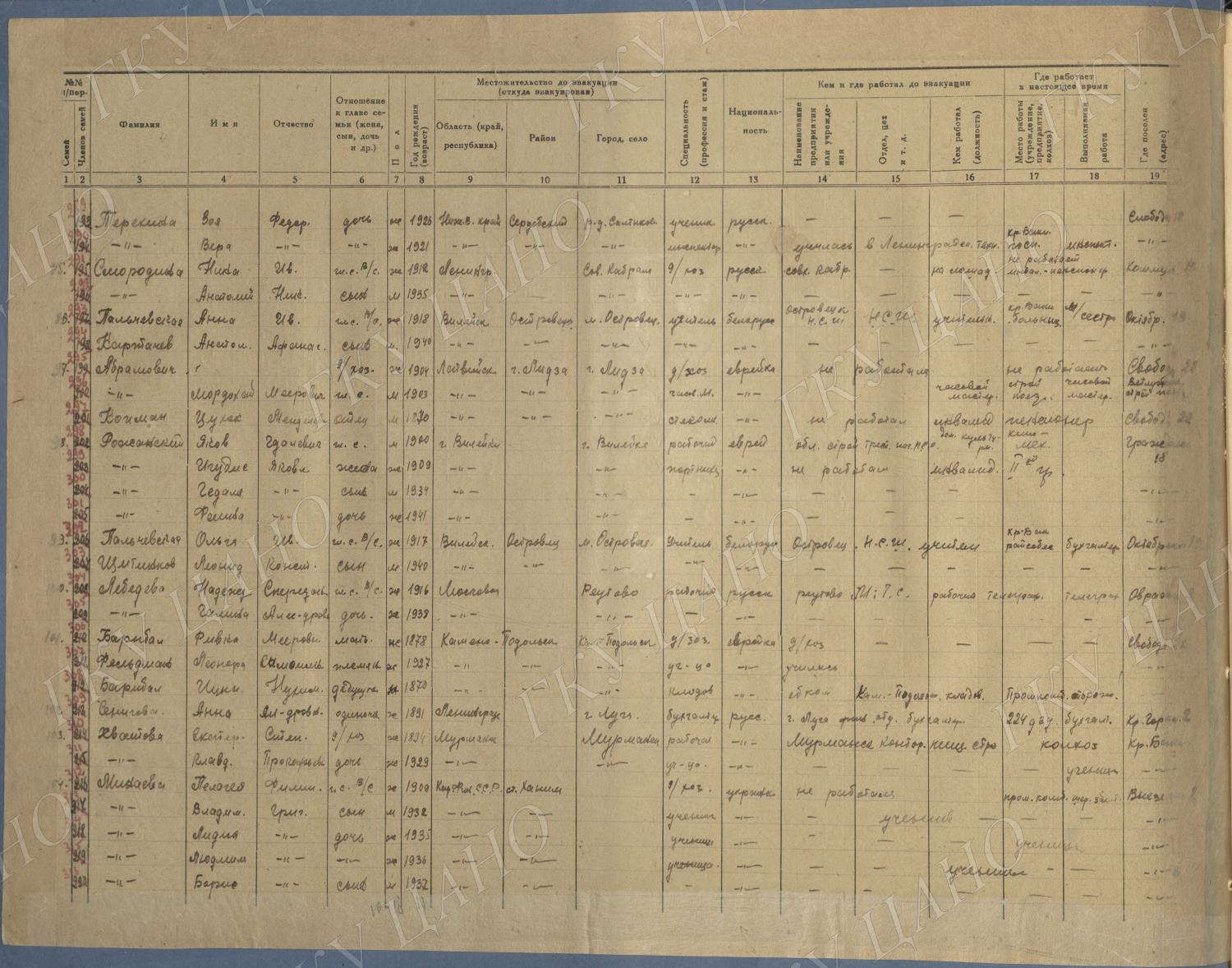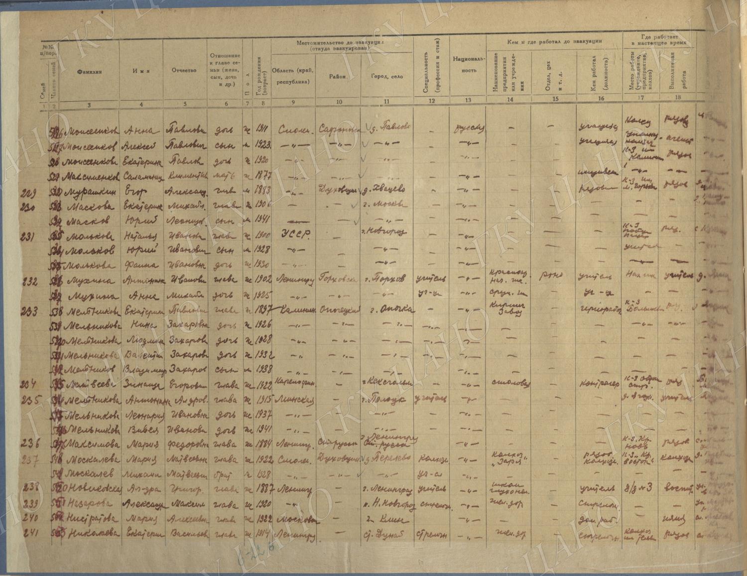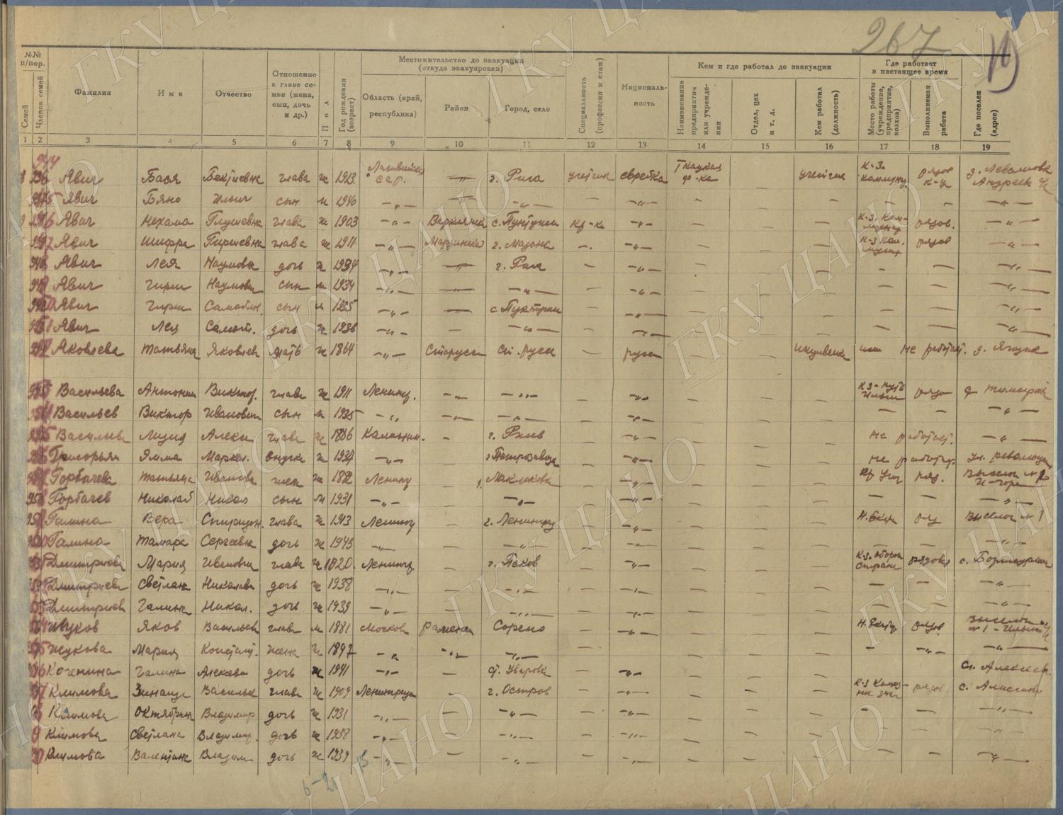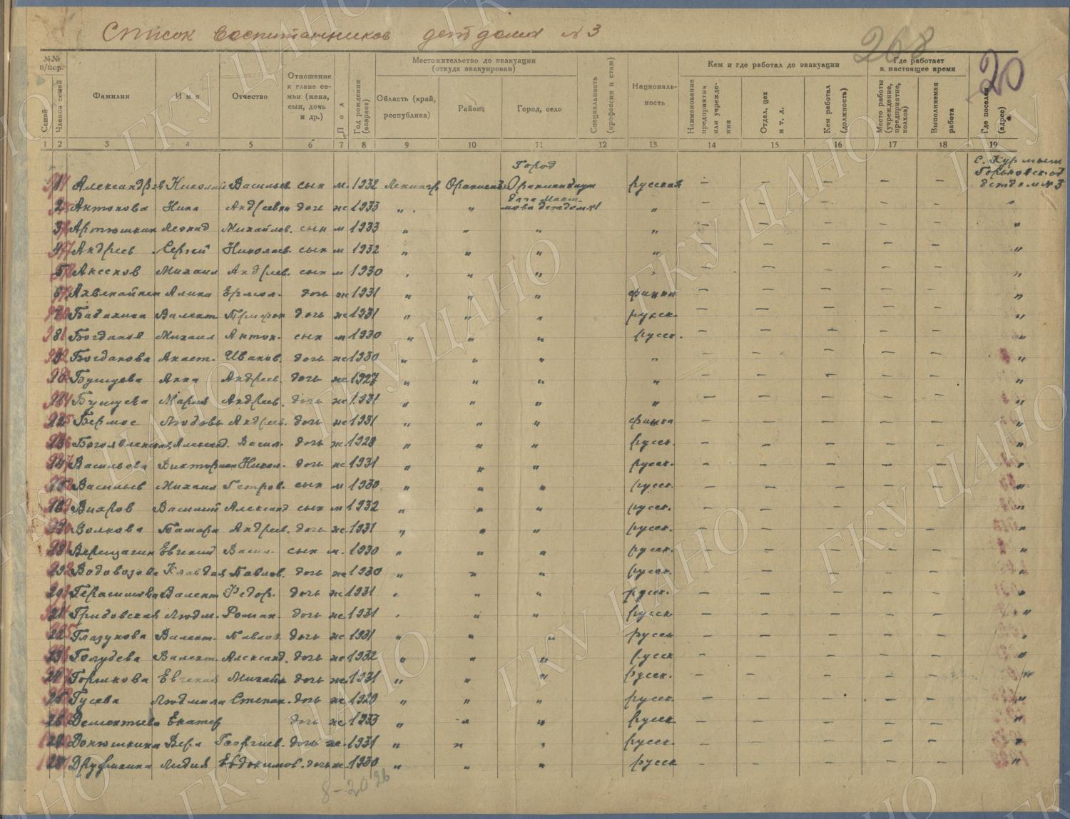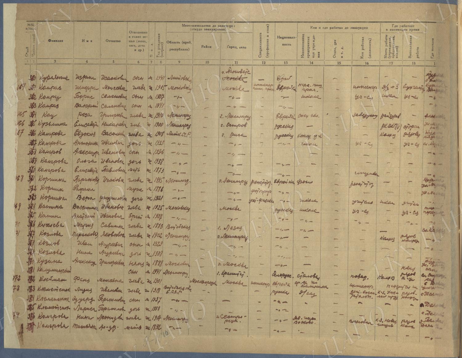 Ф. Р-5344. Оп. 1. Д. 81. Списки эвакуированных граждан, размещенных в городах и районах Горьковской области (районы на буквы «Г» — «К»). 15 июня — 6 августа 1943 г.