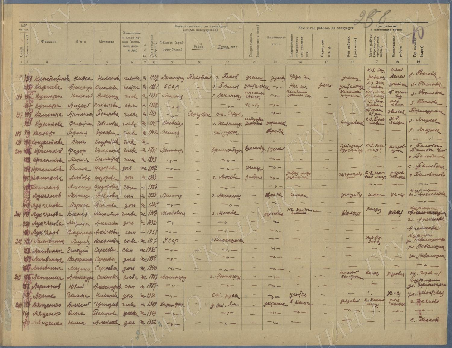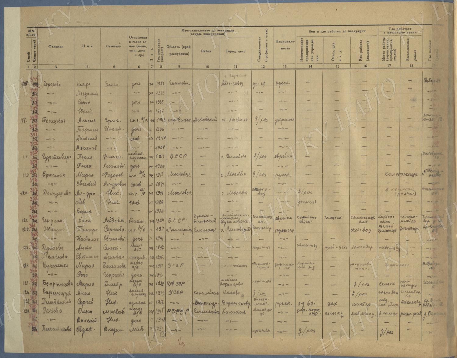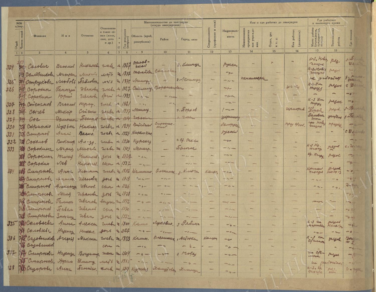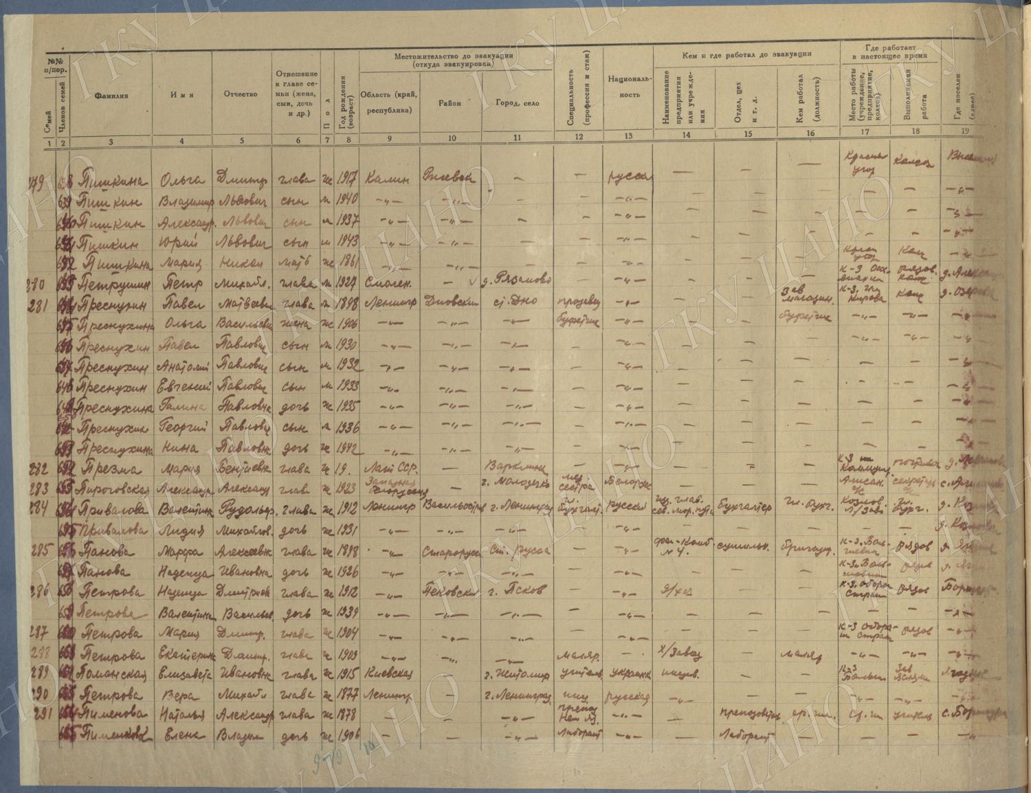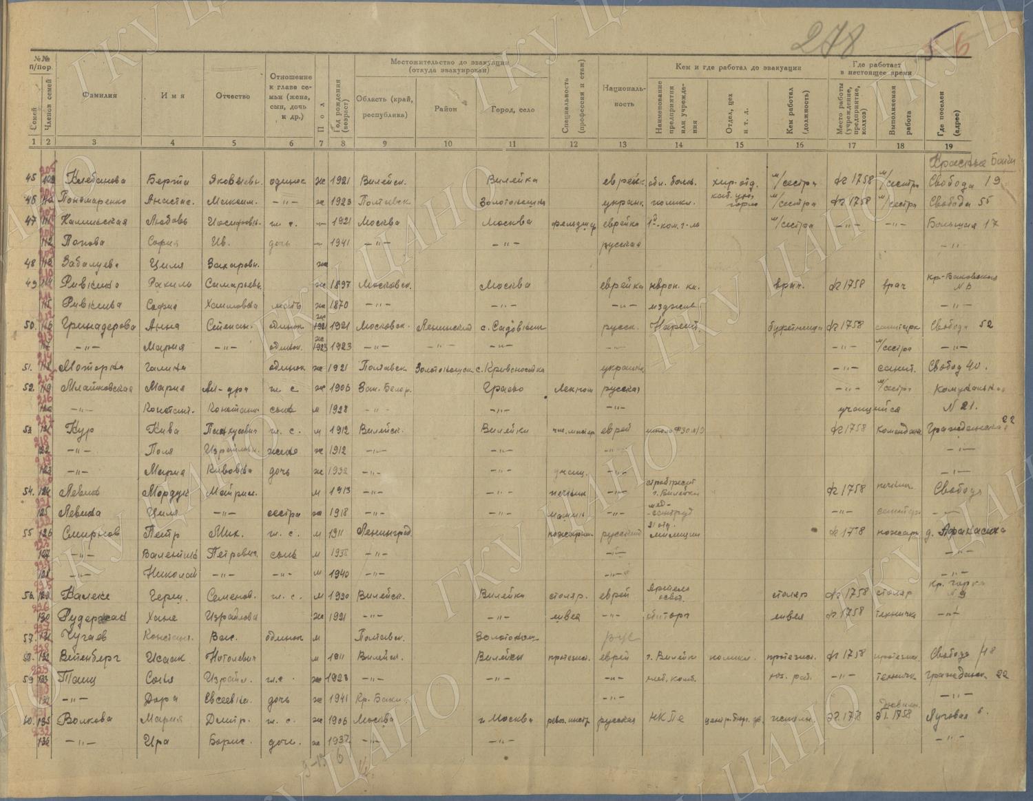 Ф. Р-5344. Оп. 1. Д. 81. Списки эвакуированных граждан, размещенных в городах и районах Горьковской области (районы на буквы «Г» — «К»). 15 июня — 6 августа 1943 г.