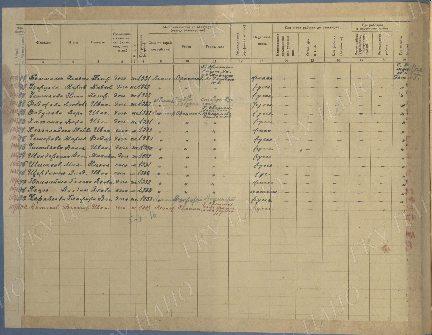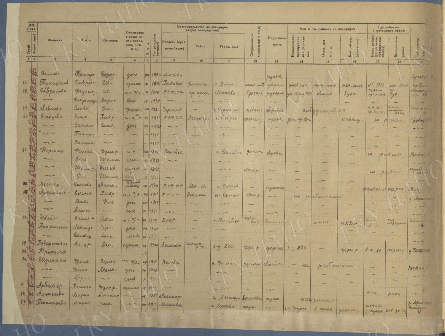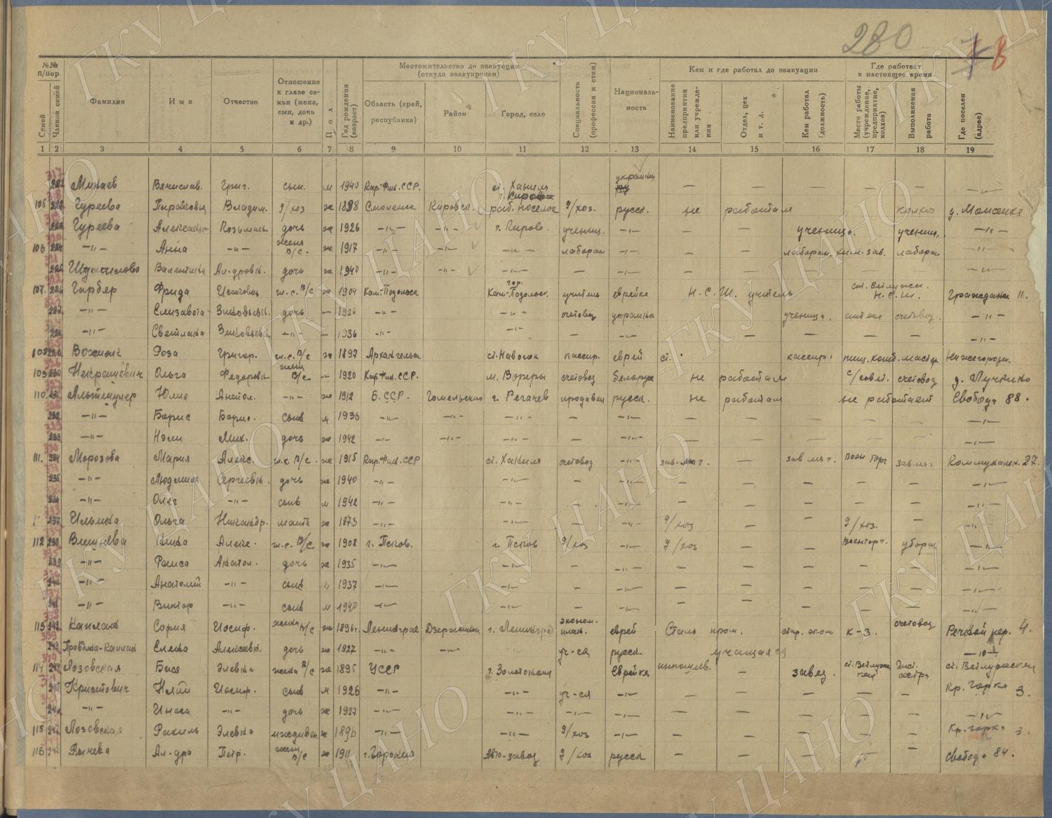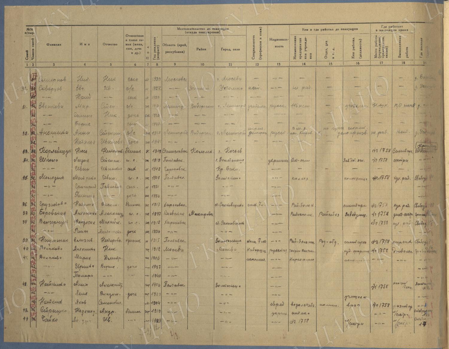 Ф. Р-5344. Оп. 1. Д. 81. Списки эвакуированных граждан, размещенных в городах и районах Горьковской области (районы на буквы «Г» — «К»). 15 июня — 6 августа 1943 г.