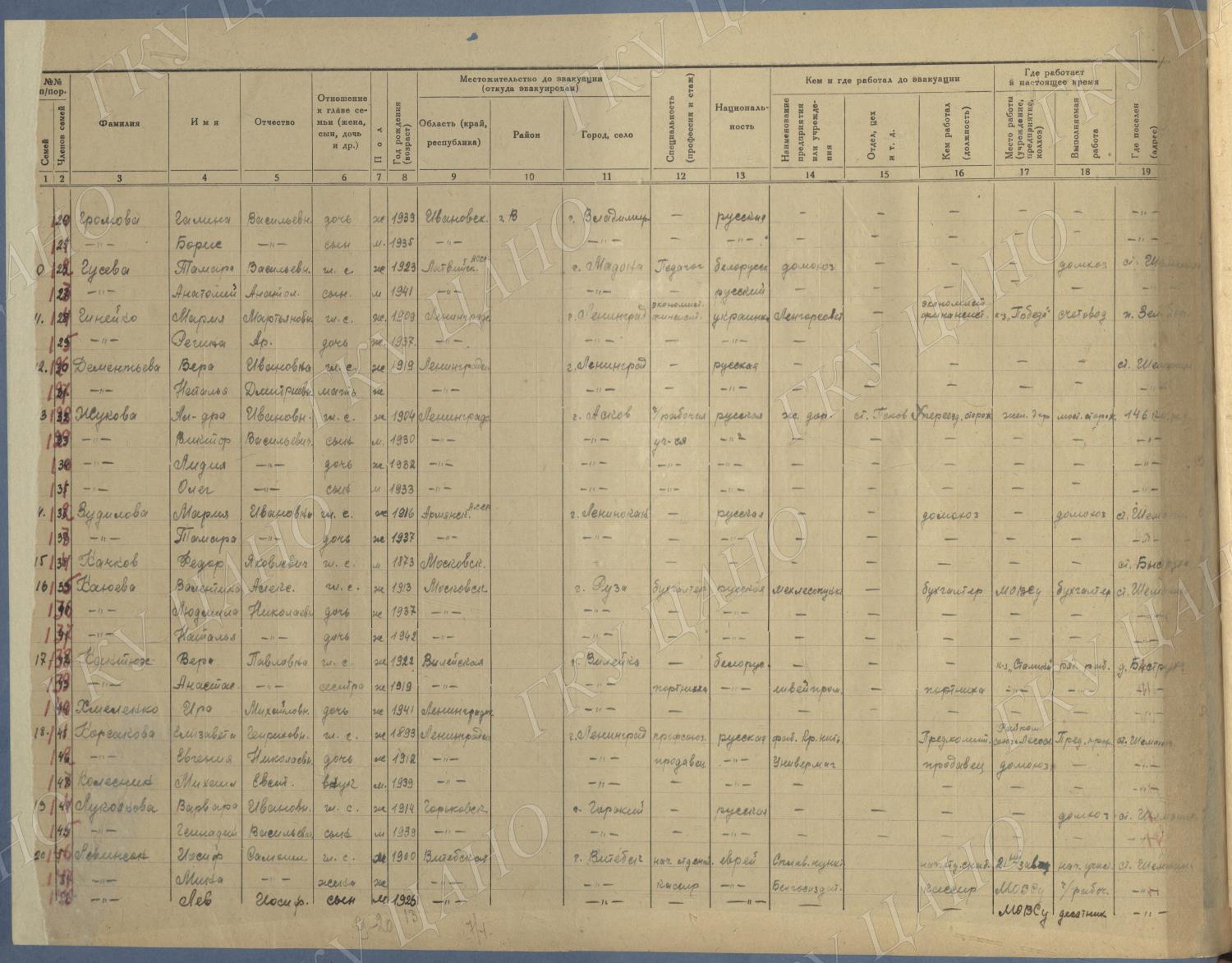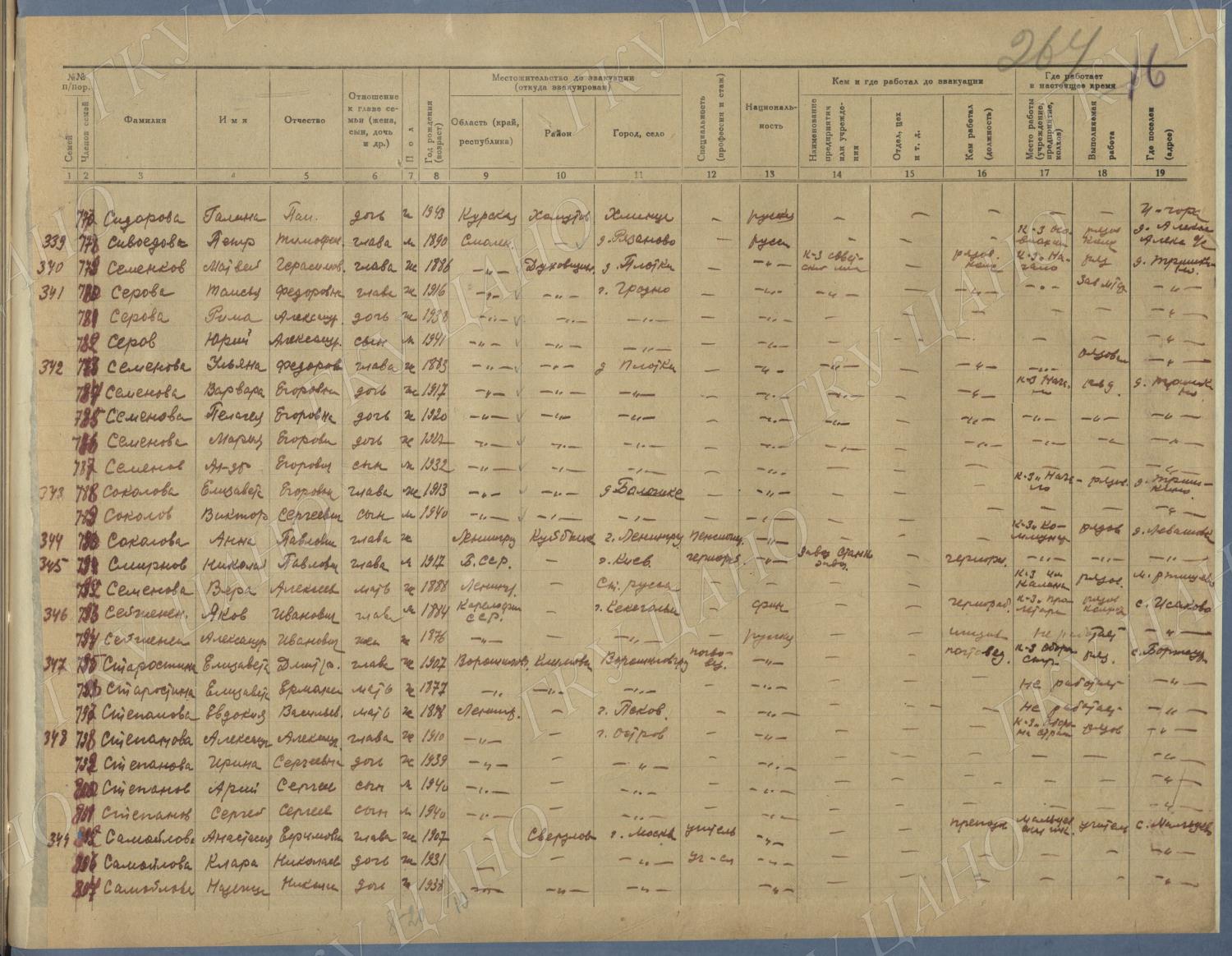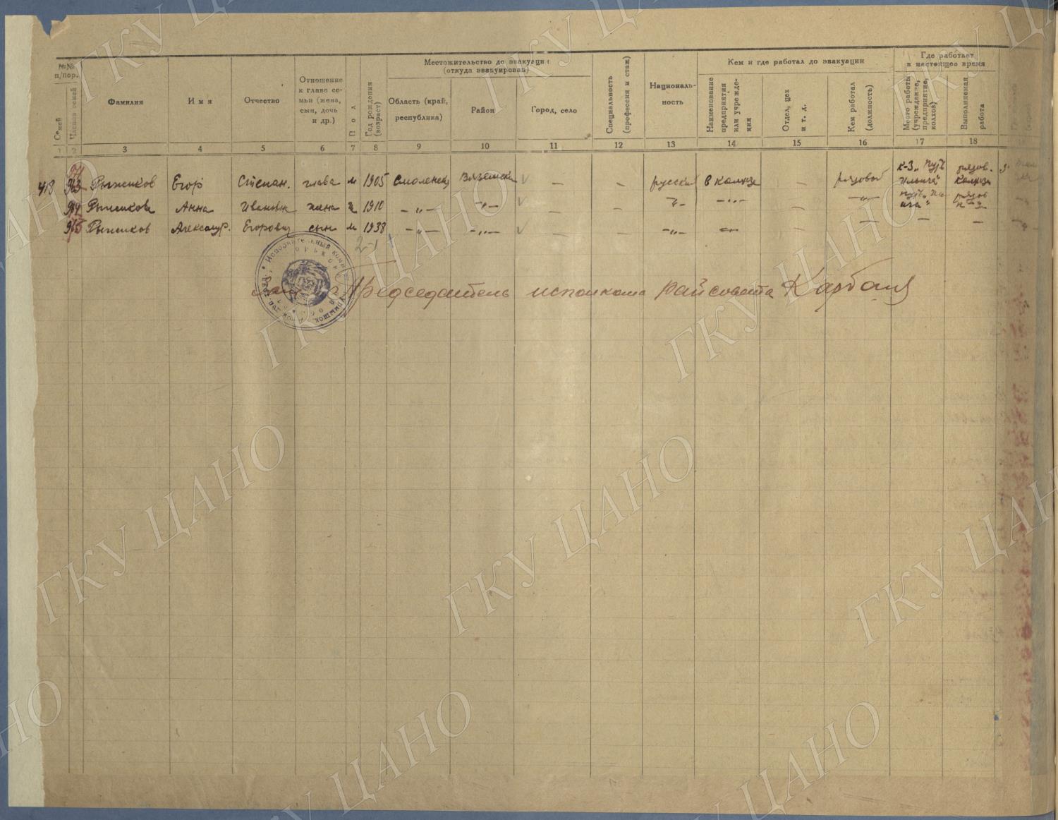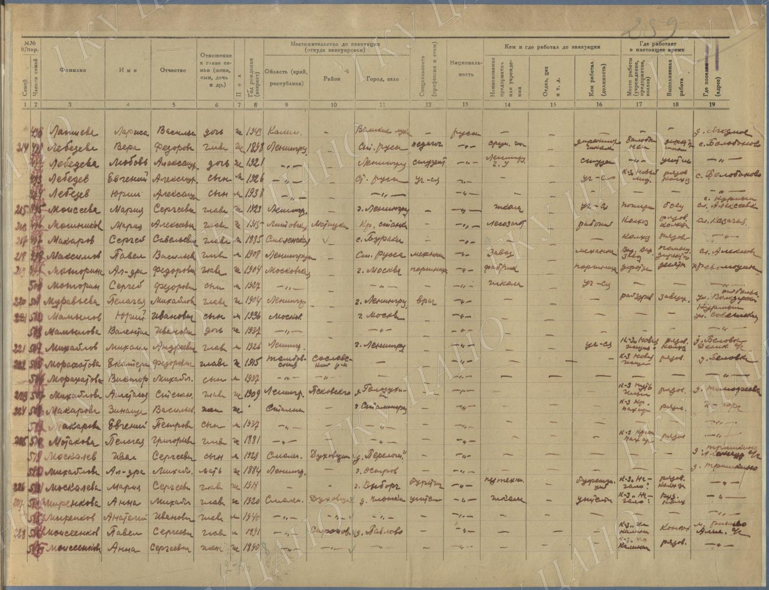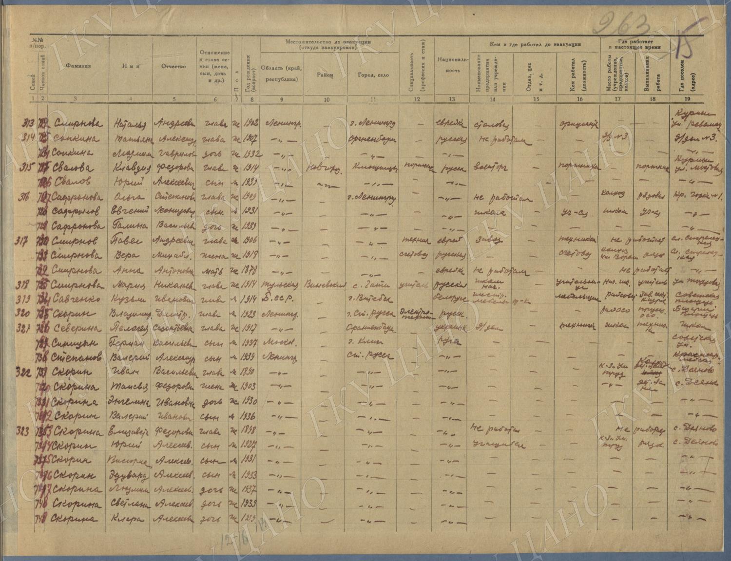 Ф. Р-5344. Оп. 1. Д. 81. Списки эвакуированных граждан, размещенных в городах и районах Горьковской области (районы на буквы «Г» — «К»). 15 июня — 6 августа 1943 г.