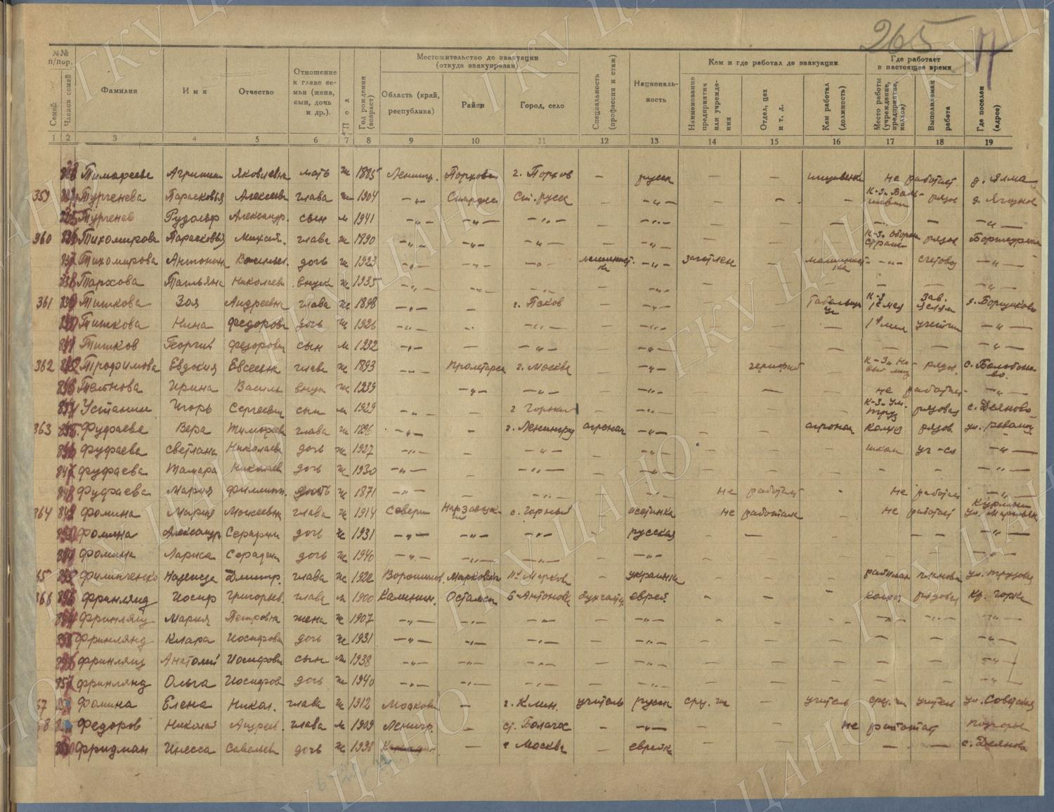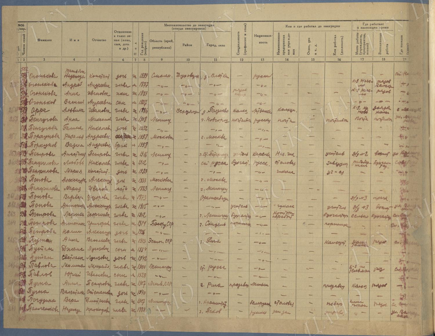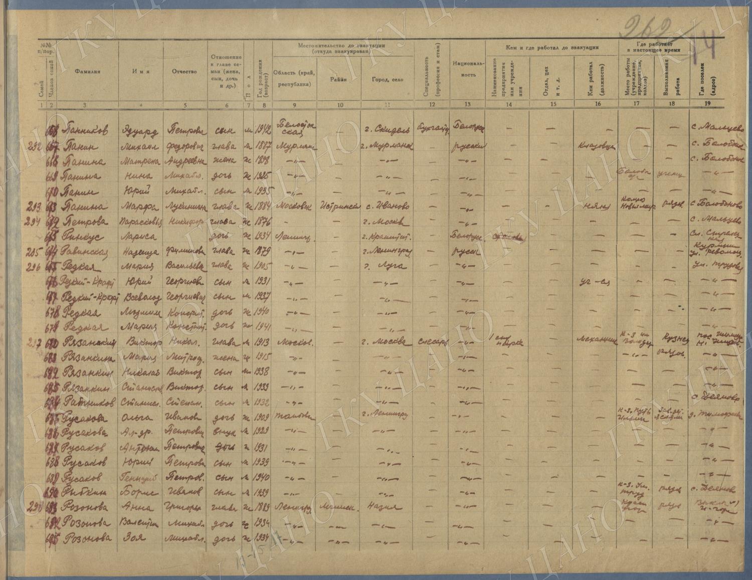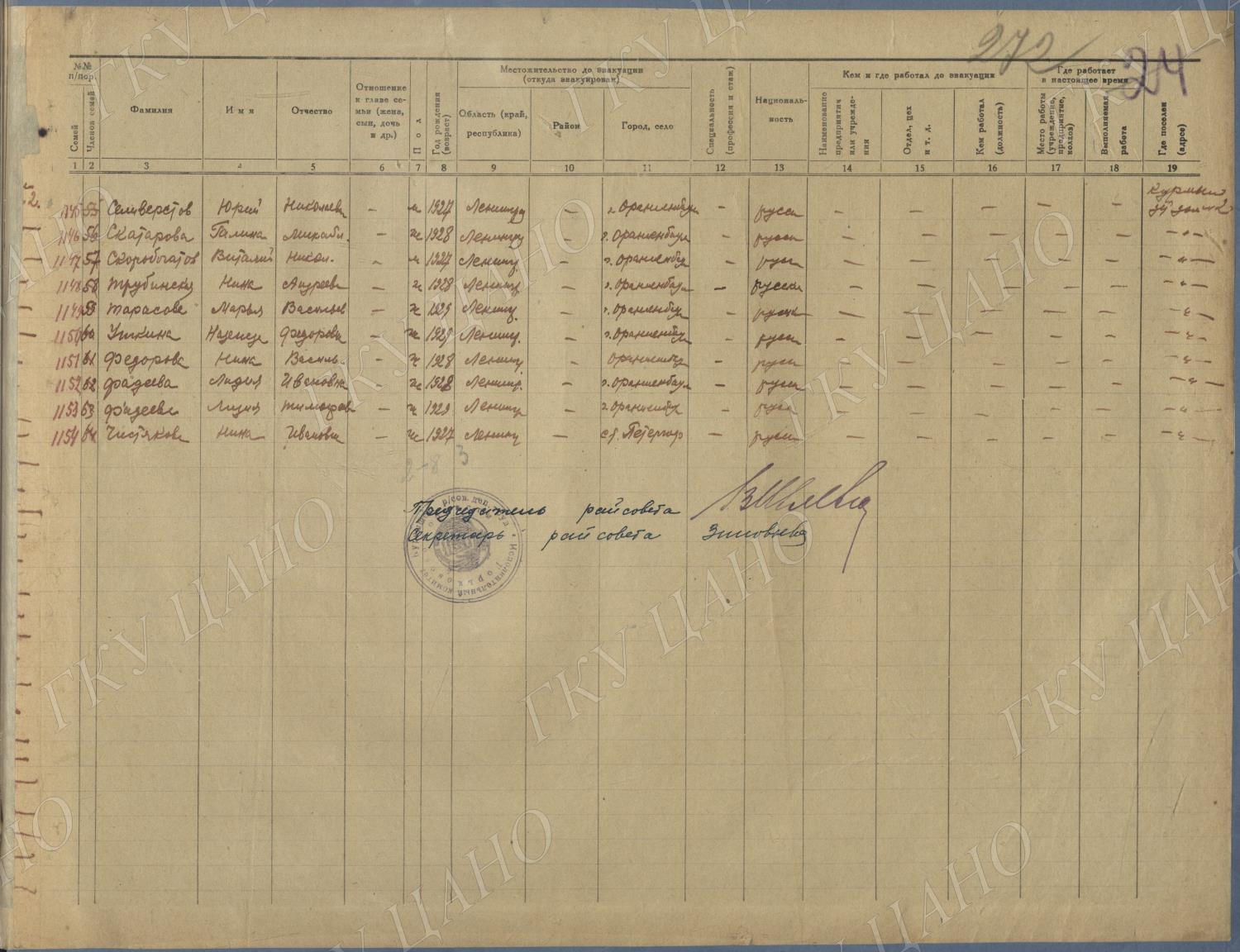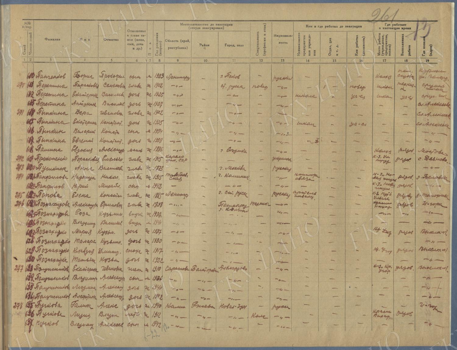 Ф. Р-5344. Оп. 1. Д. 81. Списки эвакуированных граждан, размещенных в городах и районах Горьковской области (районы на буквы «Г» — «К»). 15 июня — 6 августа 1943 г.
