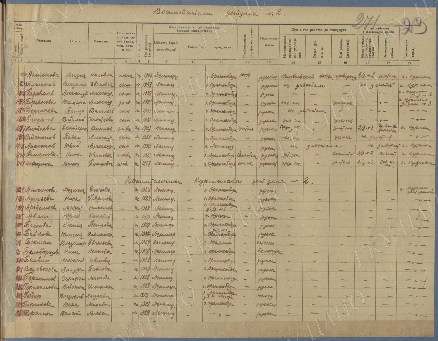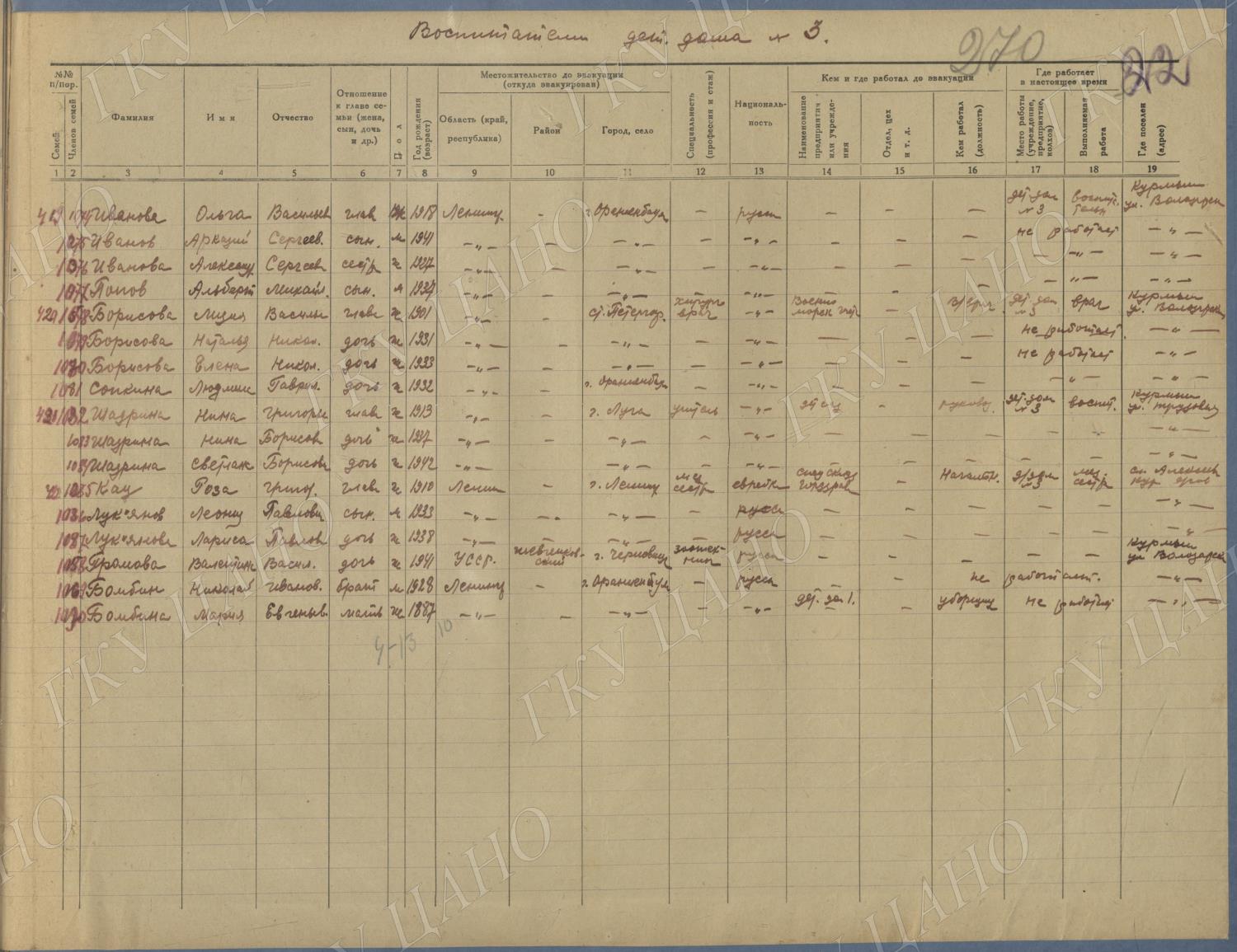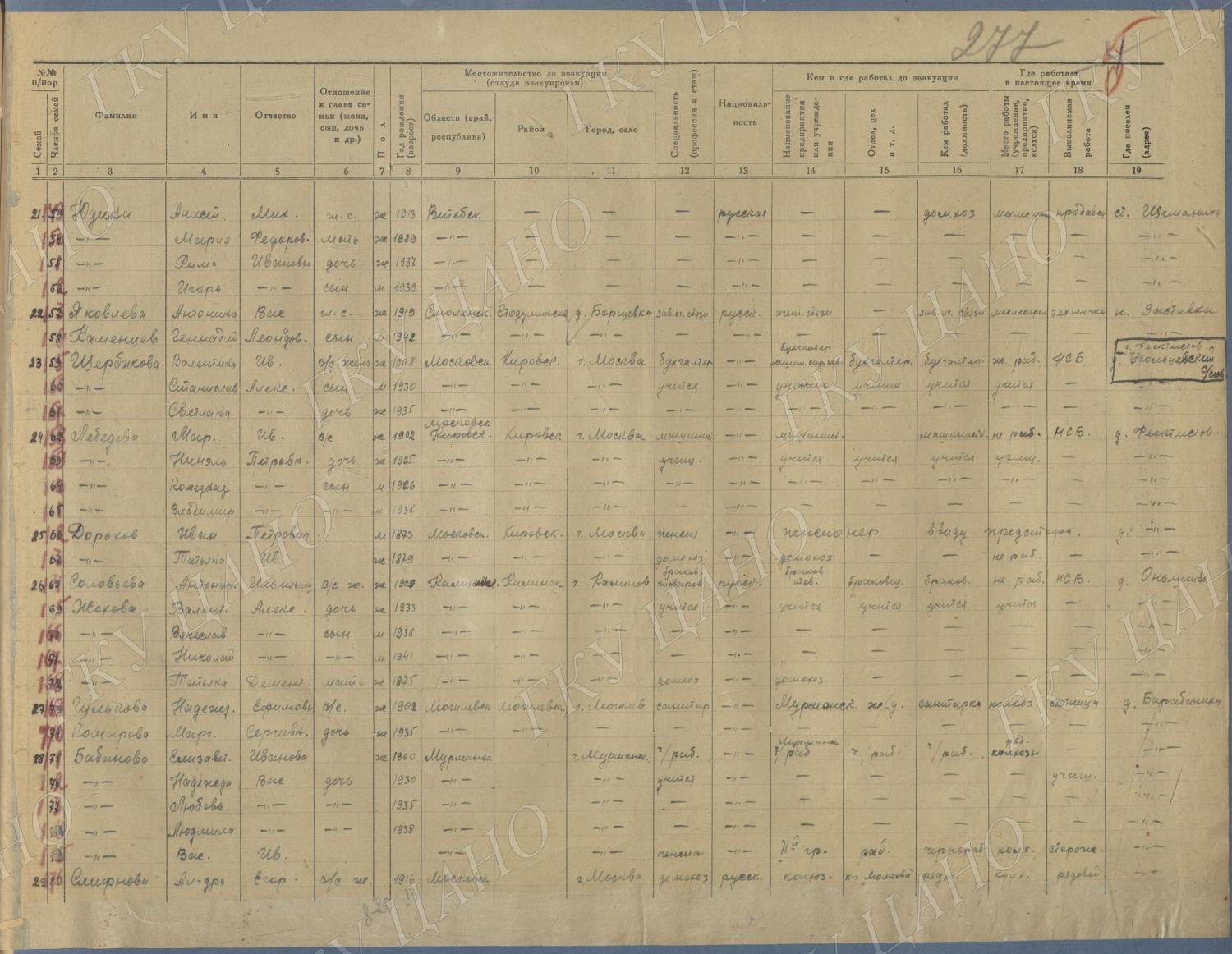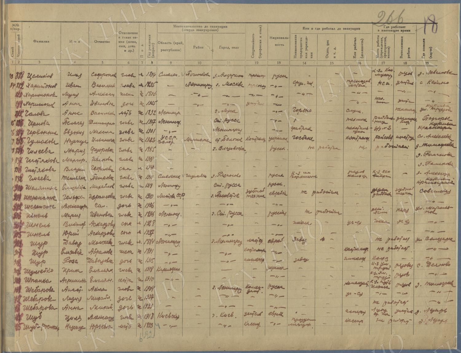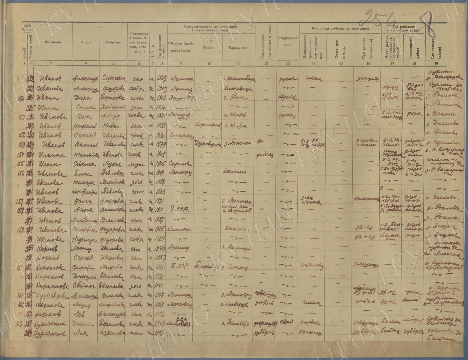 Ф. Р-5344. Оп. 1. Д. 81. Списки эвакуированных граждан, размещенных в городах и районах Горьковской области (районы на буквы «Г» — «К»). 15 июня — 6 августа 1943 г.