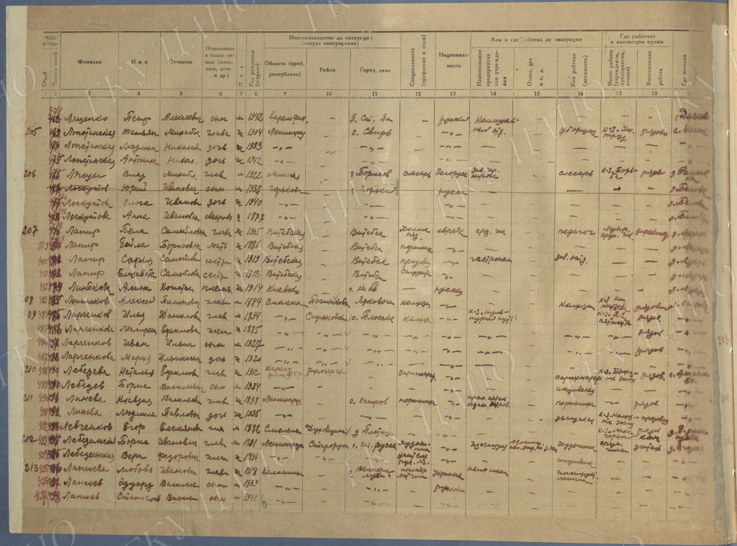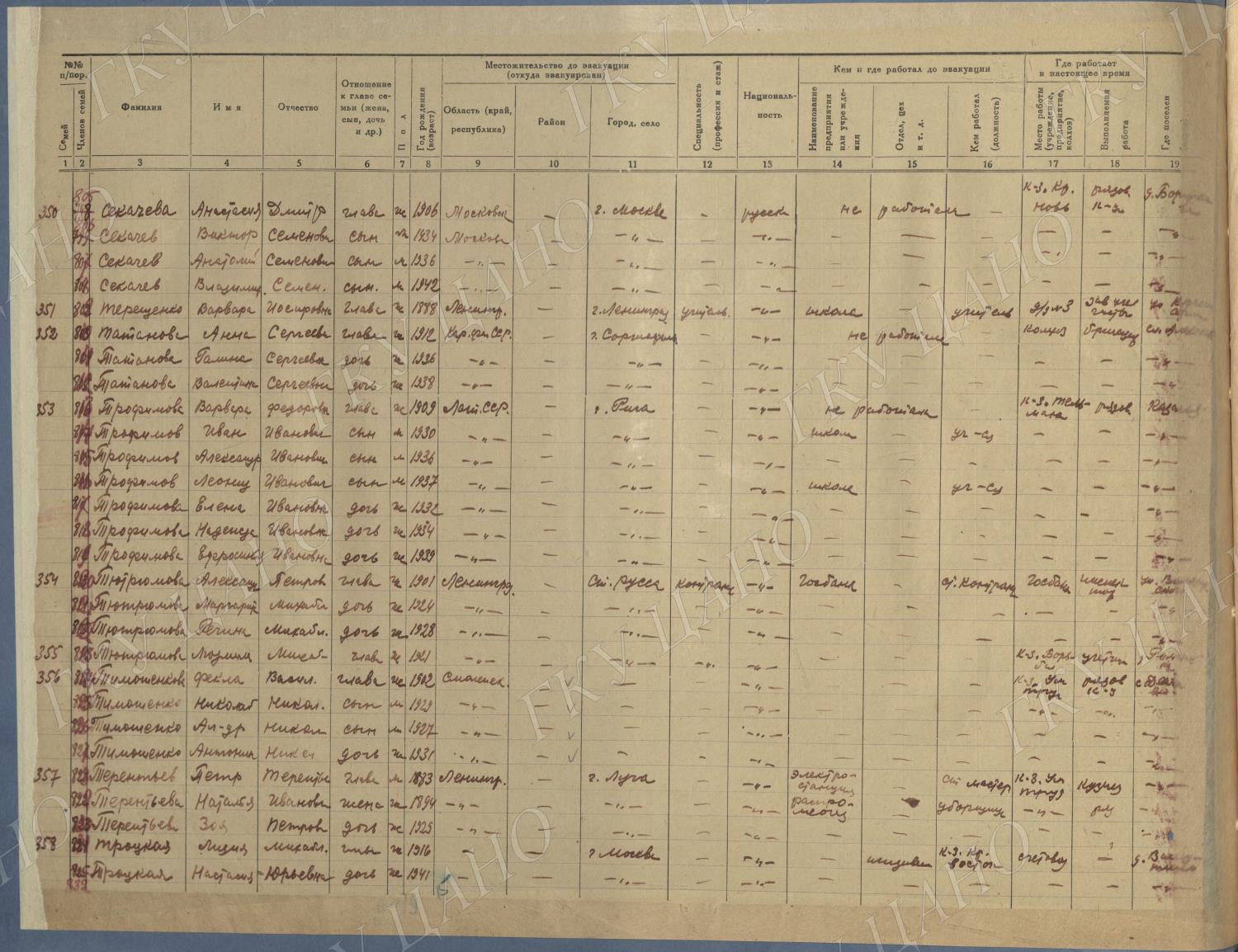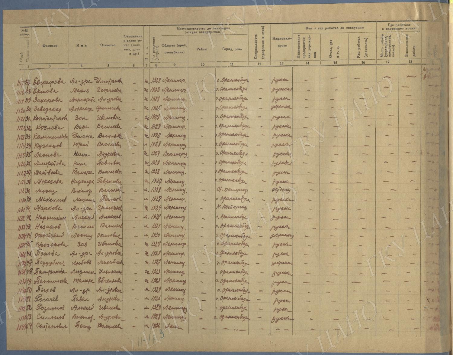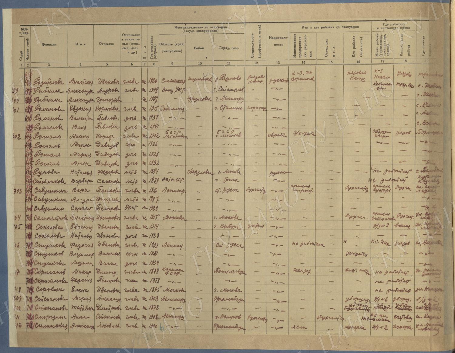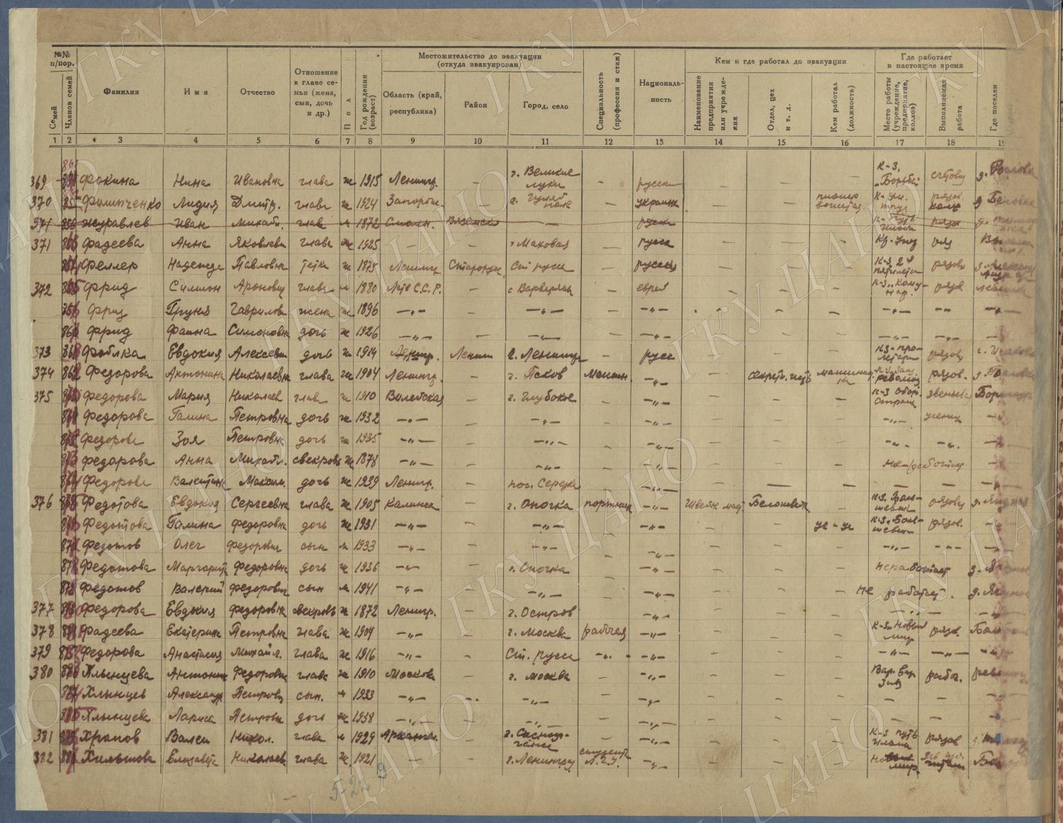 Ф. Р-5344. Оп. 1. Д. 81. Списки эвакуированных граждан, размещенных в городах и районах Горьковской области (районы на буквы «Г» — «К»). 15 июня — 6 августа 1943 г.