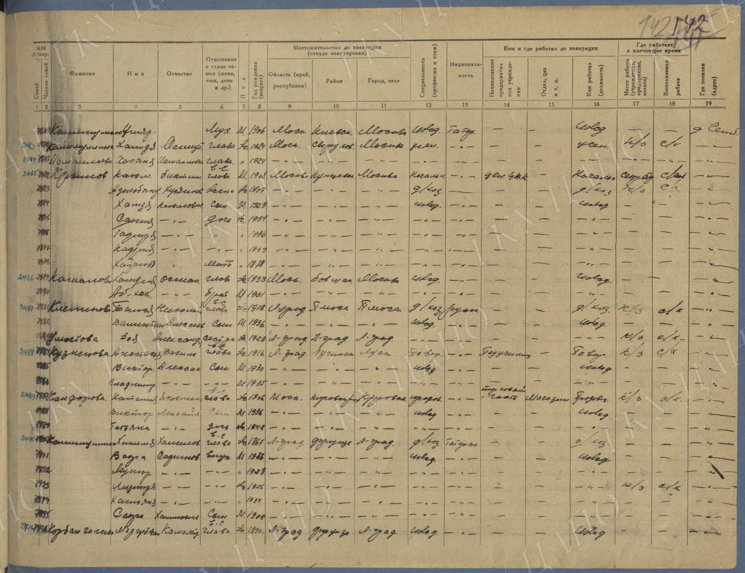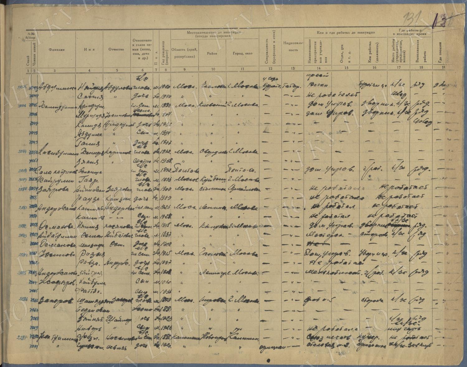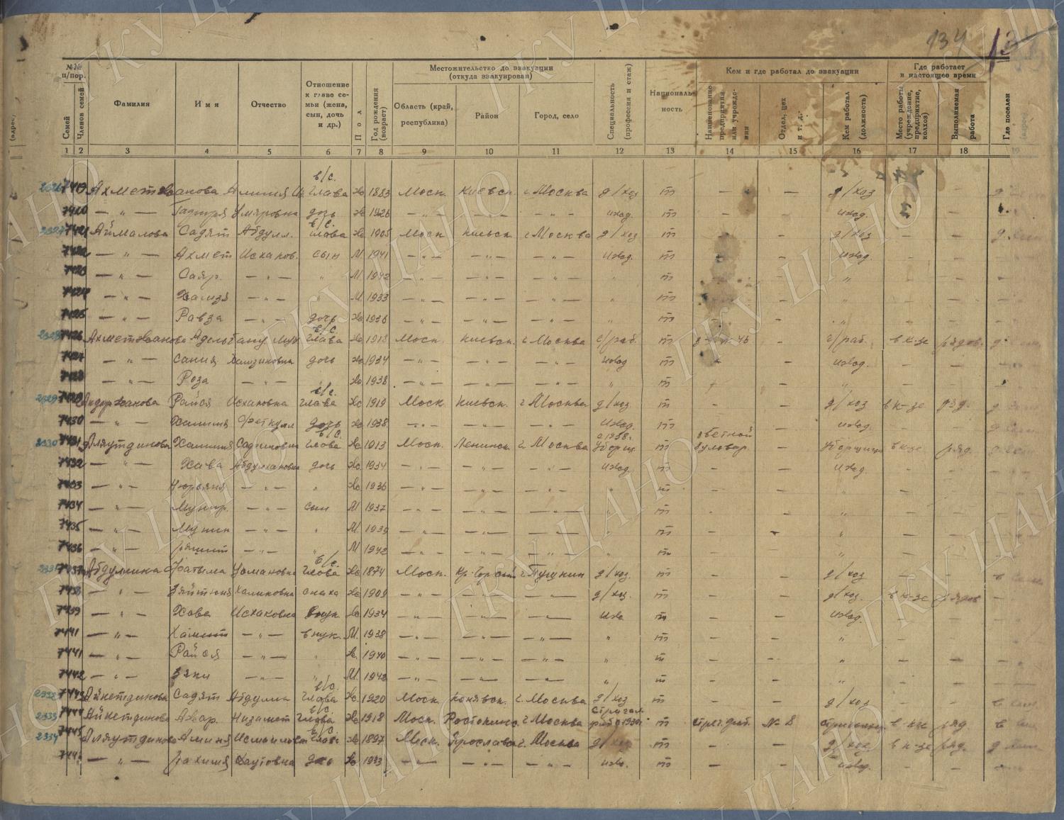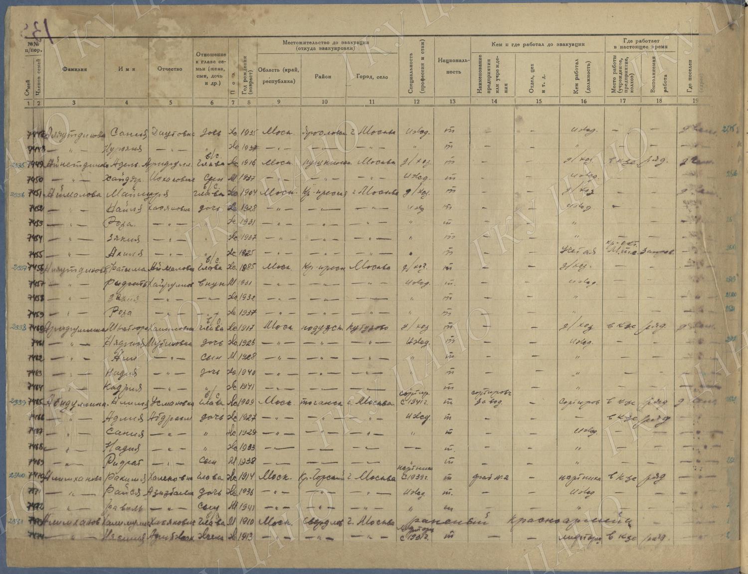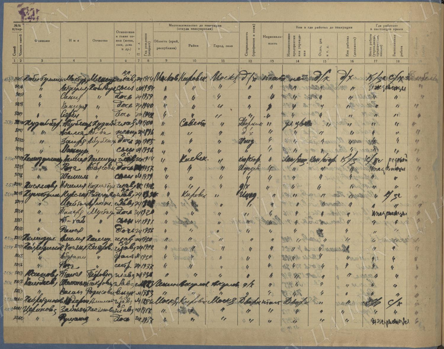 Ф. Р-5344. Оп. 1. Д. 83. Списки эвакуированных граждан, размещенных в городах и районах Горьковской области (районы на буквы «К» — «М»). 4 августа — 25 ноября 1943 г.