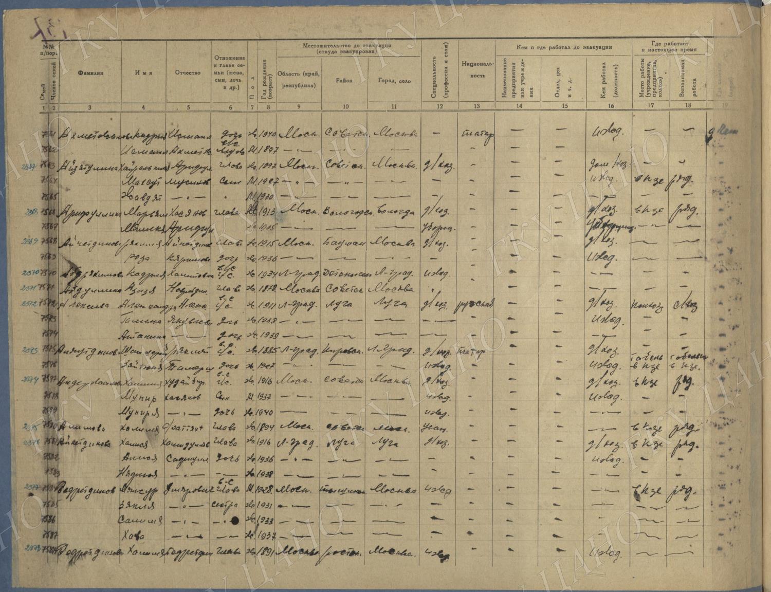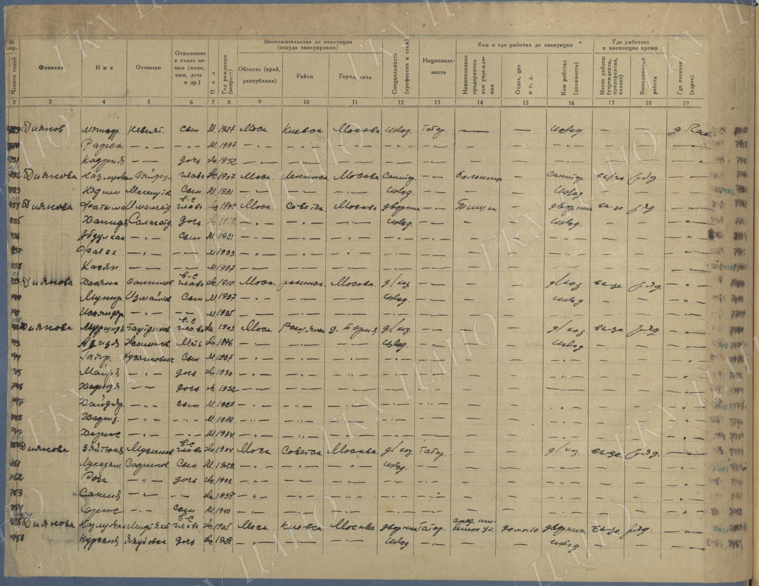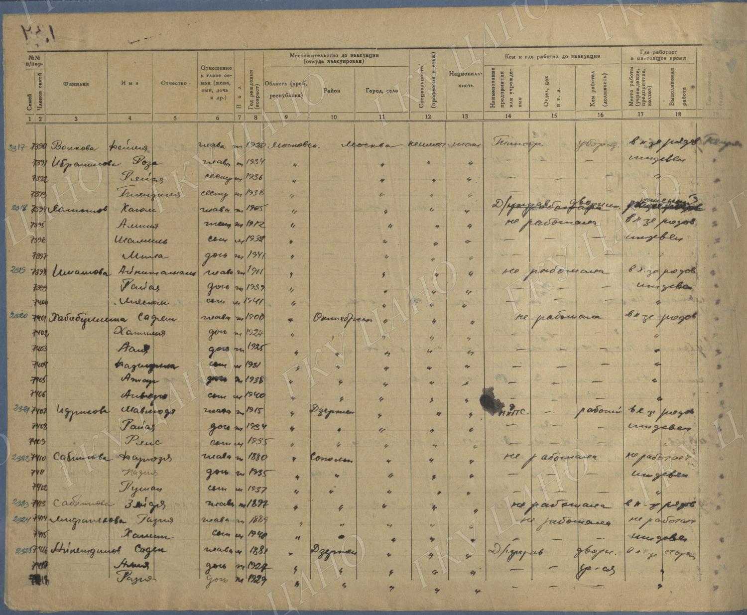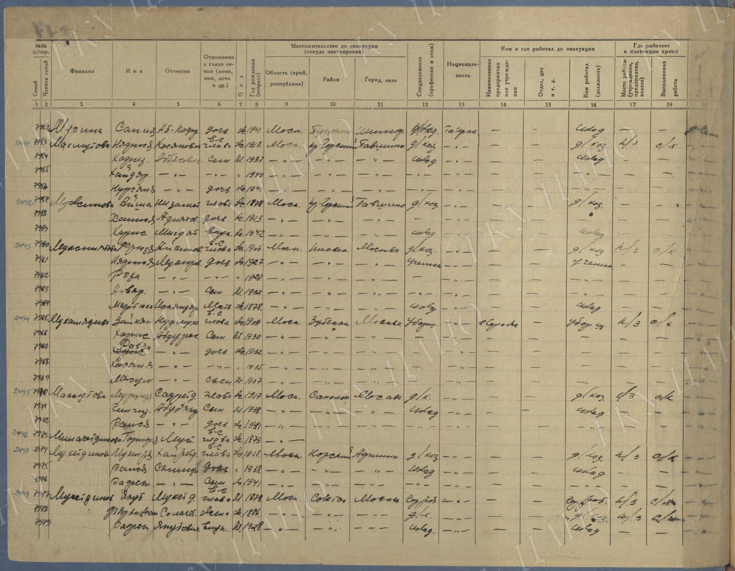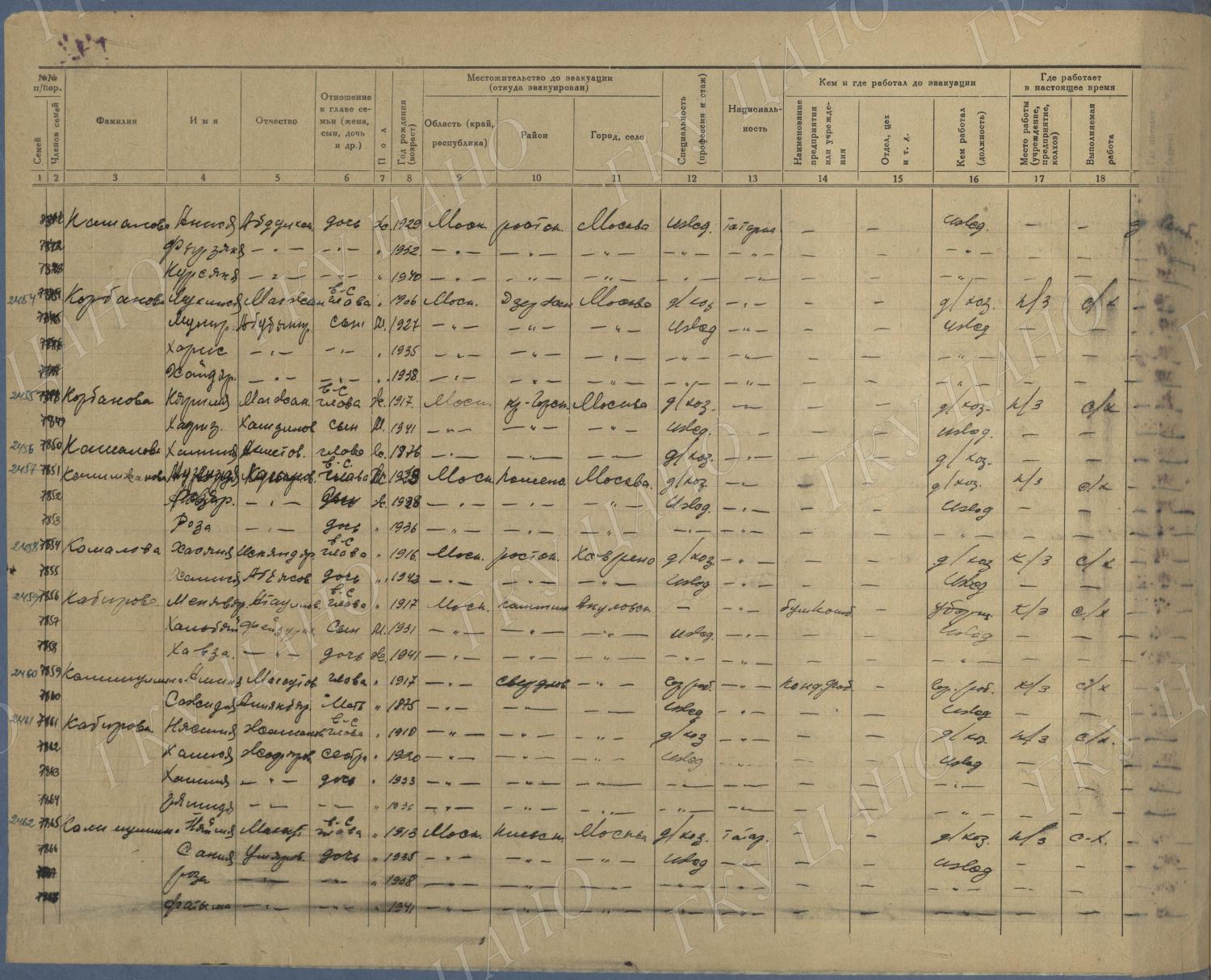 Ф. Р-5344. Оп. 1. Д. 83. Списки эвакуированных граждан, размещенных в городах и районах Горьковской области (районы на буквы «К» — «М»). 4 августа — 25 ноября 1943 г.