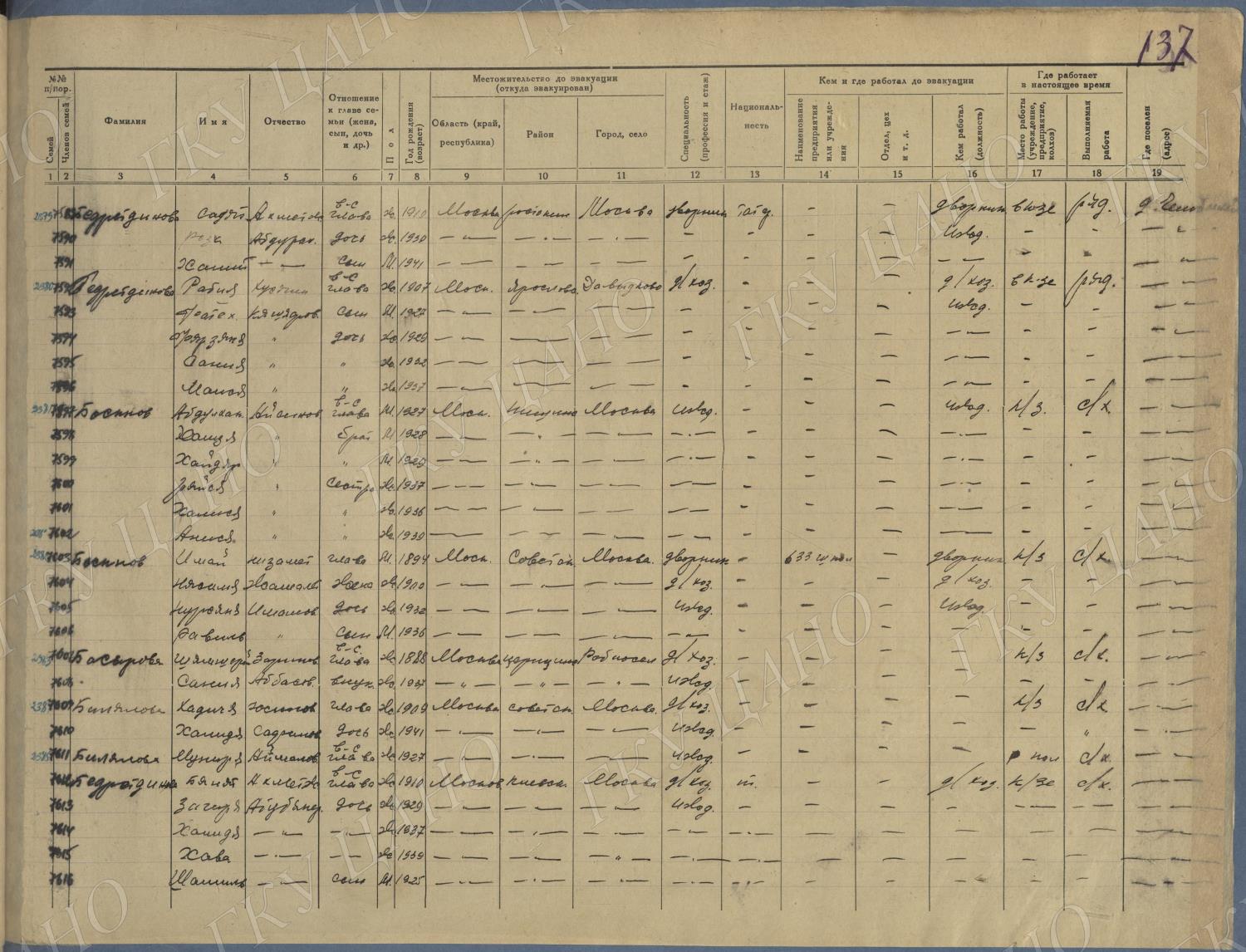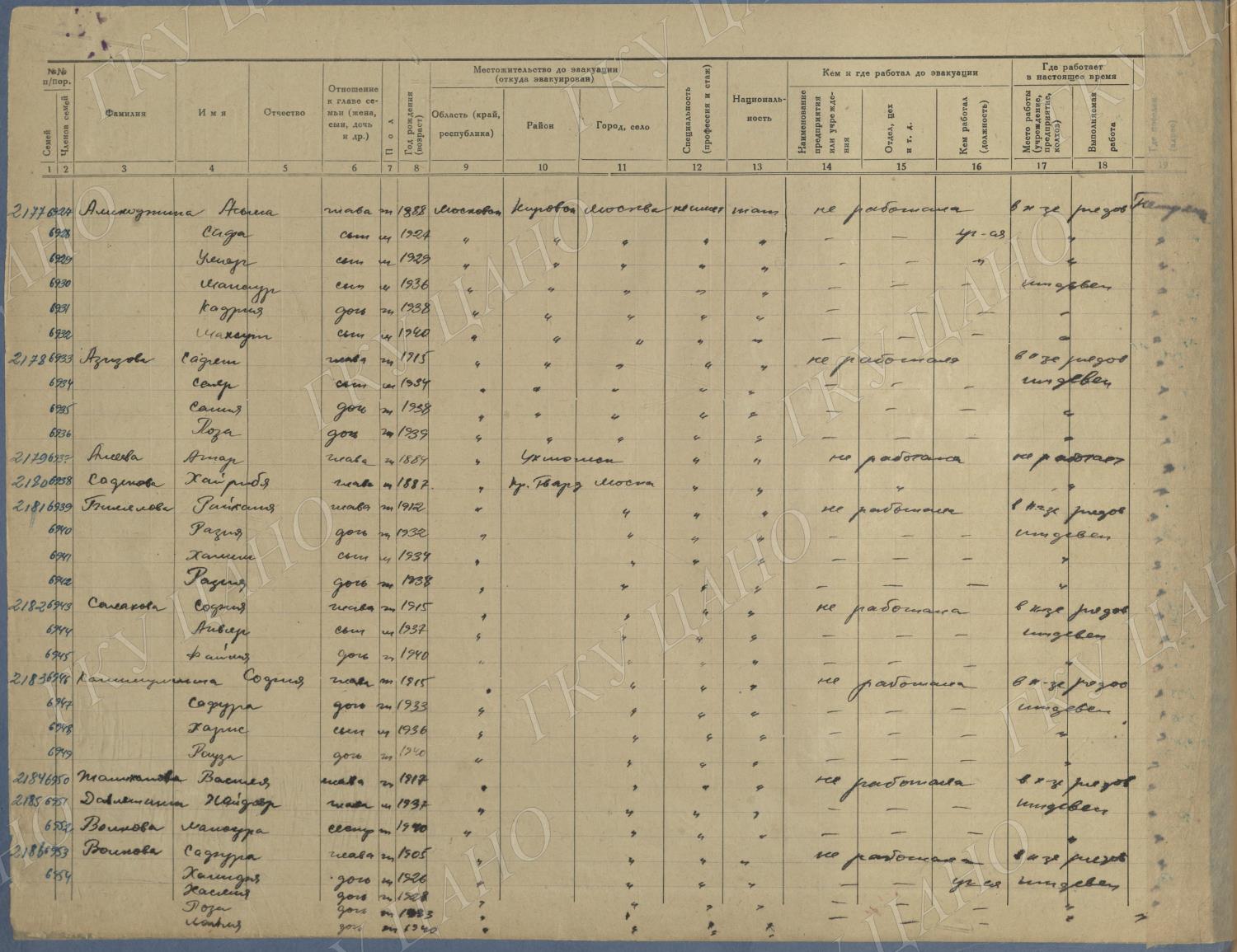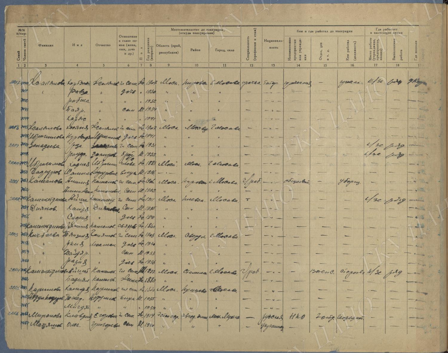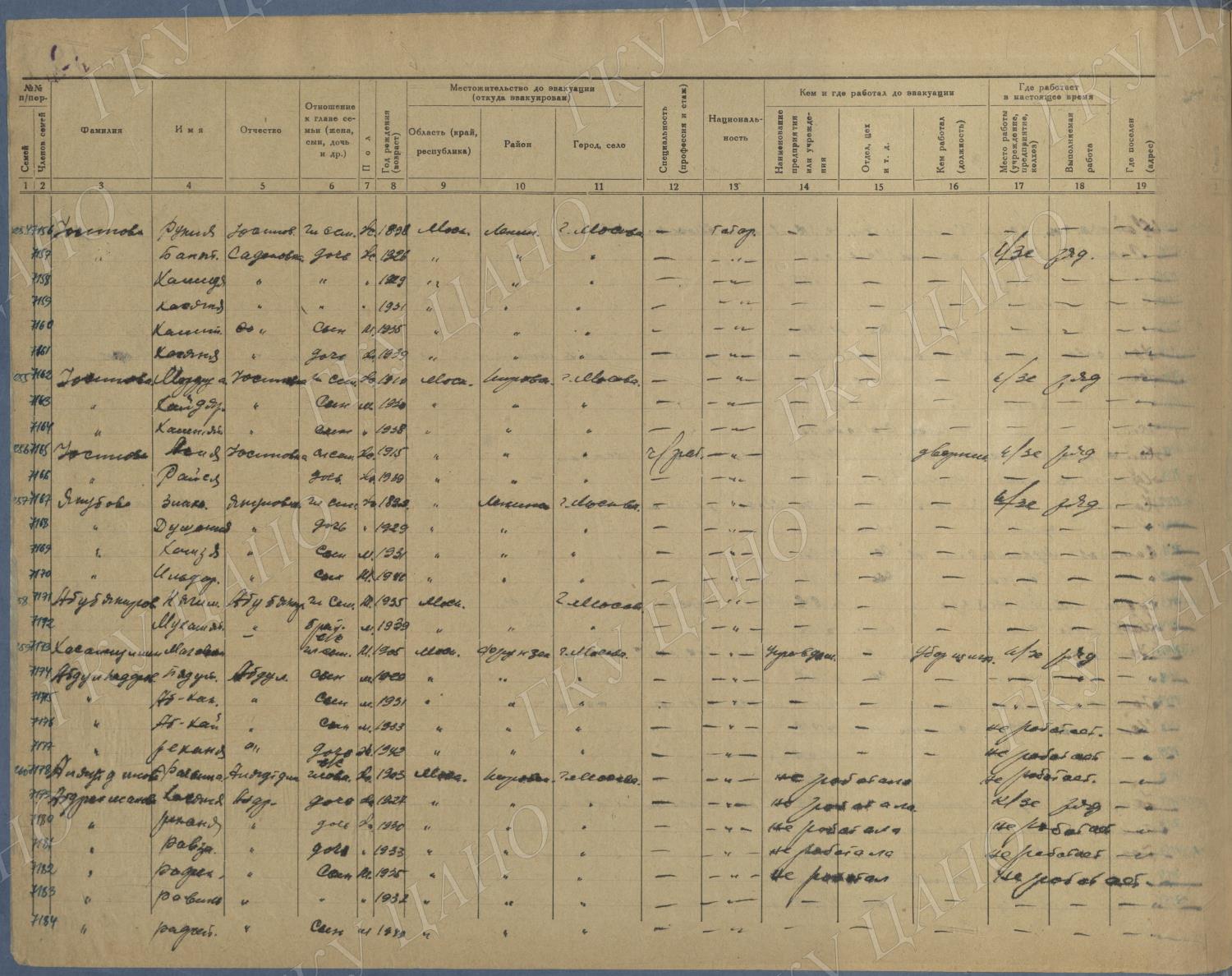 Ф. Р-5344. Оп. 1. Д. 83. Списки эвакуированных граждан, размещенных в городах и районах Горьковской области (районы на буквы «К» — «М»). 4 августа — 25 ноября 1943 г.