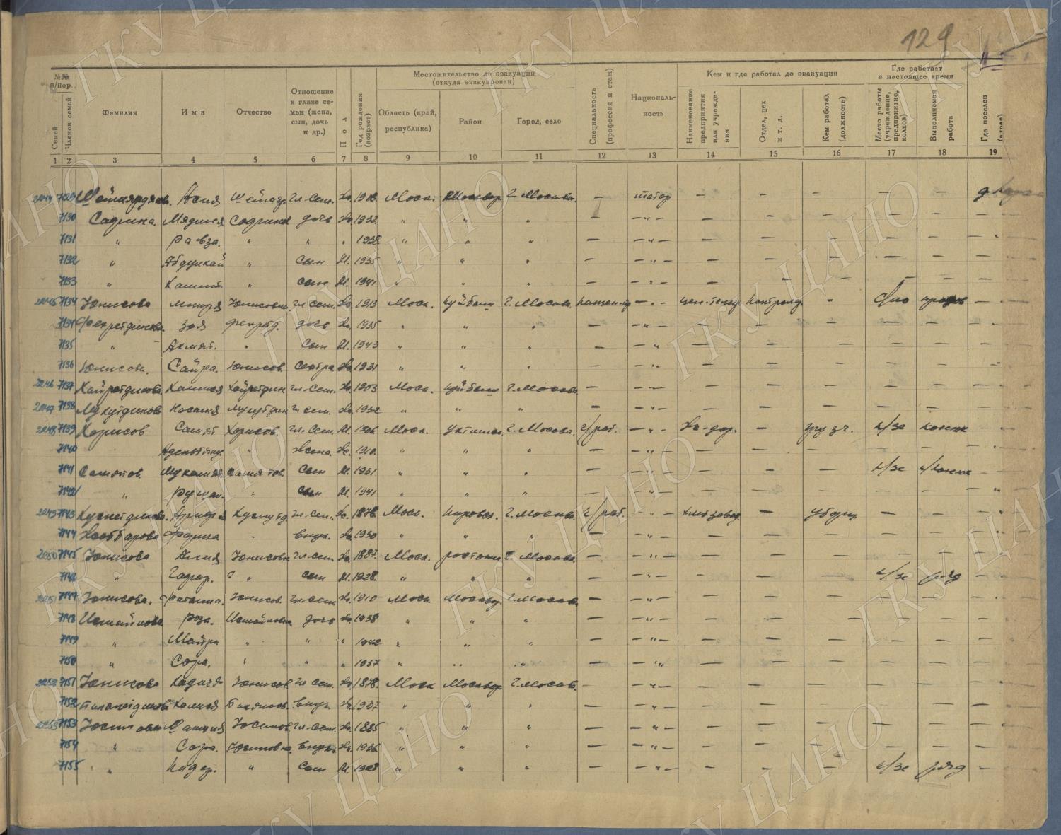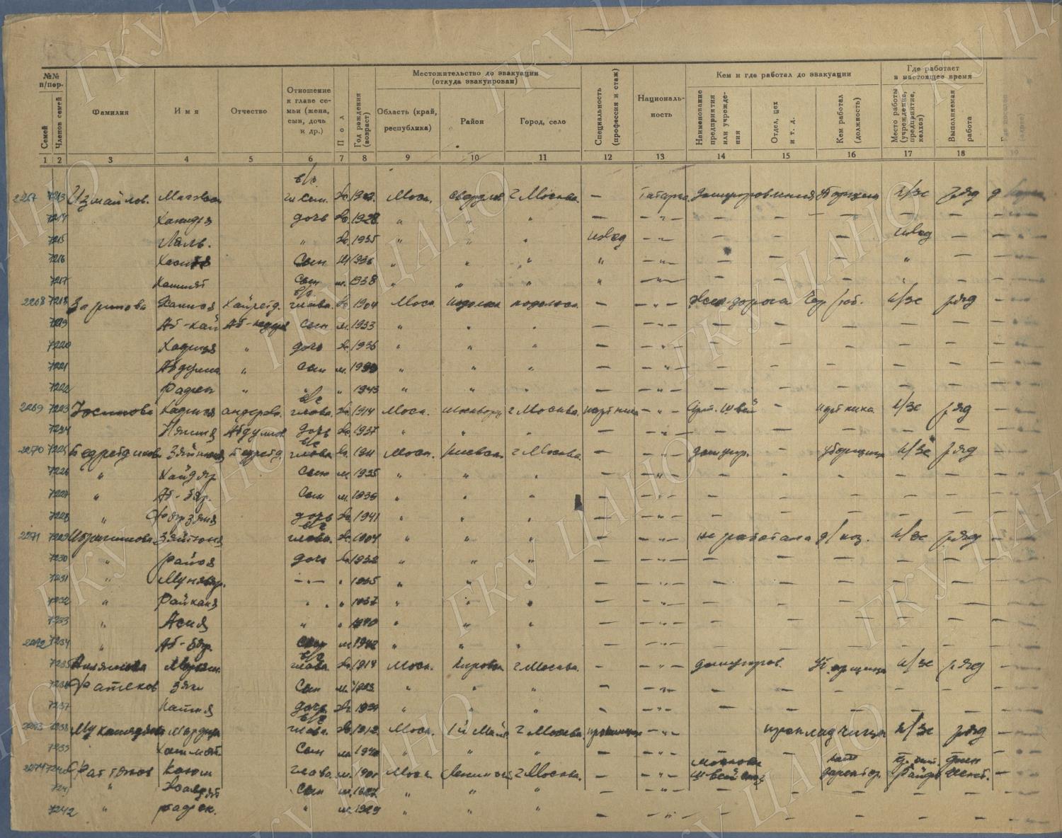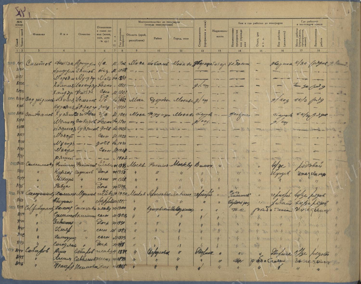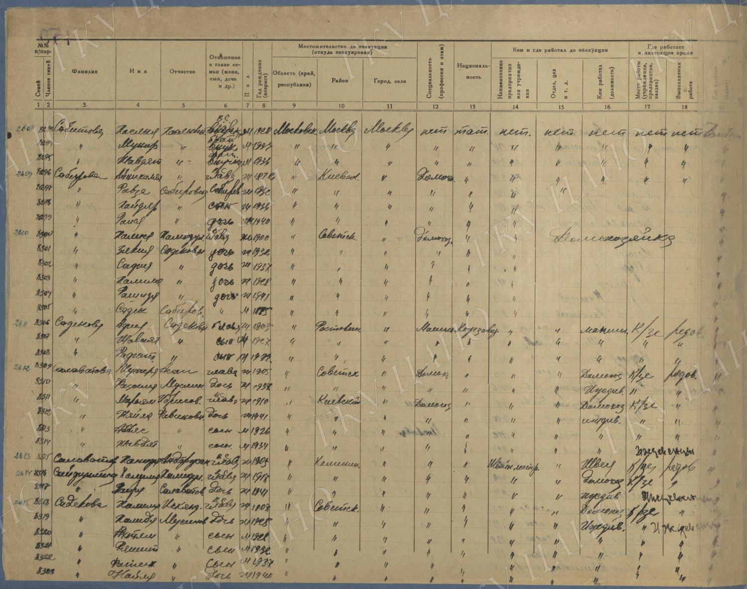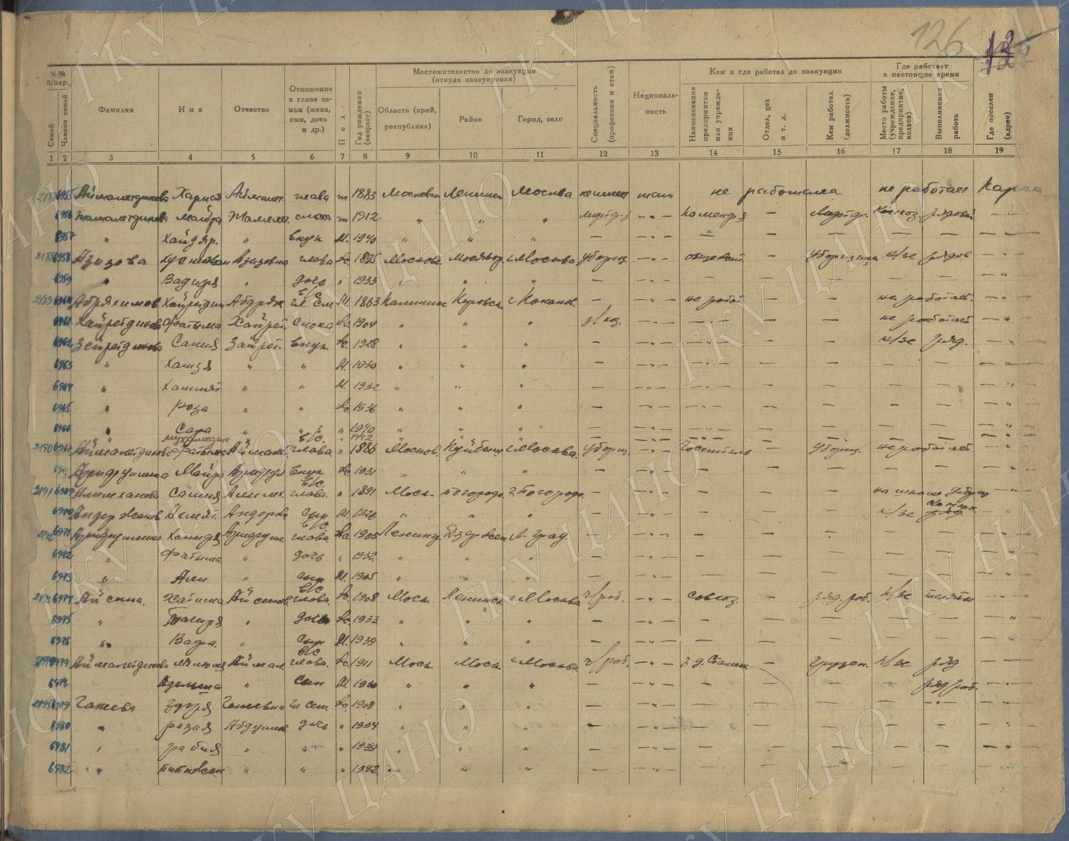 Ф. Р-5344. Оп. 1. Д. 83. Списки эвакуированных граждан, размещенных в городах и районах Горьковской области (районы на буквы «К» — «М»). 4 августа — 25 ноября 1943 г.