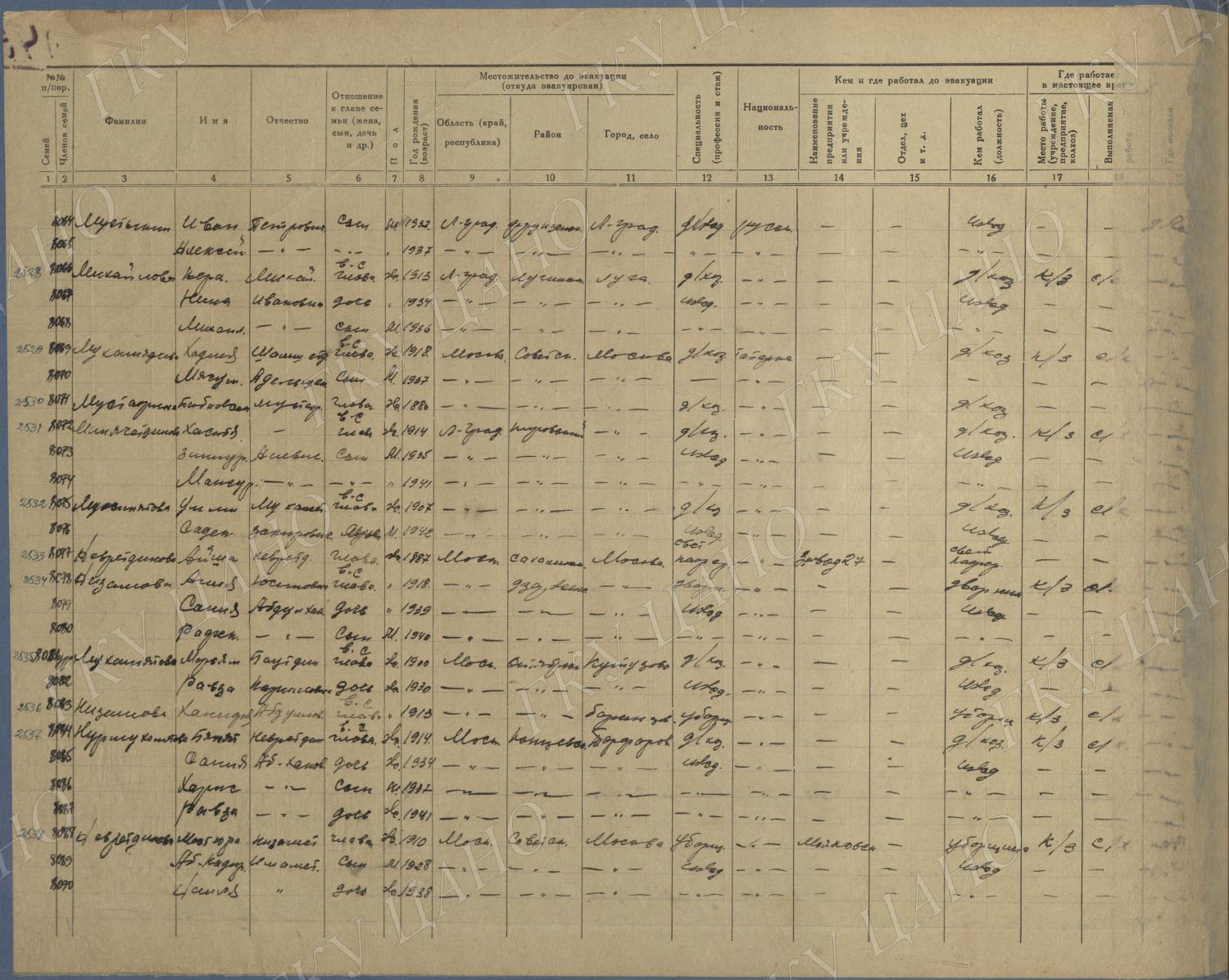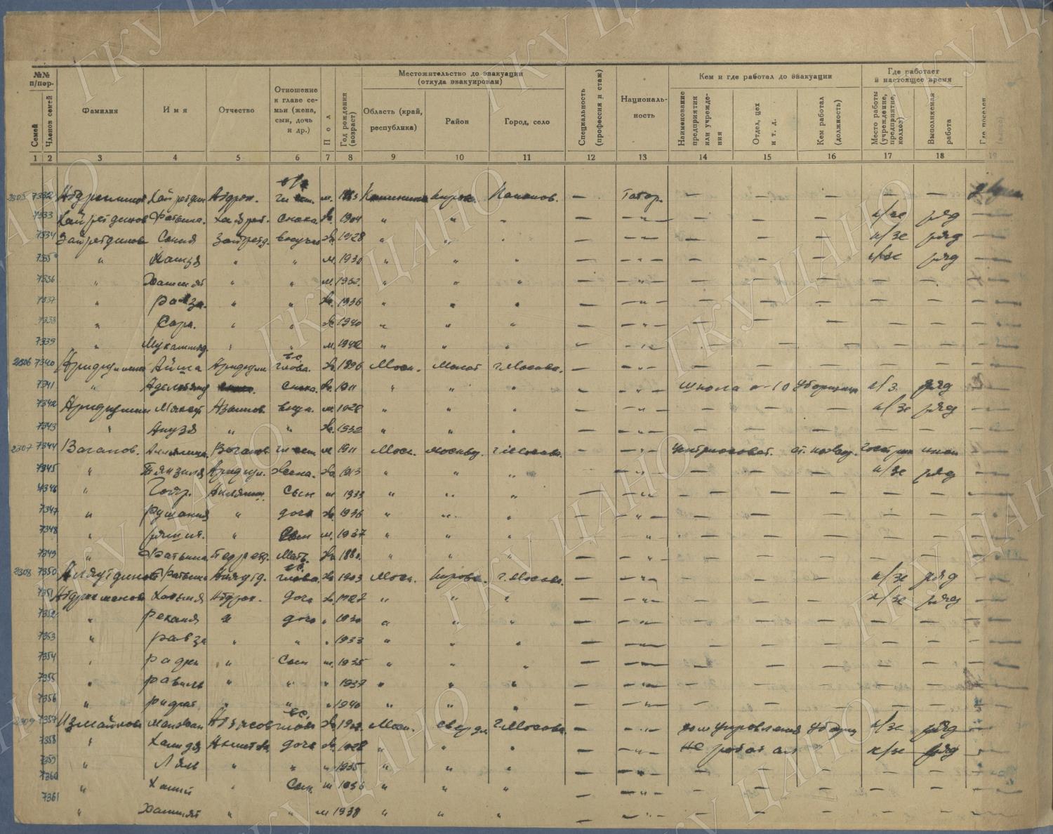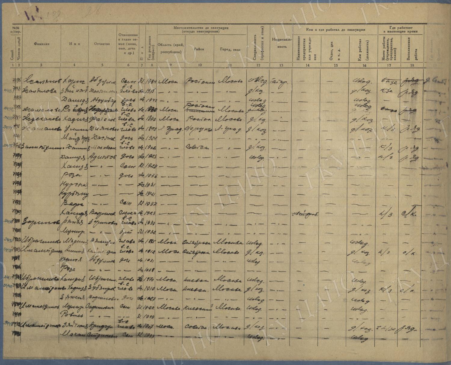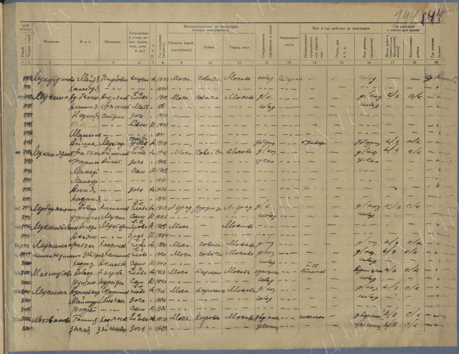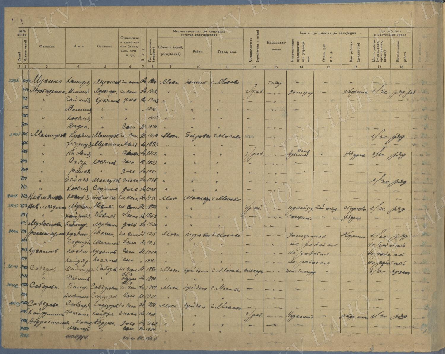 Ф. Р-5344. Оп. 1. Д. 83. Списки эвакуированных граждан, размещенных в городах и районах Горьковской области (районы на буквы «К» — «М»). 4 августа — 25 ноября 1943 г.