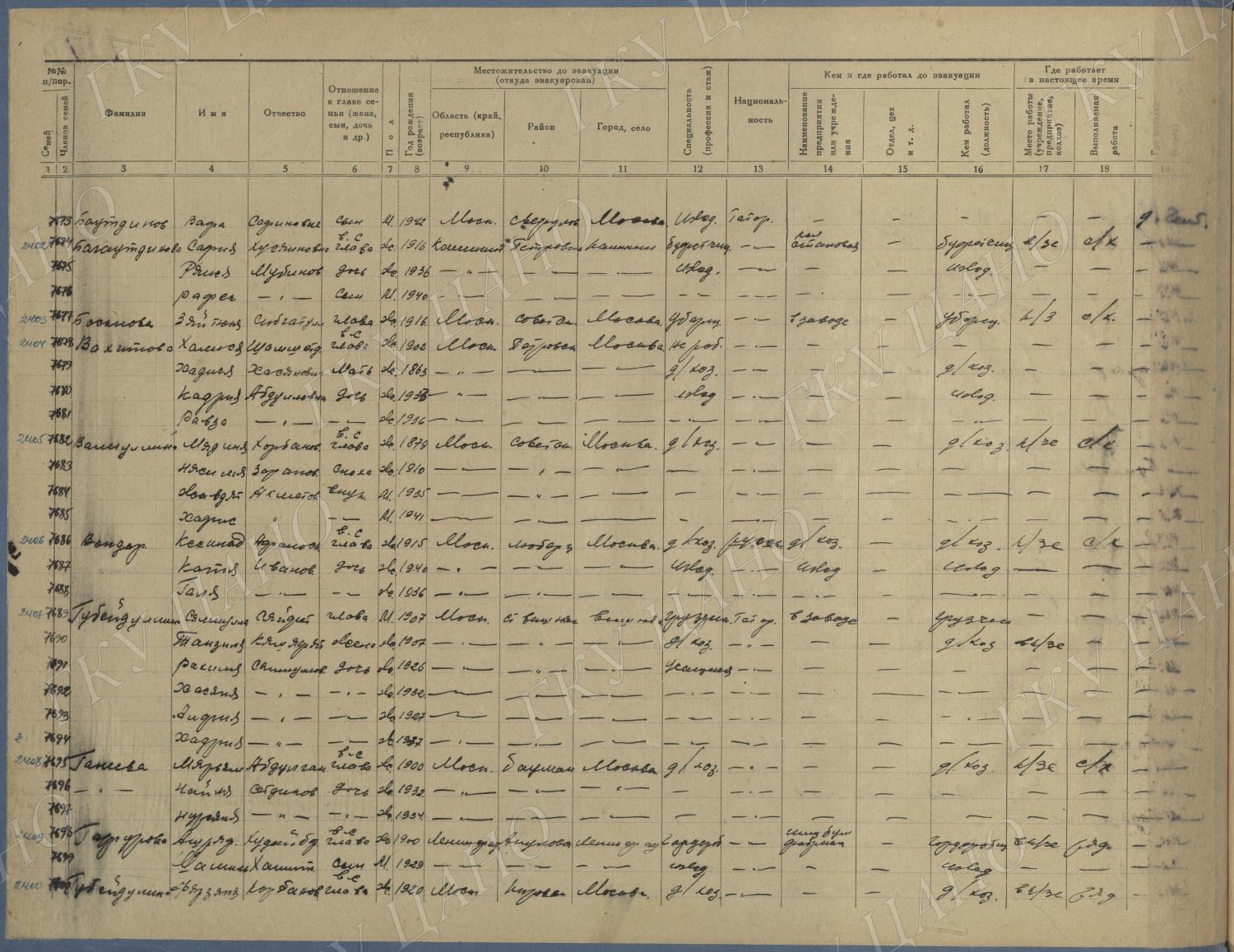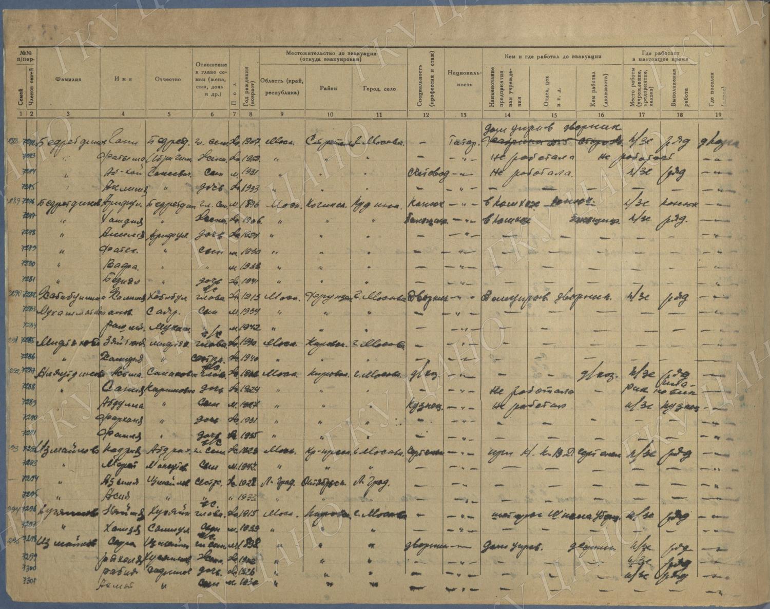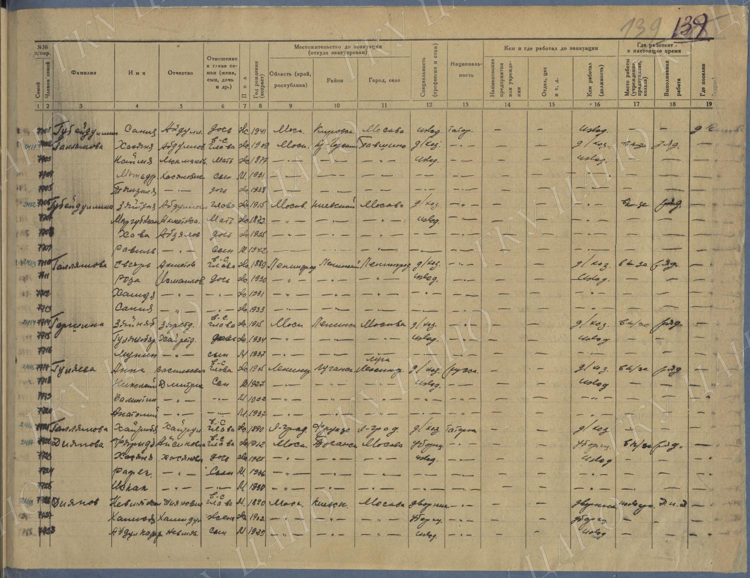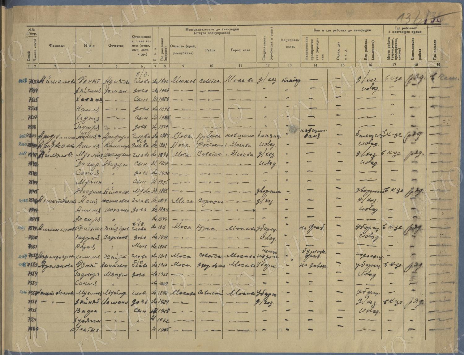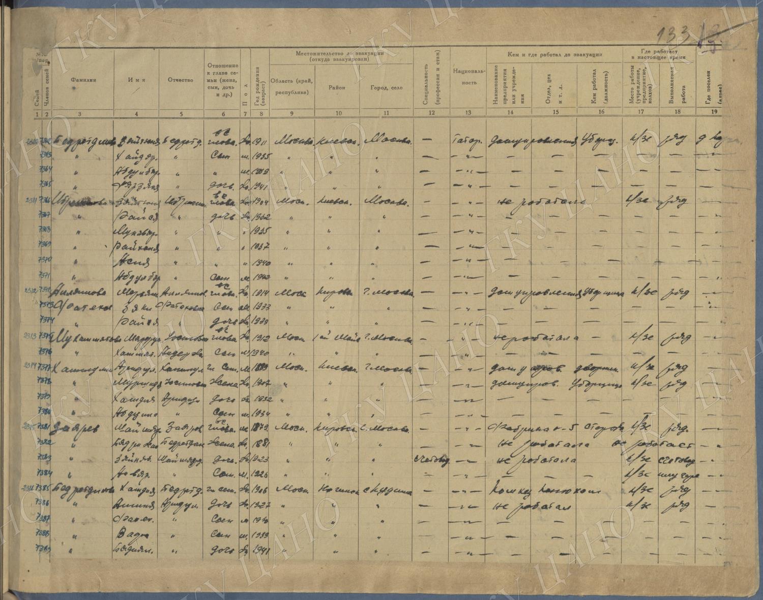 Ф. Р-5344. Оп. 1. Д. 83. Списки эвакуированных граждан, размещенных в городах и районах Горьковской области (районы на буквы «К» — «М»). 4 августа — 25 ноября 1943 г.