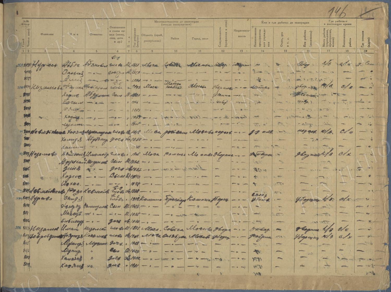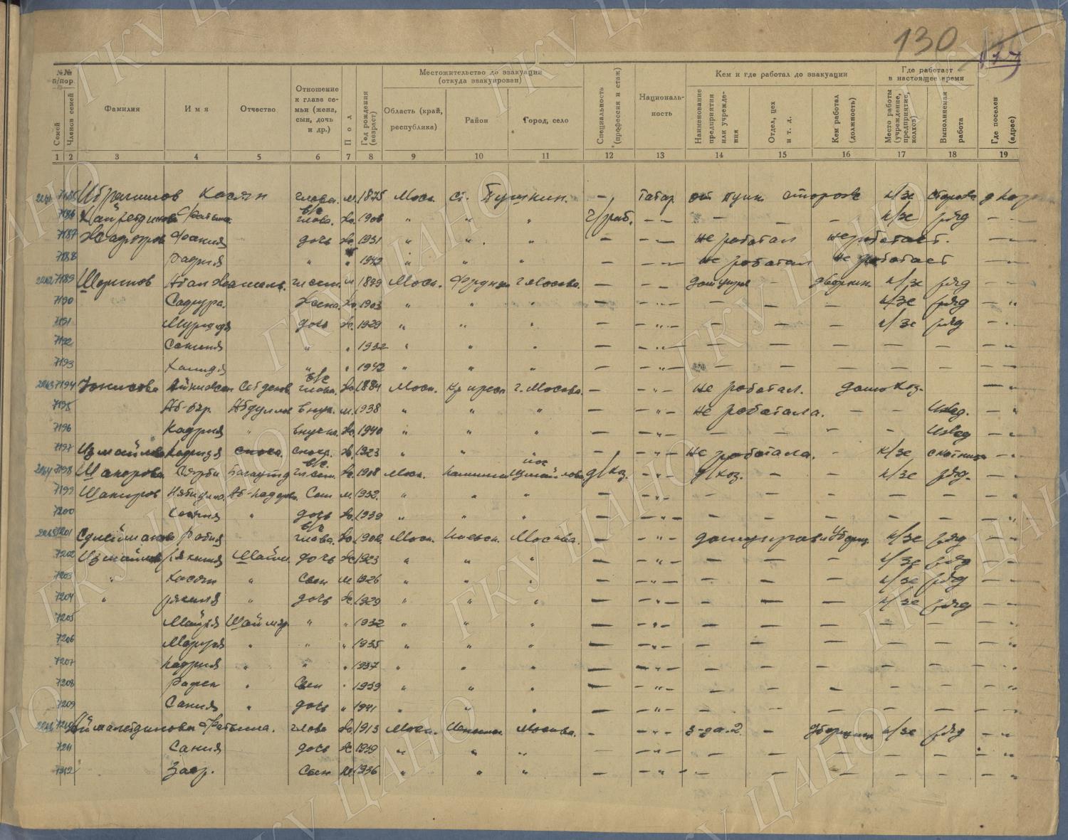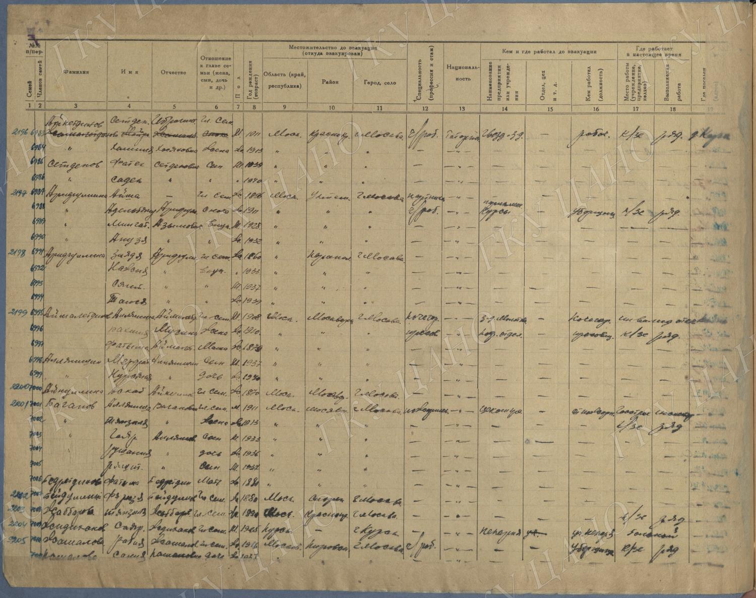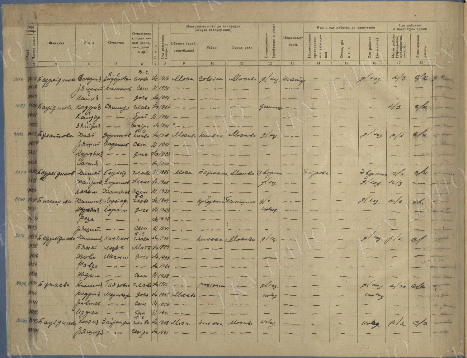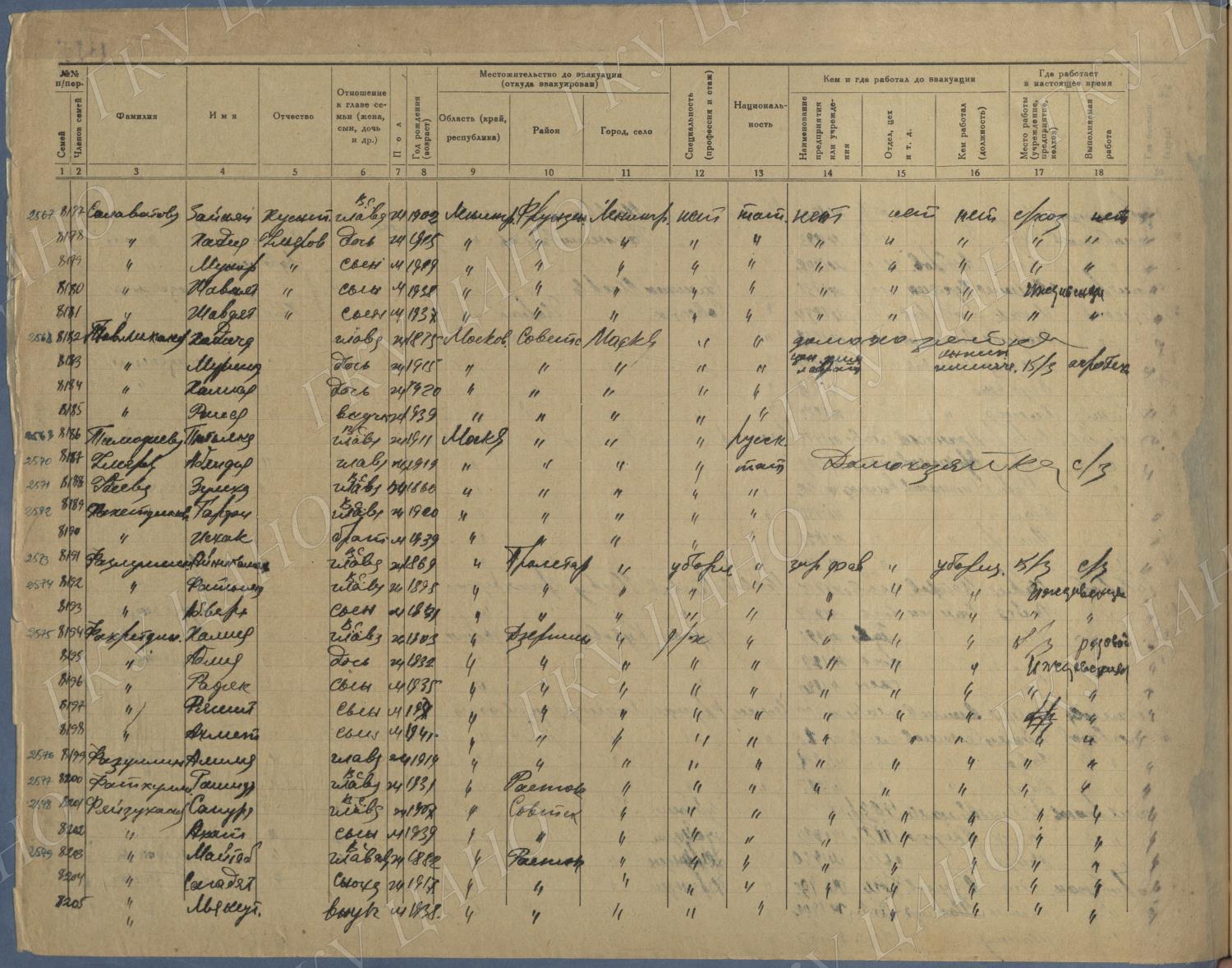 Ф. Р-5344. Оп. 1. Д. 83. Списки эвакуированных граждан, размещенных в городах и районах Горьковской области (районы на буквы «К» — «М»). 4 августа — 25 ноября 1943 г.