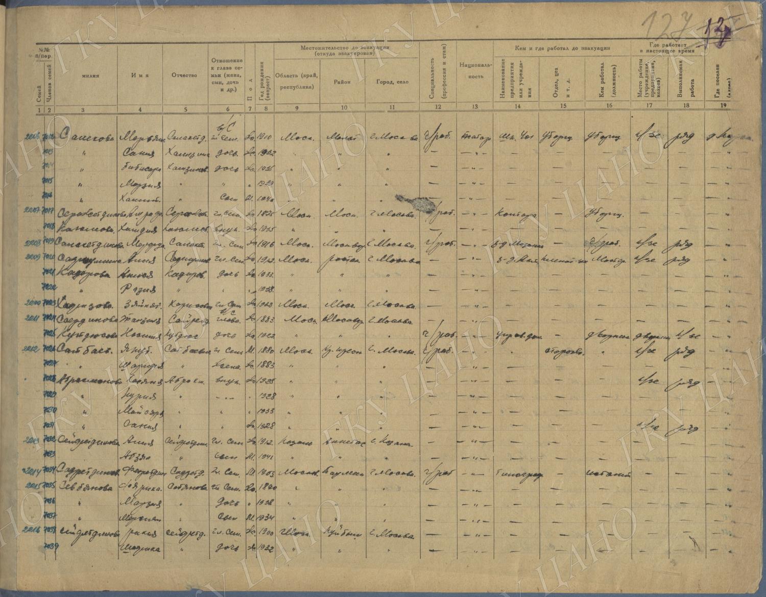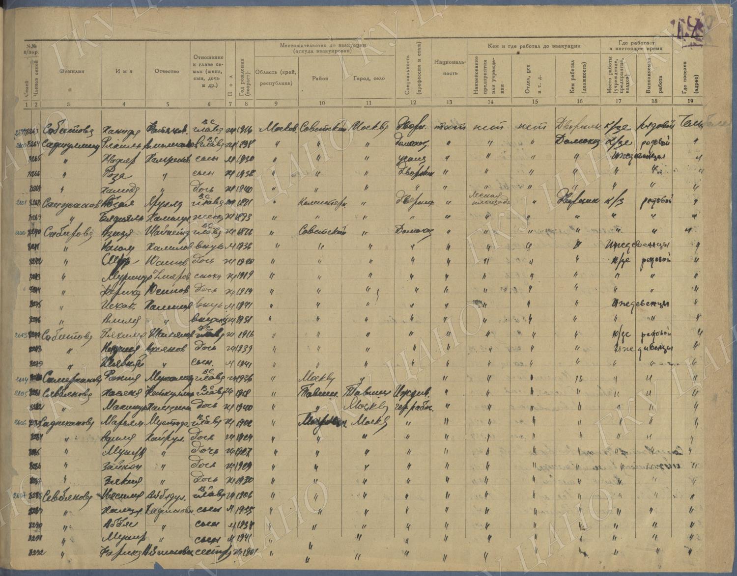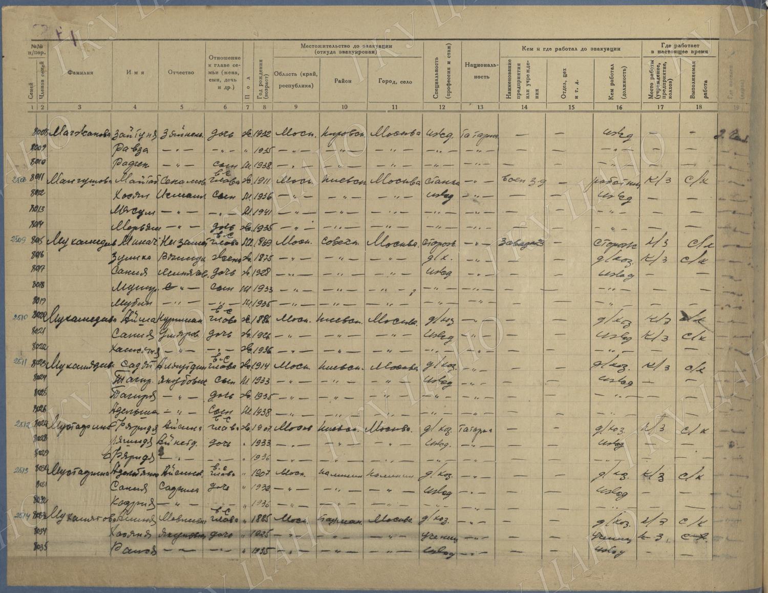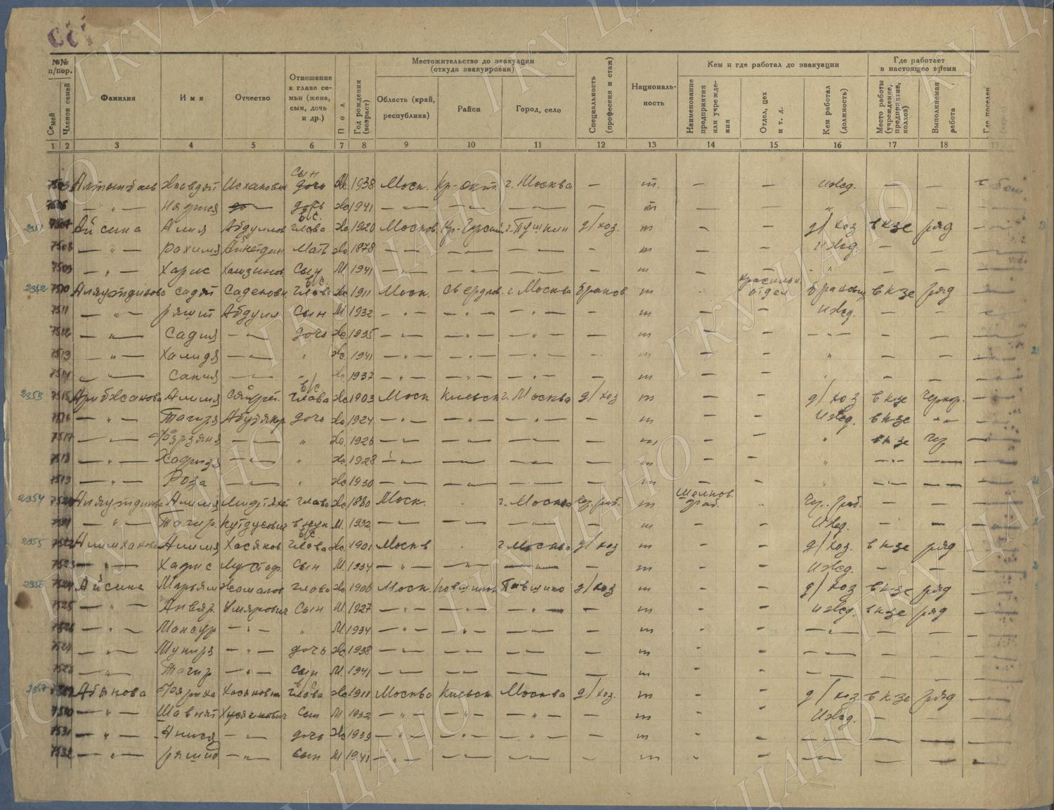 Ф. Р-5344. Оп. 1. Д. 83. Списки эвакуированных граждан, размещенных в городах и районах Горьковской области (районы на буквы «К» — «М»). 4 августа — 25 ноября 1943 г.