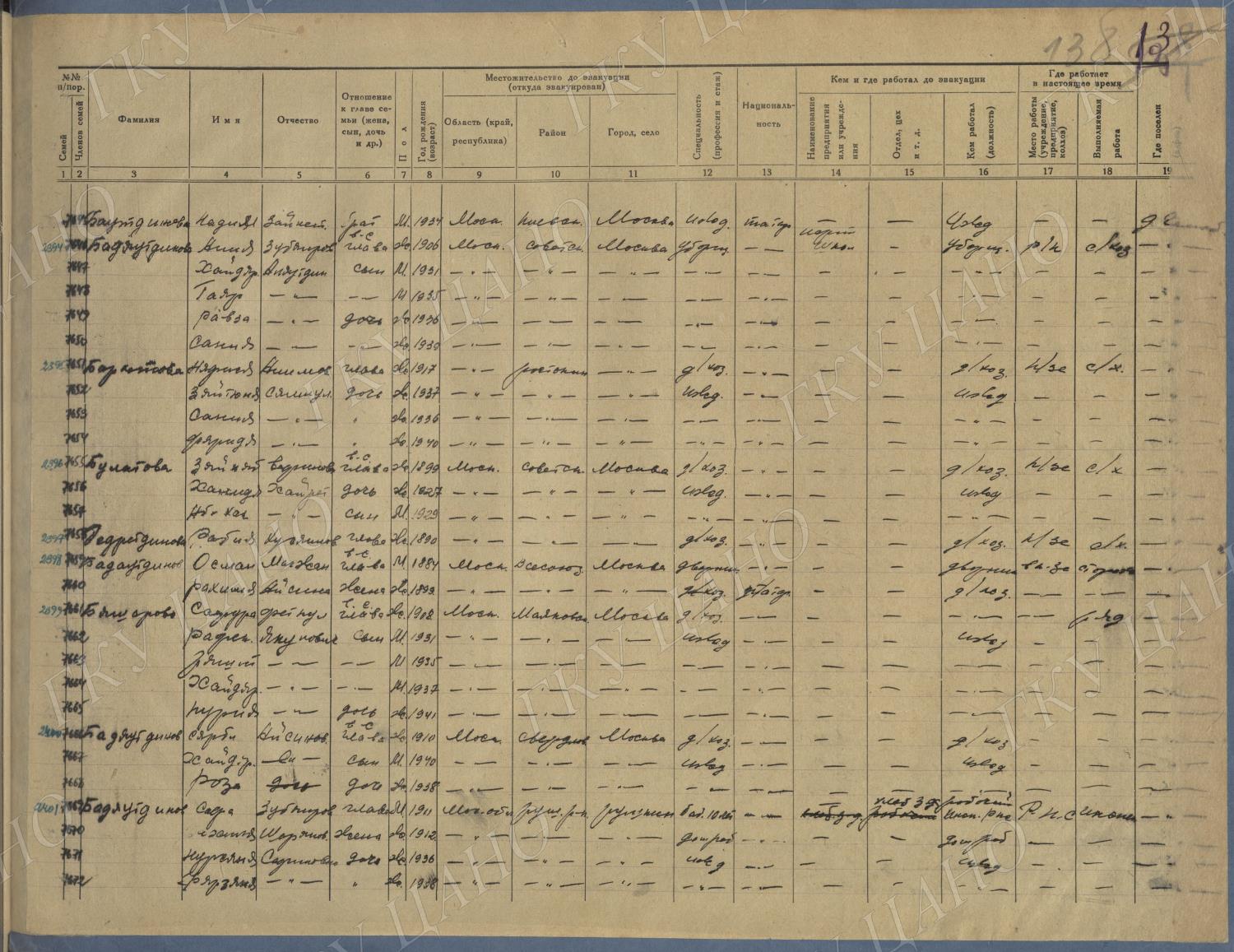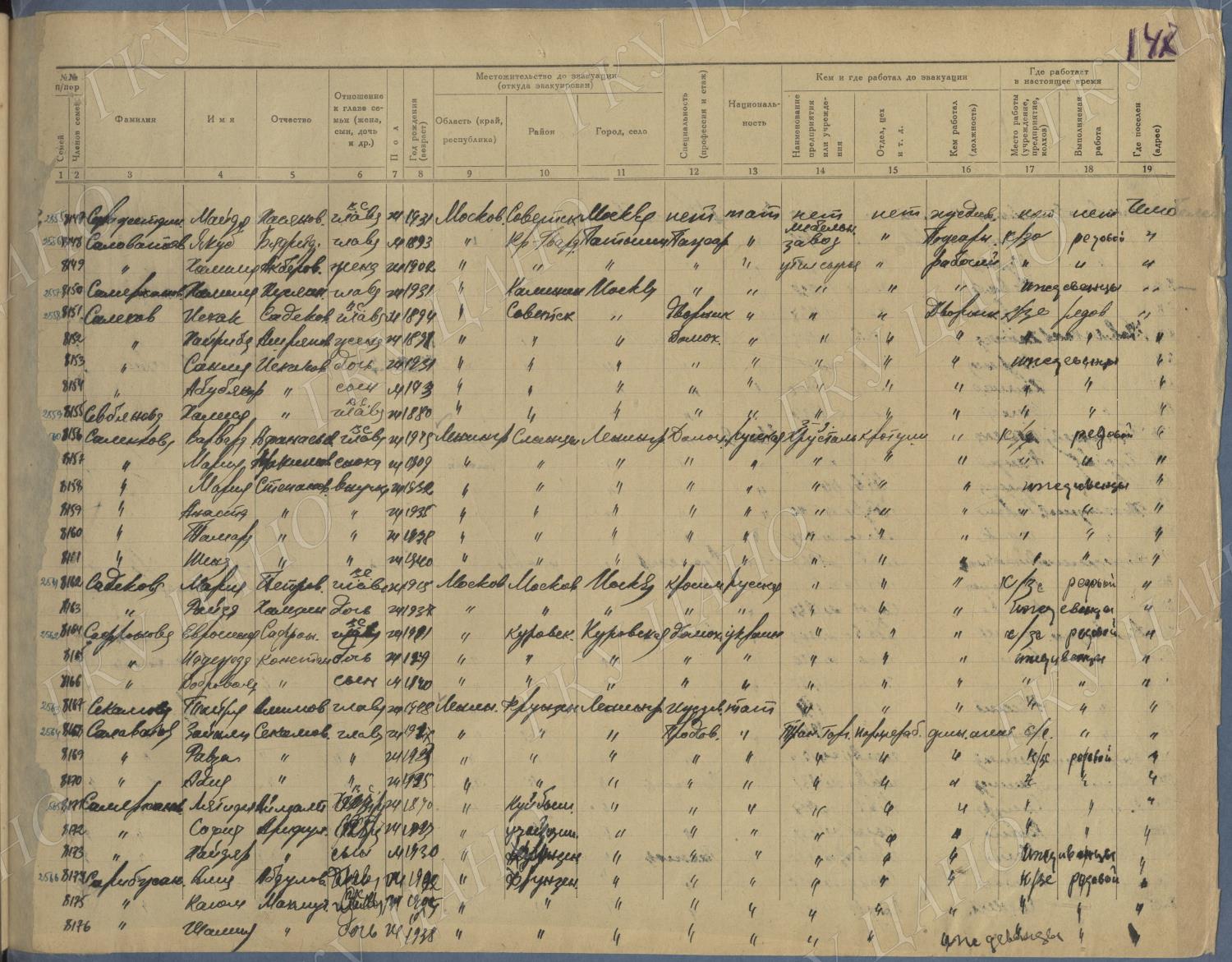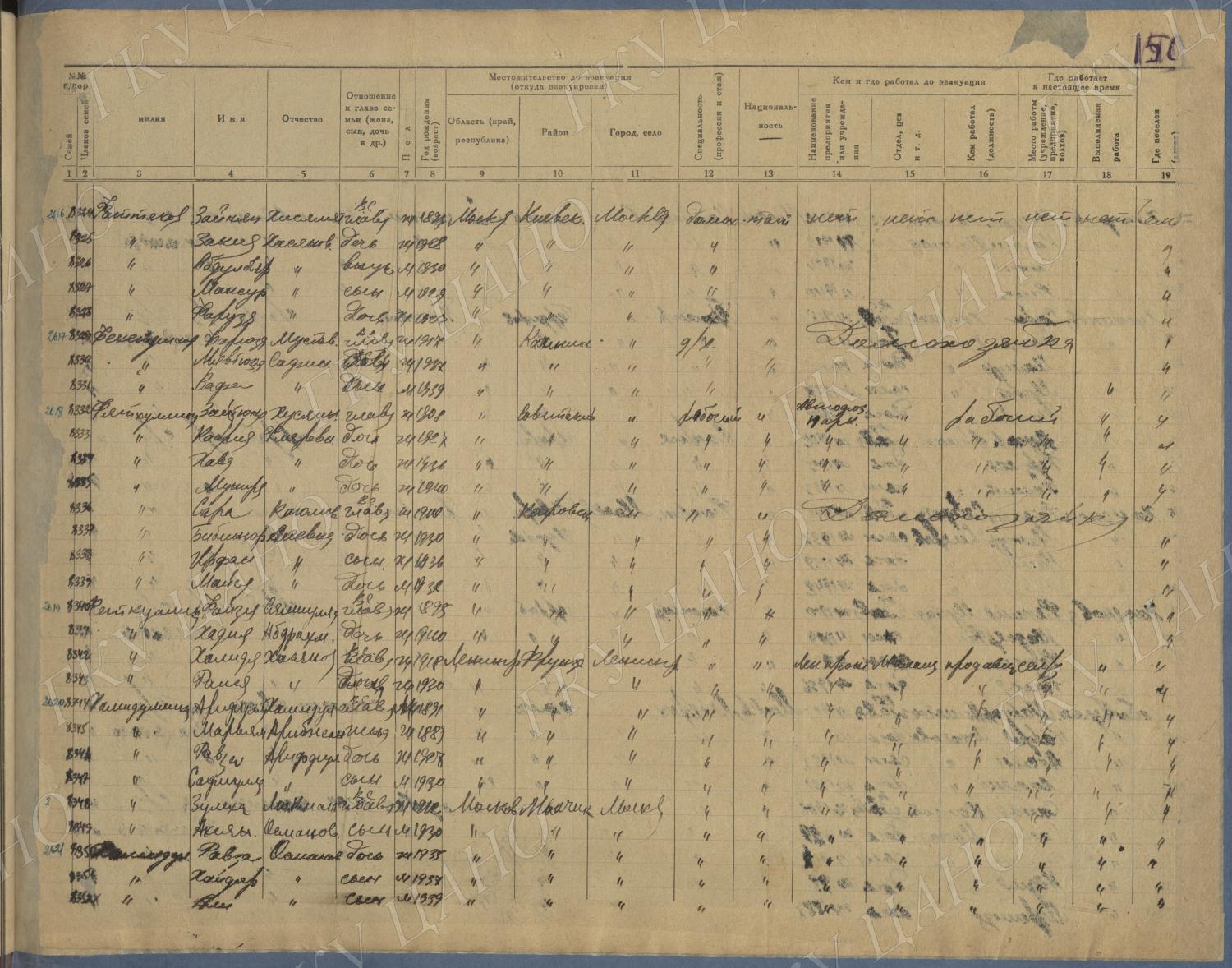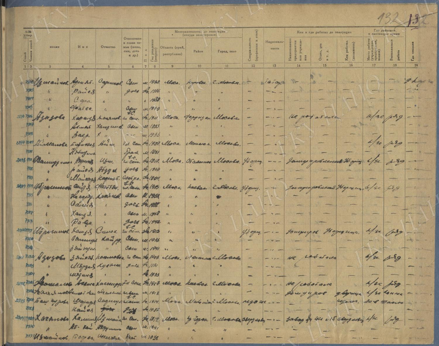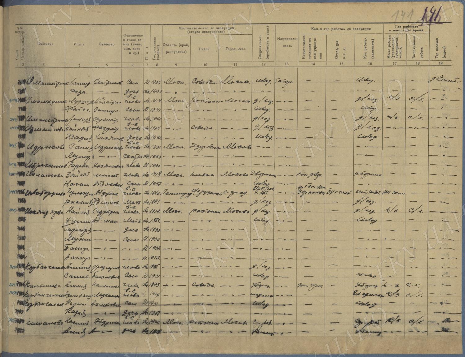 Ф. Р-5344. Оп. 1. Д. 83. Списки эвакуированных граждан, размещенных в городах и районах Горьковской области (районы на буквы «К» — «М»). 4 августа — 25 ноября 1943 г.