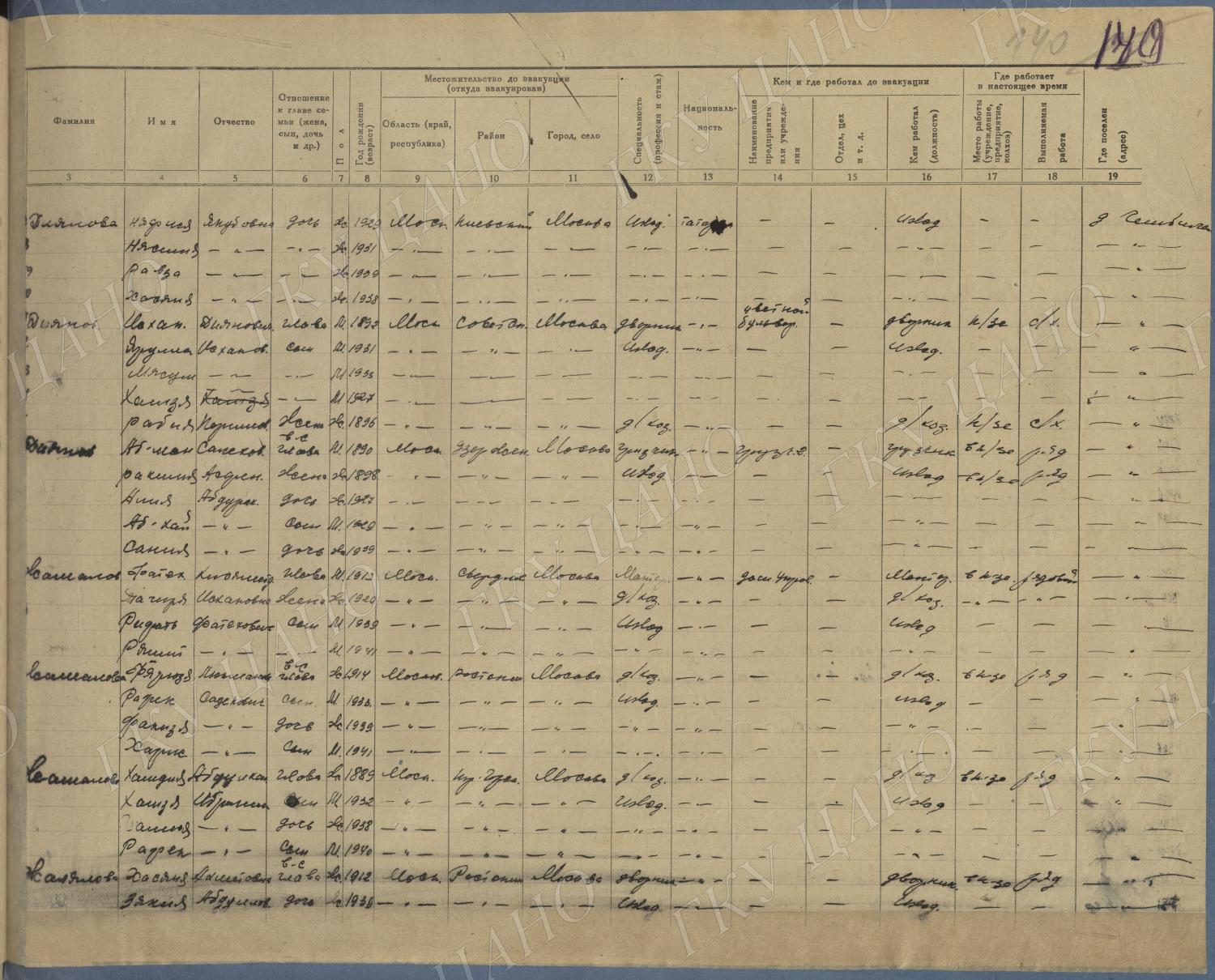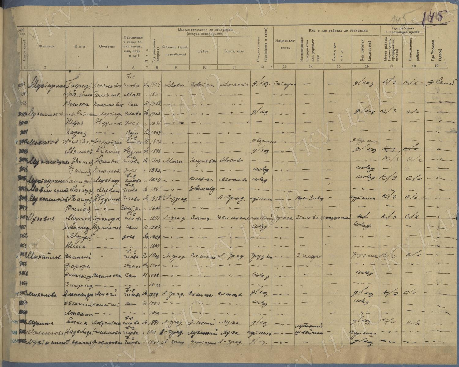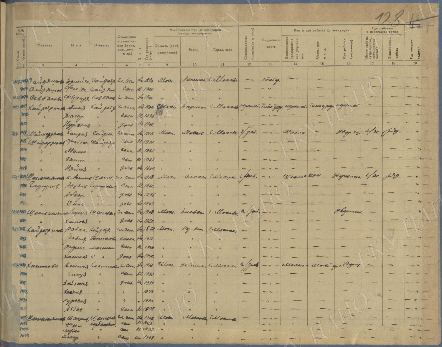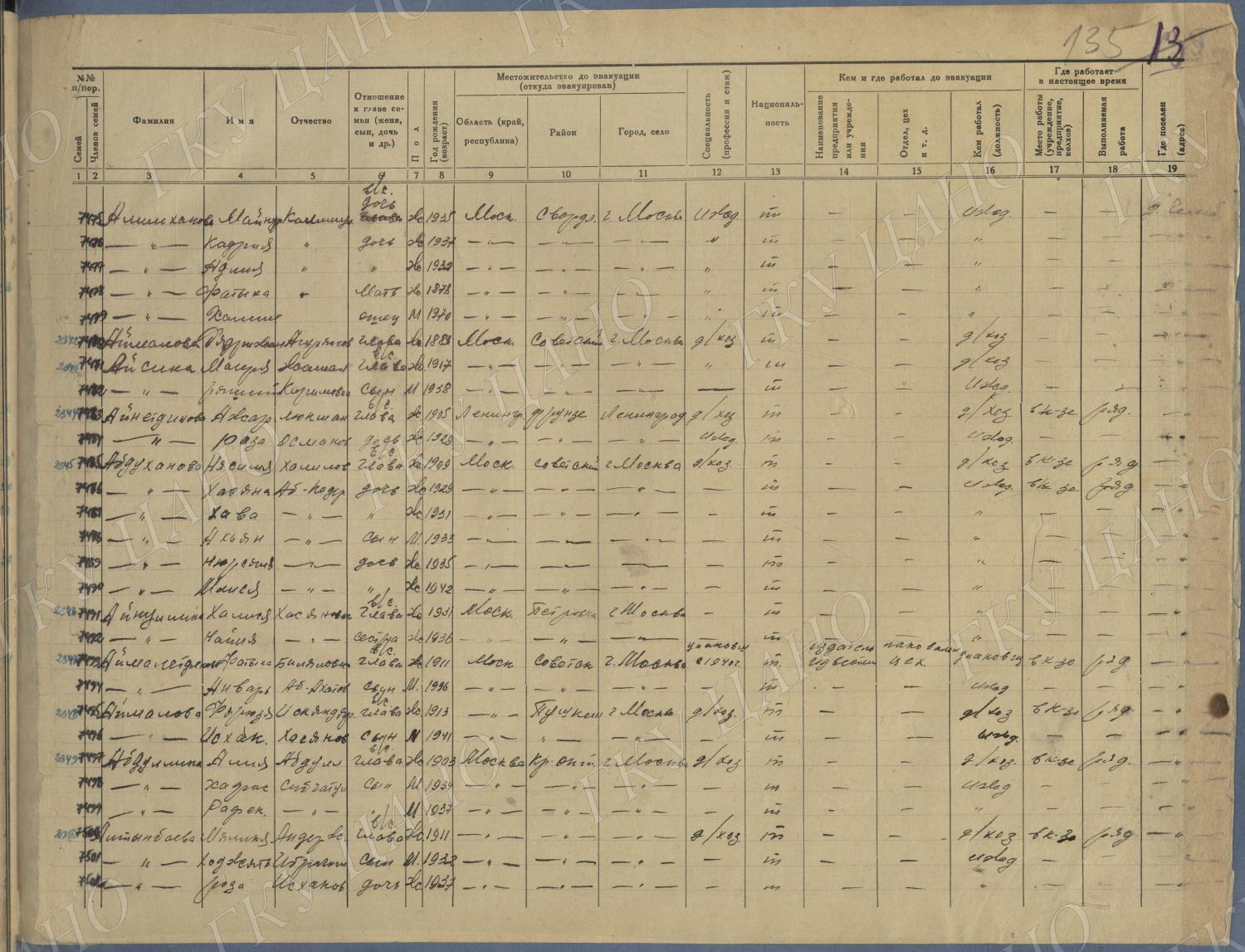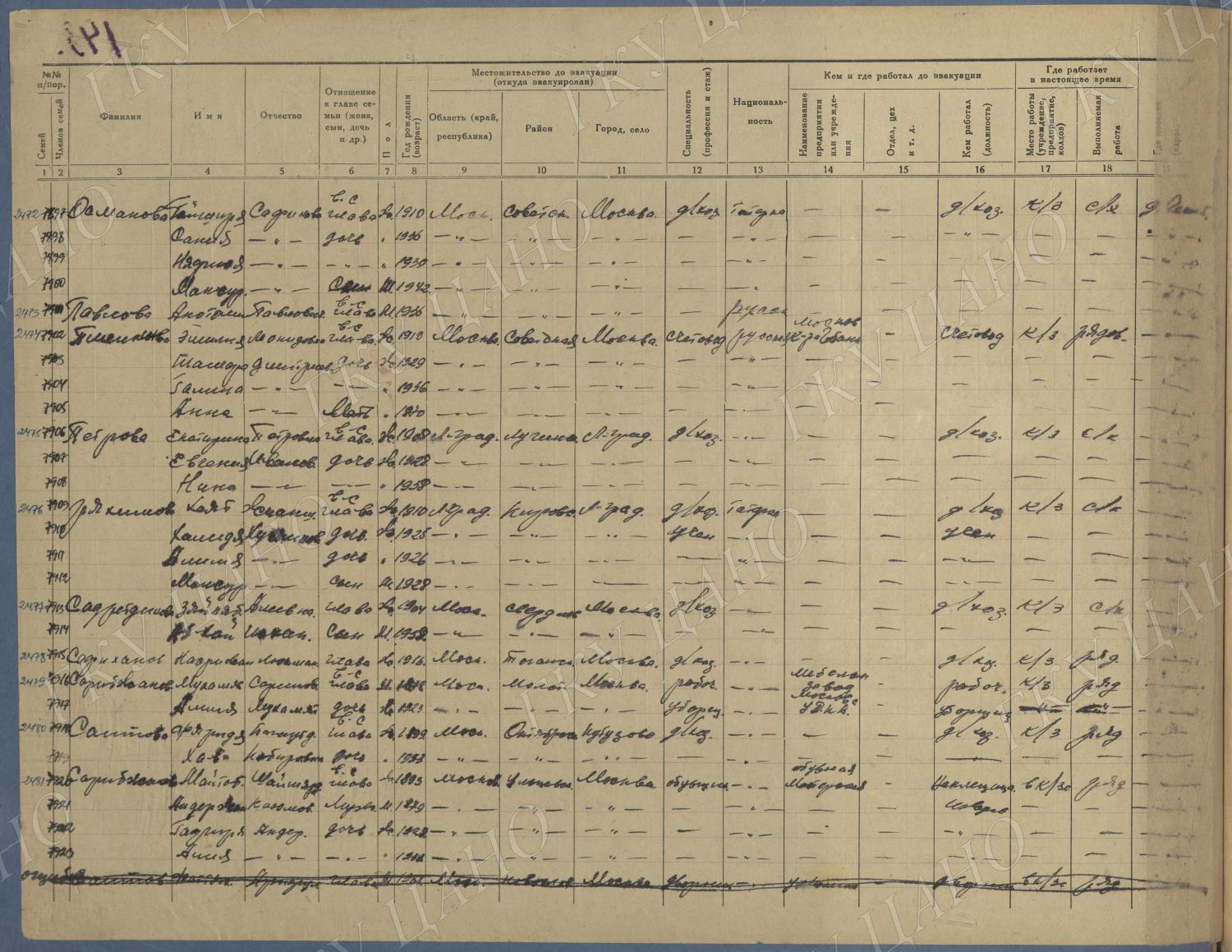 Ф. Р-5344. Оп. 1. Д. 83. Списки эвакуированных граждан, размещенных в городах и районах Горьковской области (районы на буквы «К» — «М»). 4 августа — 25 ноября 1943 г.